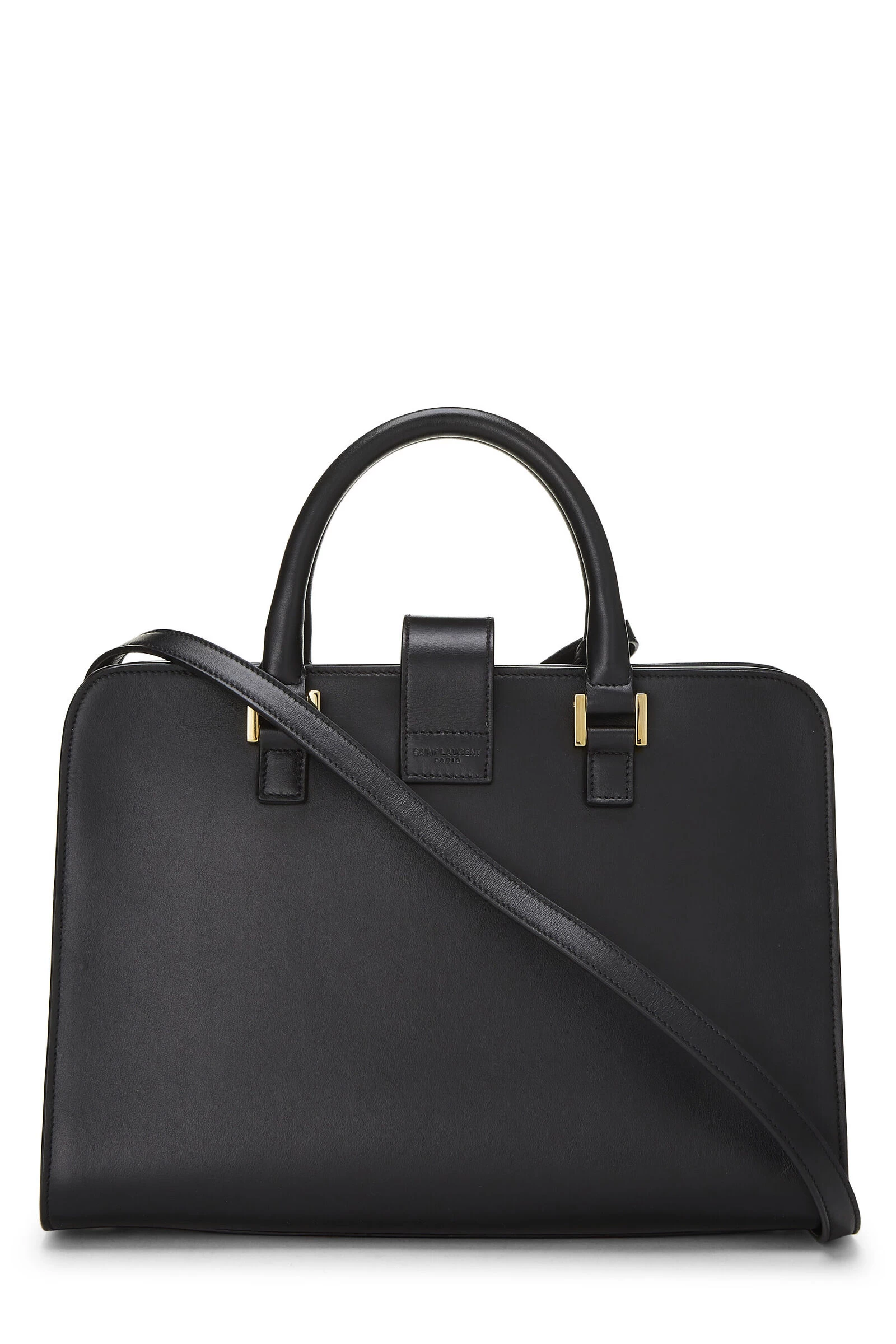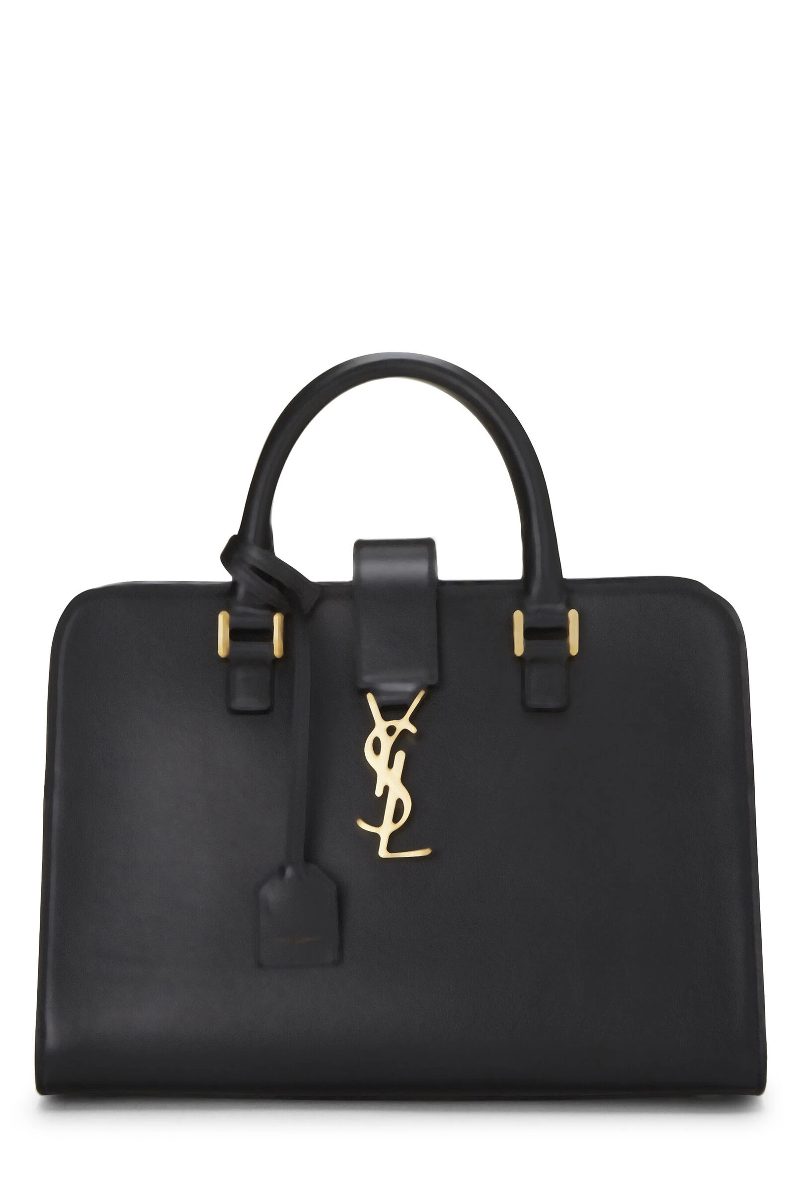 Sleek and classic, the YSL small Cabas tote is crafted in black calfskin leather with gold-tone hardware and a detachable logo clochette. Unzip the top of the bag to reveal multiple interior pockets and tonal leather lining.