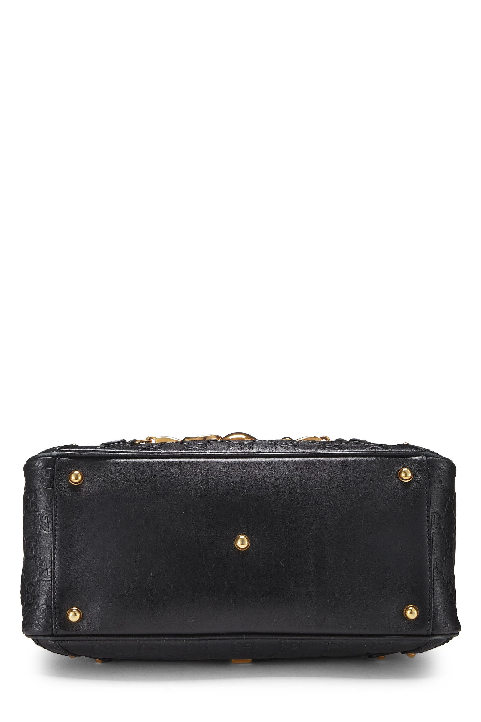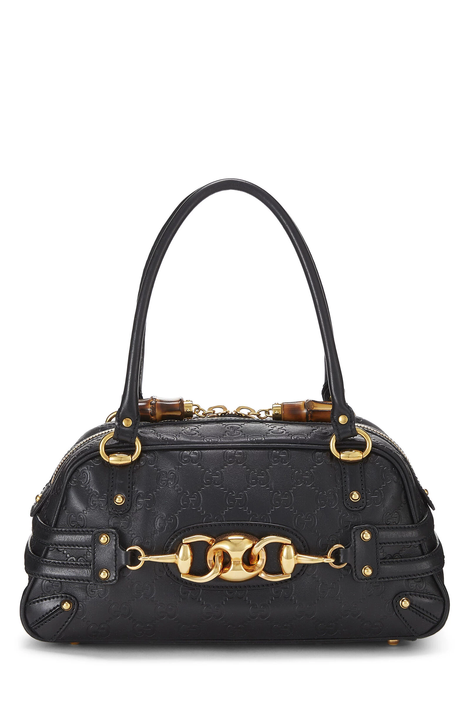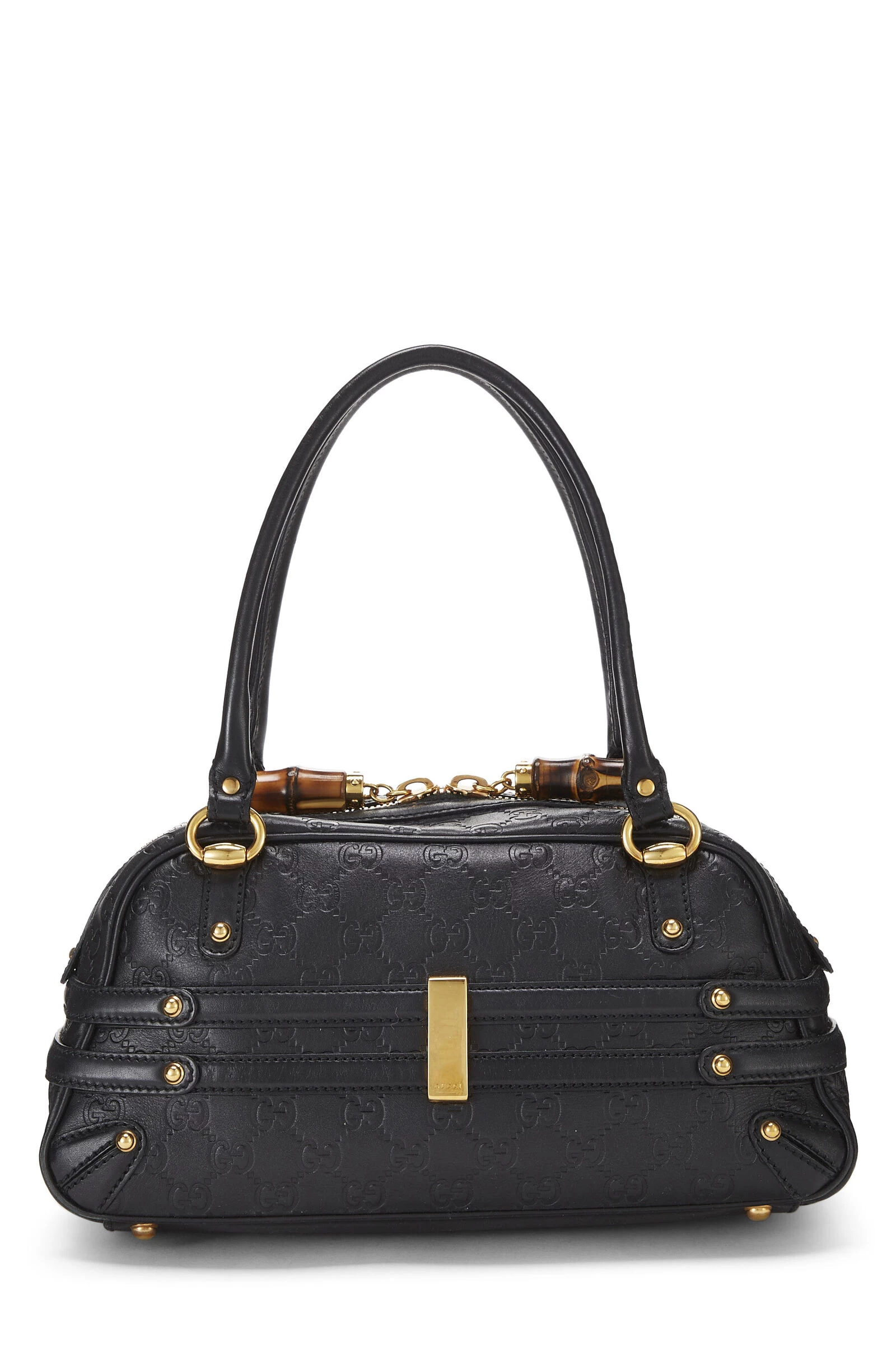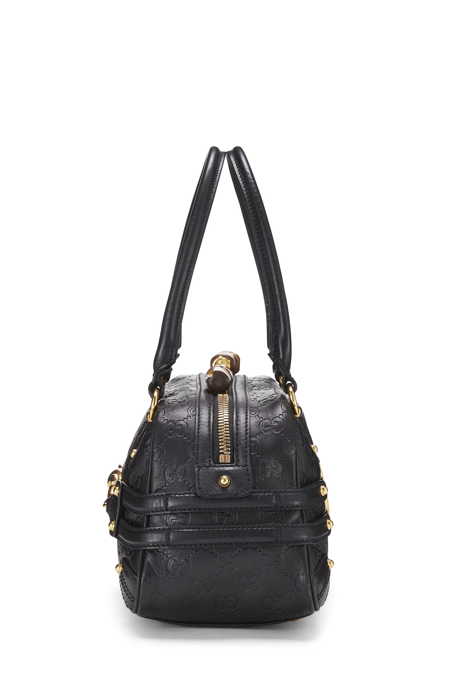 The Gucci Wave Boston bag is crafted in black Guccissima leather featuring gold-tone hosebit and bamboo embellishment.