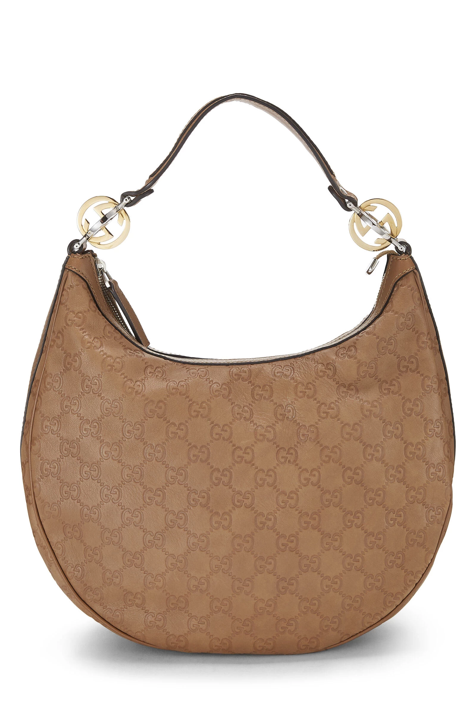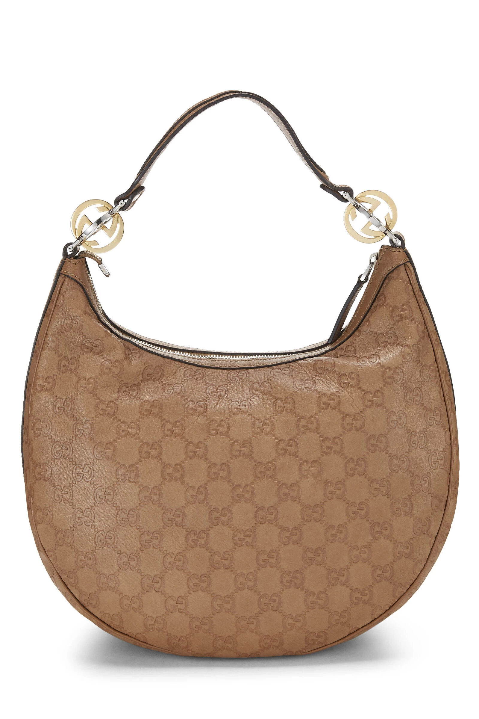 Iconic Twins hobo silhouette rendered in the house’s classic Guccissima embossed logo print. Features gold-tone and silver-tone hardware.