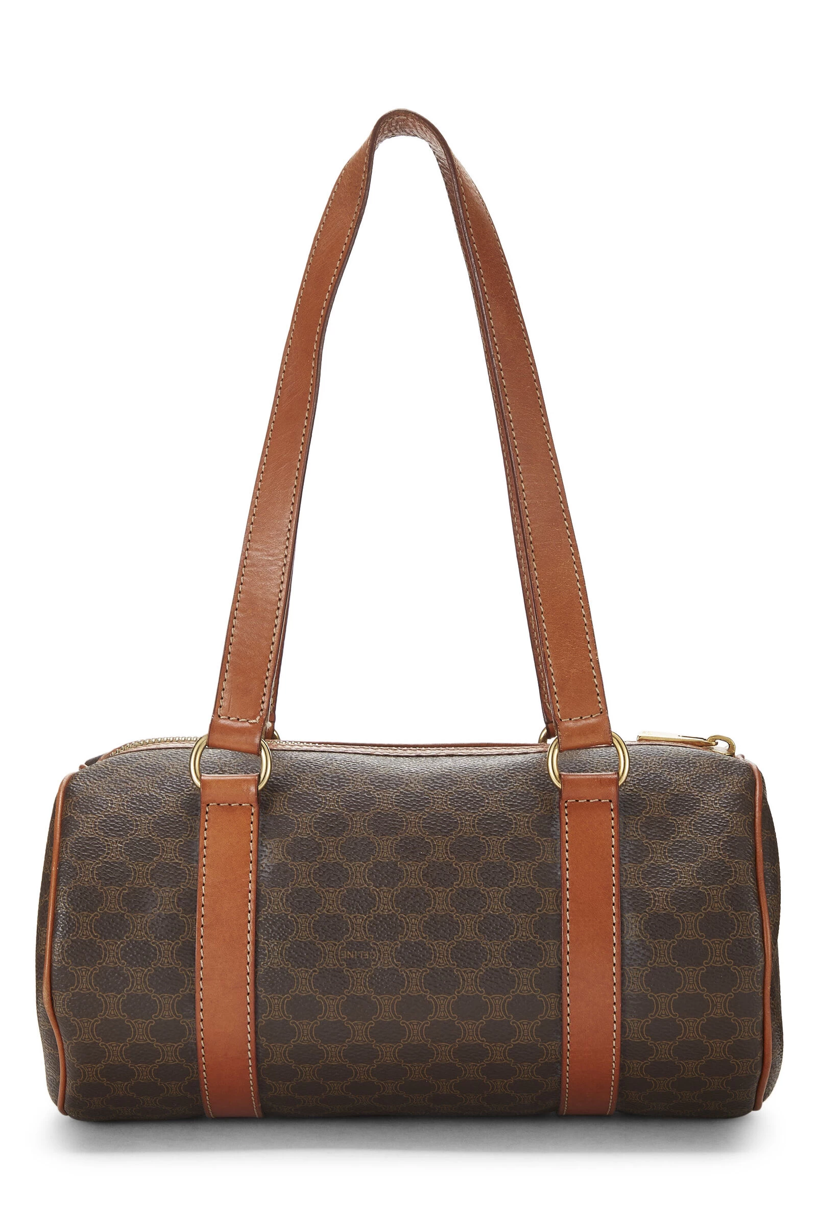 This chic CΓ©line bag is ready to be your newest obsession. Rendered in brown coated canvas featuring the classic Macadam pattern throughout, the bag includes a near-tonal brown leather trim and a spacious leather-lined interior with enough room to house everything you may need for a night out on the town.