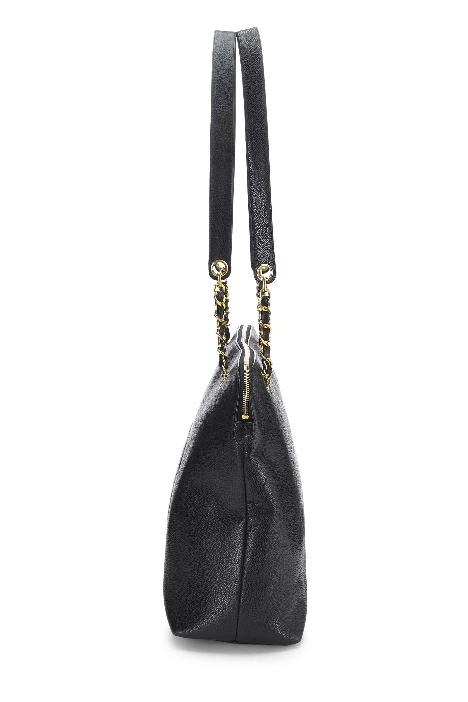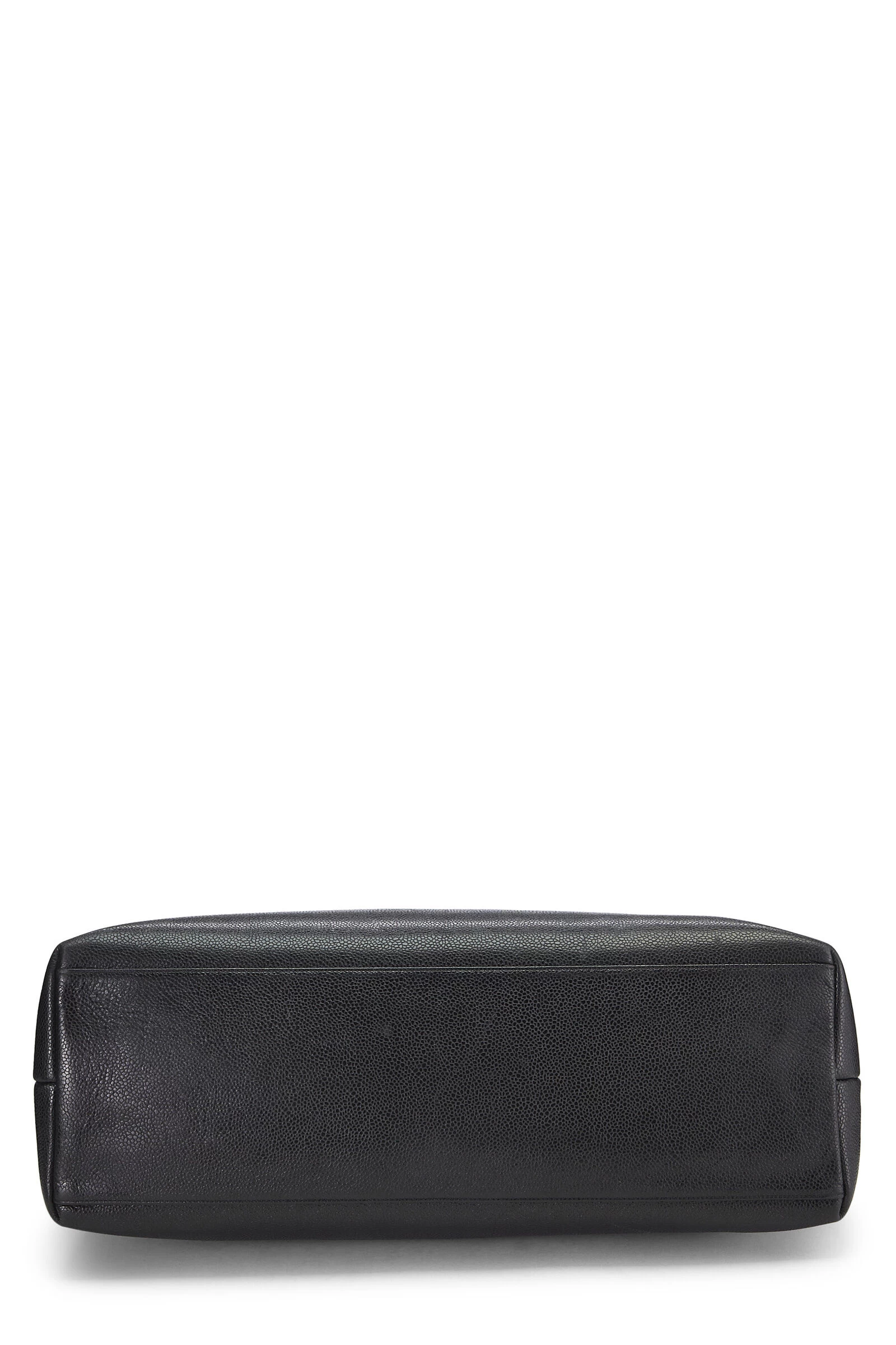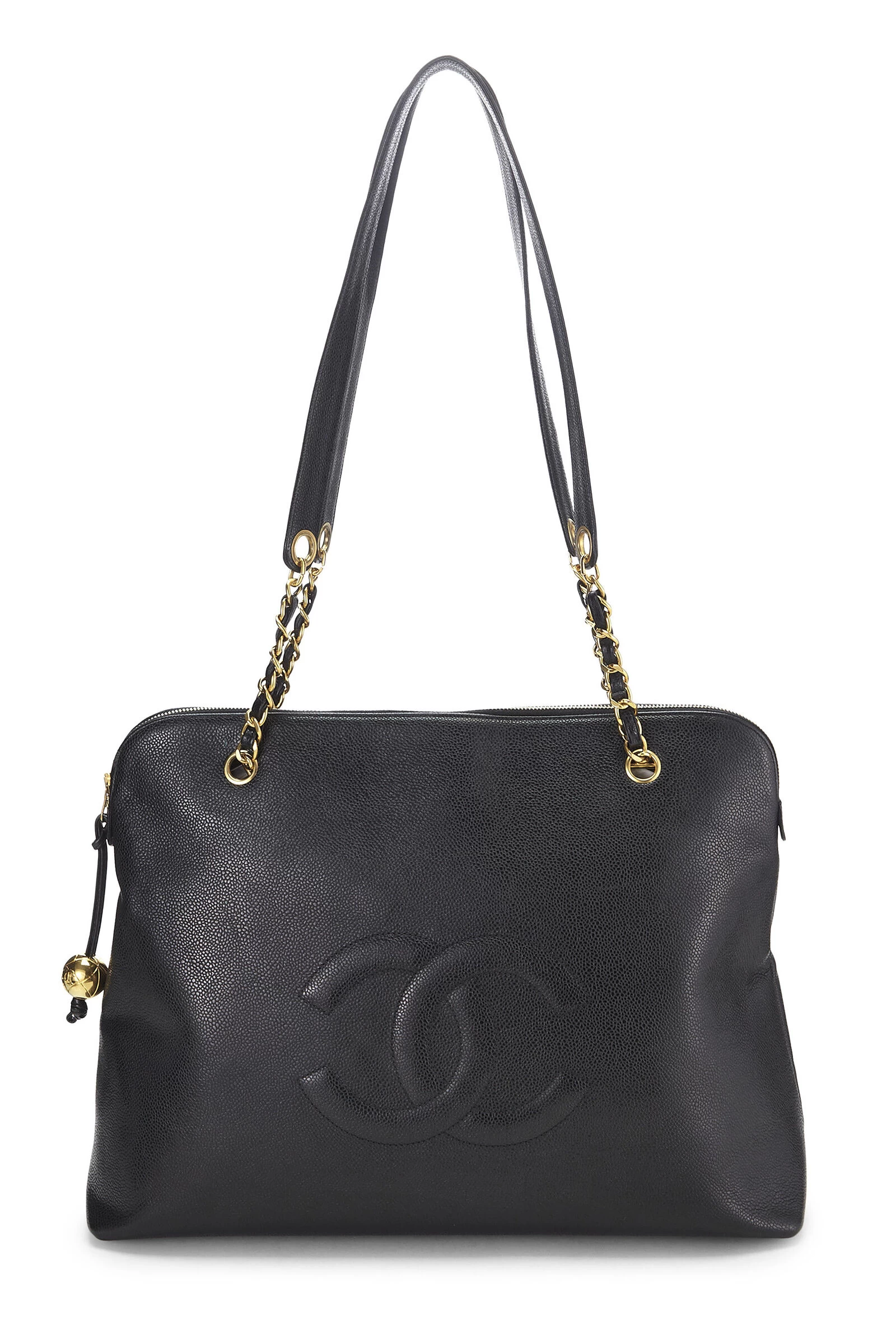 Vintage mid-90s Chanel large zip tote crafted in grained Caviar leather, featuring interlocking ‘CC’ logo embroidery at front and finished with gold-plated chain hardware.