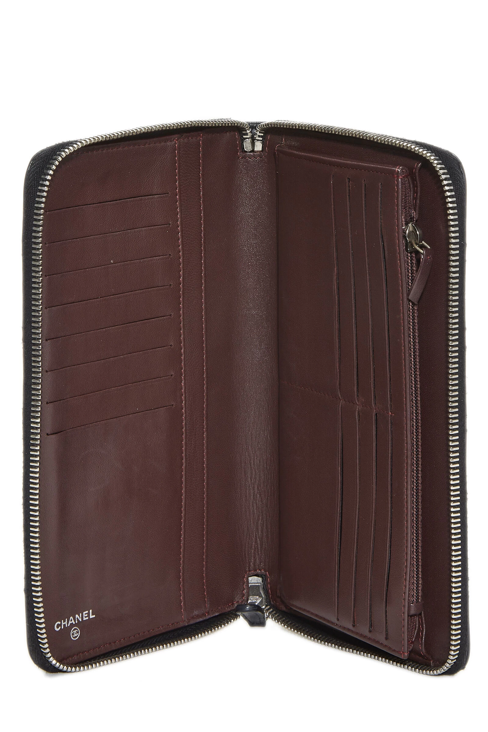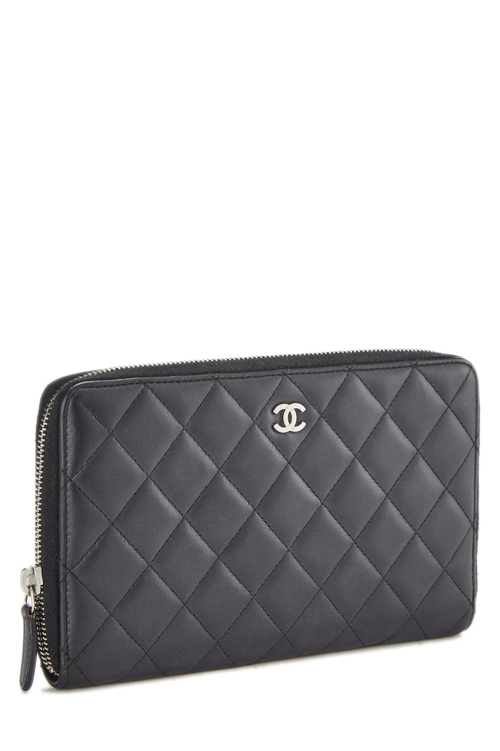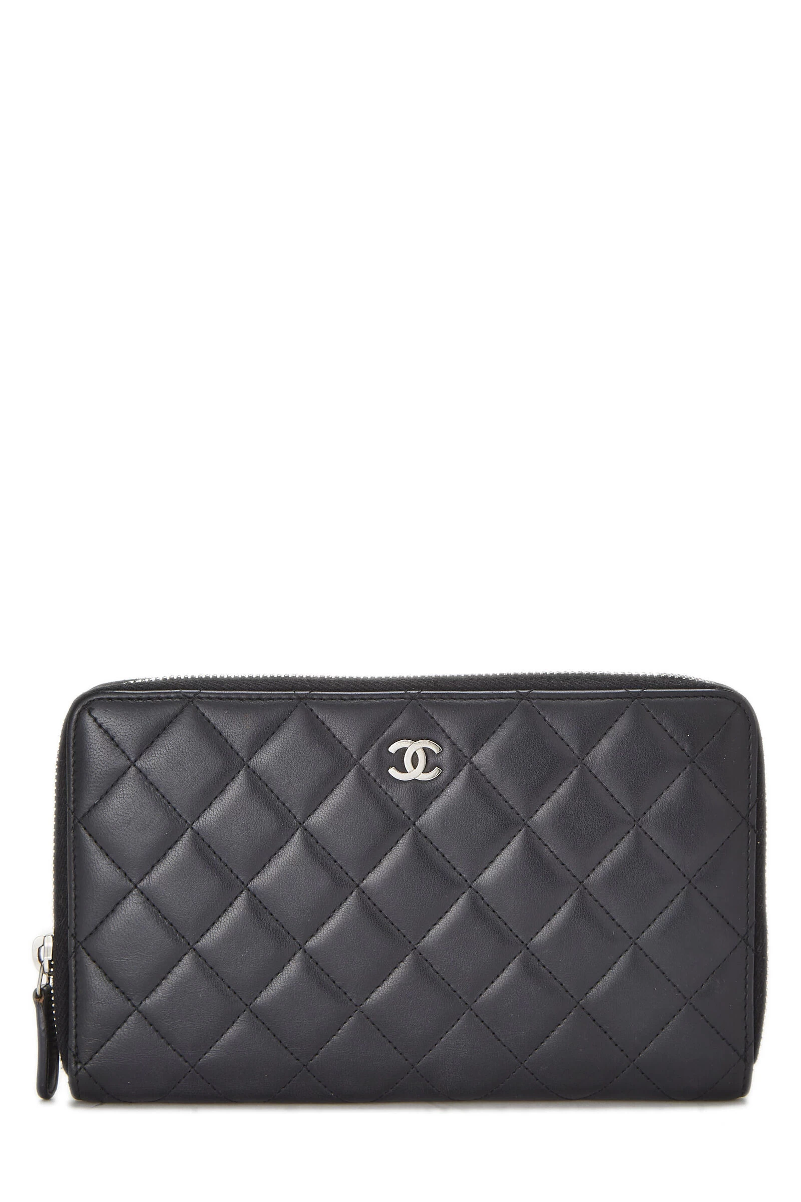 Large zip around wallet from Chanel crafted in smooth and luxurious lambskin leather. Zip the wallet open to reveal multiple interior pockets and slots to house all of your wallet toting essentials.