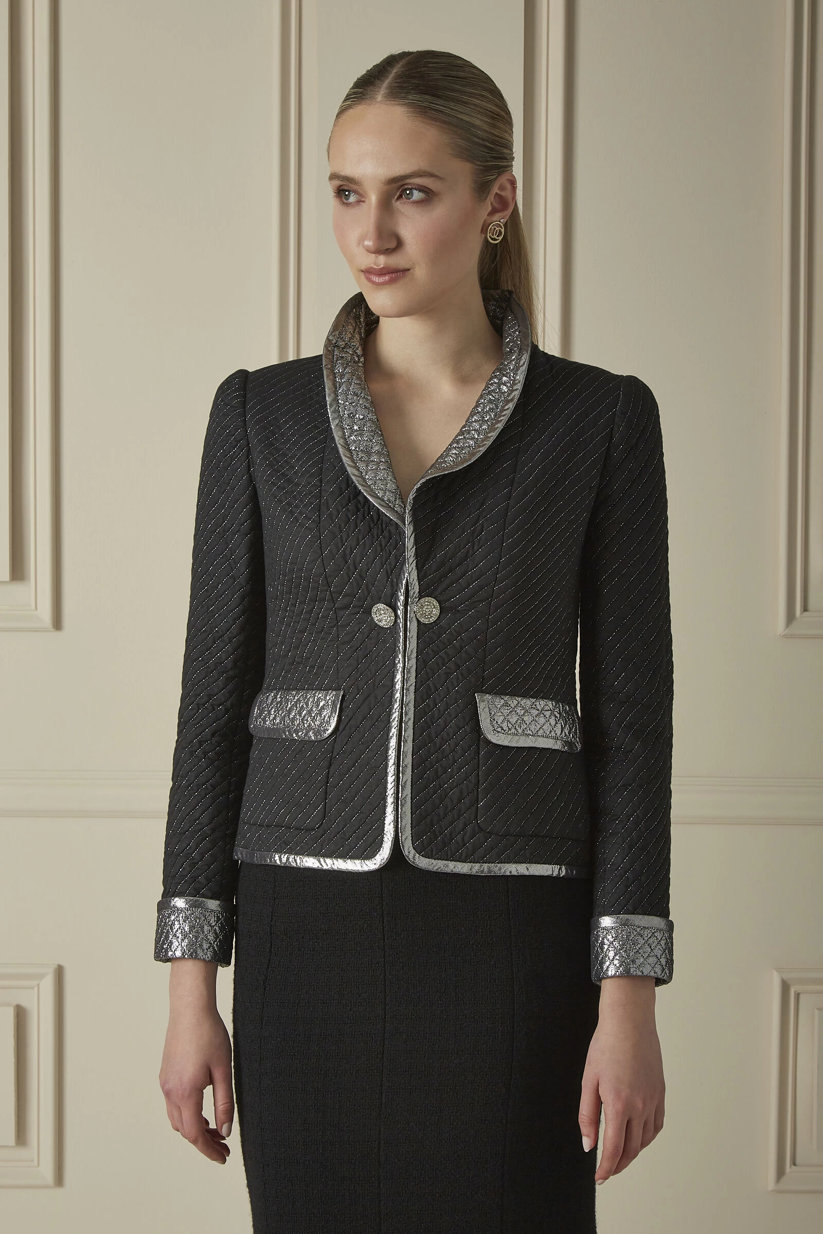 For whenever you’re craving extra shine, this Fall/Winter 2006-era Chanel jacket comes rendered in diagonally quilted cotton with silver metallic stitching, trim and diamond-quilted cuffs for contrast. It fastens with a crystal-set button duo that’s connected by a silver-tone chain. The satin lining will feel ultra-cool on bare arms. Pair yours with sparkly jewels and your next evening out.