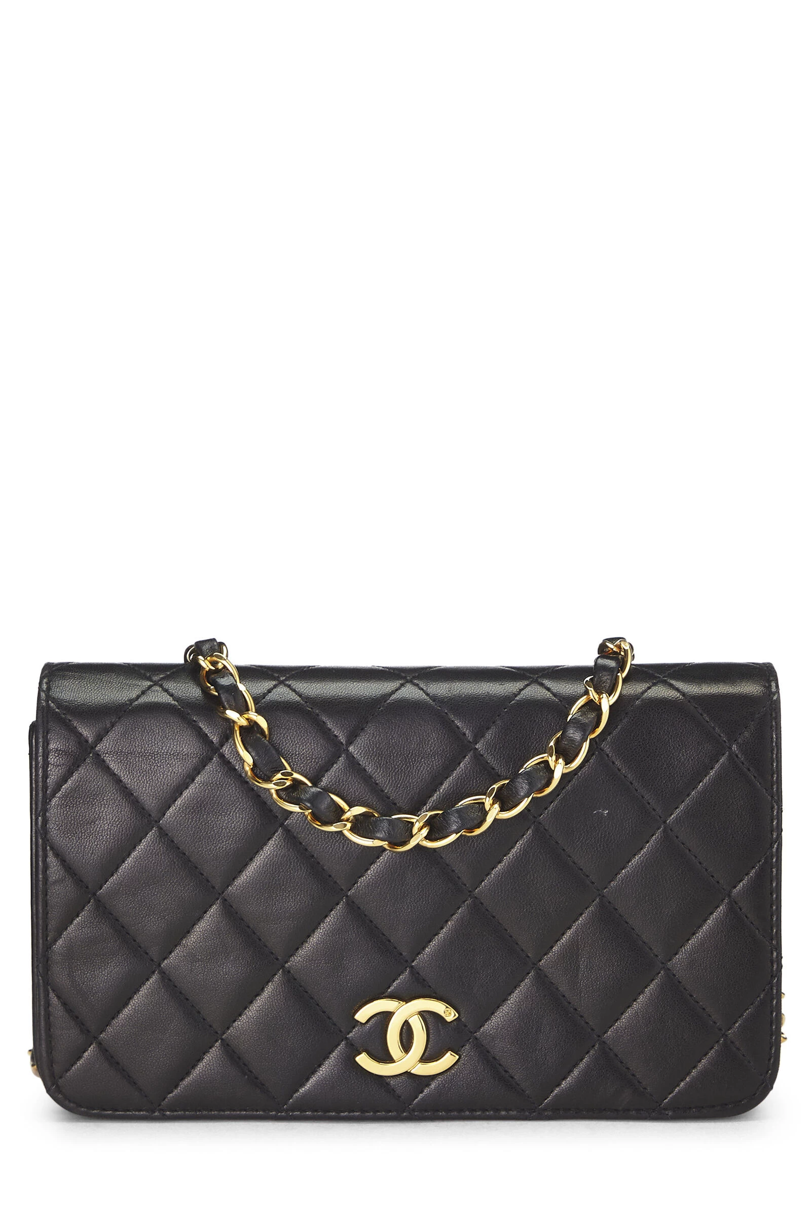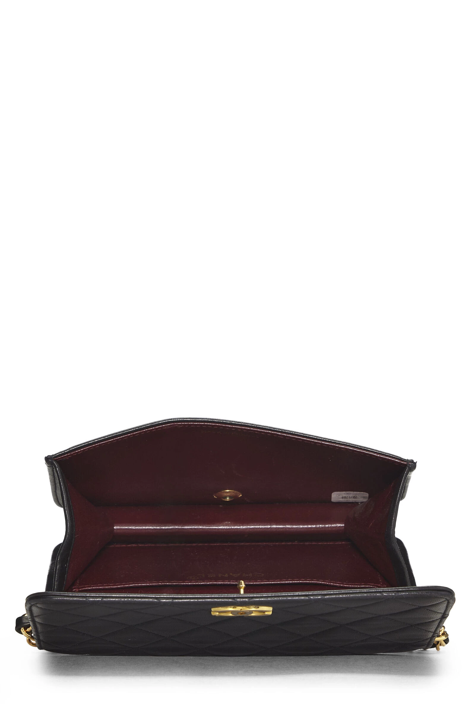 Vintage Chanel full flap bag is crafted in black quilted lambskin, with burgundy leather interior and finished in gold-plated metal hardware.