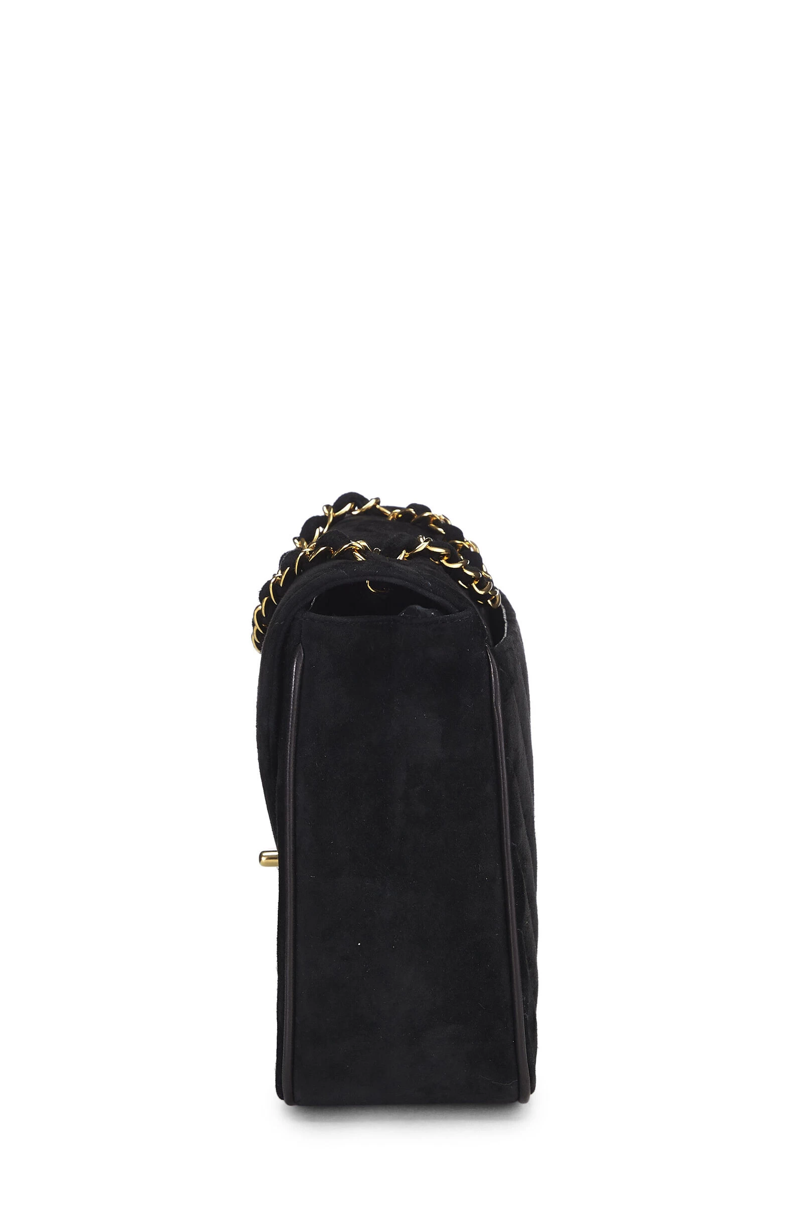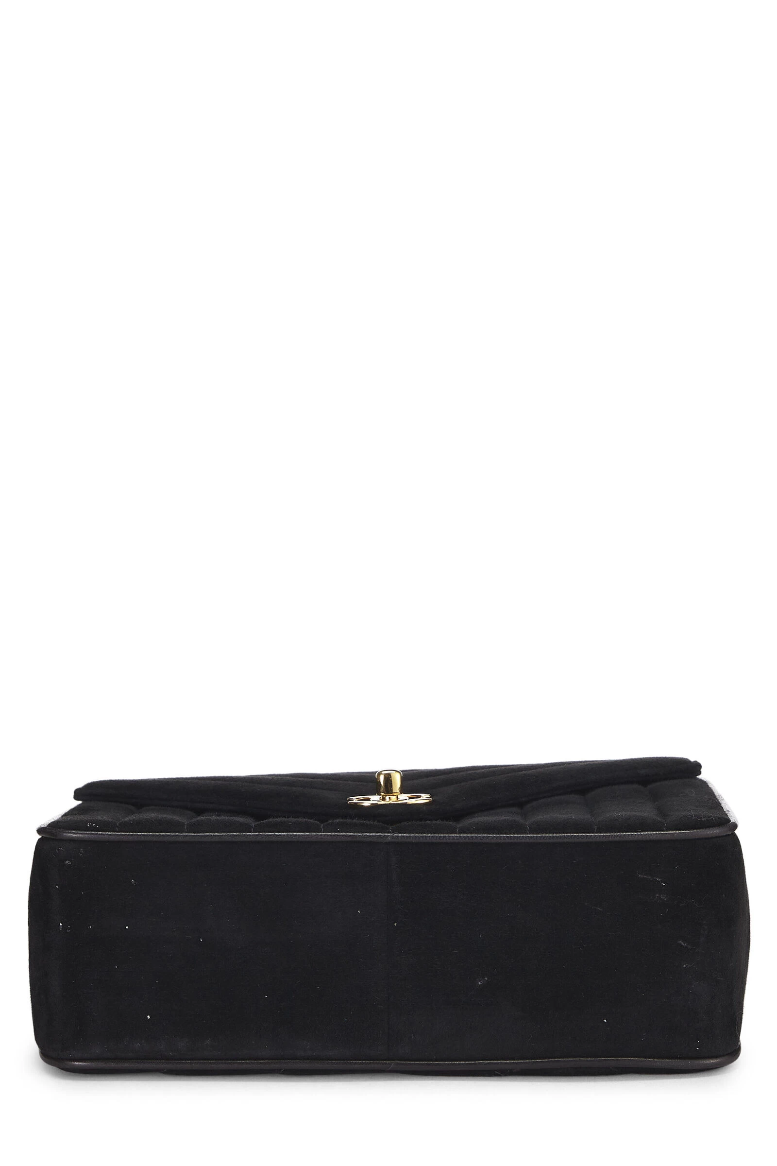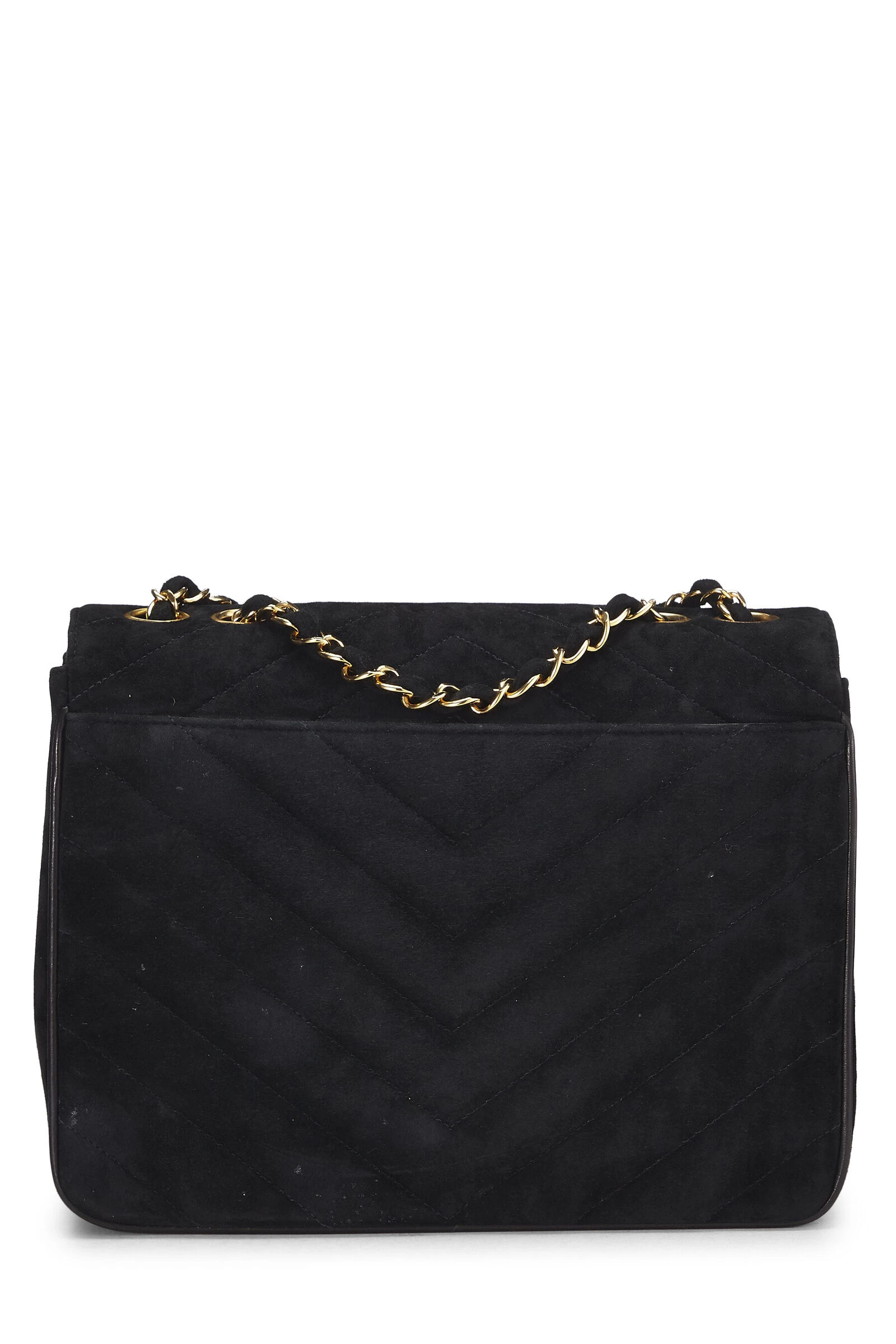The perfect bag to jazz up any outfit, this Chanel flap bag is crafted in black chevron stitched suede, with black leather lining and finished with ‘CC’ turnlock closure at front envelope shaped flap.