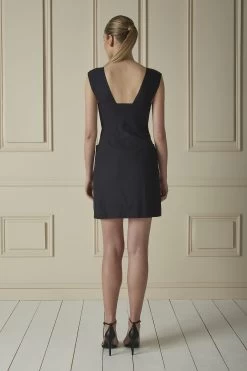 Chic and elegant, this Chanel mini dress features a white satin bodice that contrasts beautifully with black velvet cap sleeves and skirt. The velvet is embellished with glittering camelia and ‘CC’ motifs, iconic to the house’s history. Sparkly textured gray buttons with silver-tone sunburst ‘CC’ accents adorn the bodice, while a pointed collar finishes the look with stylish charm.