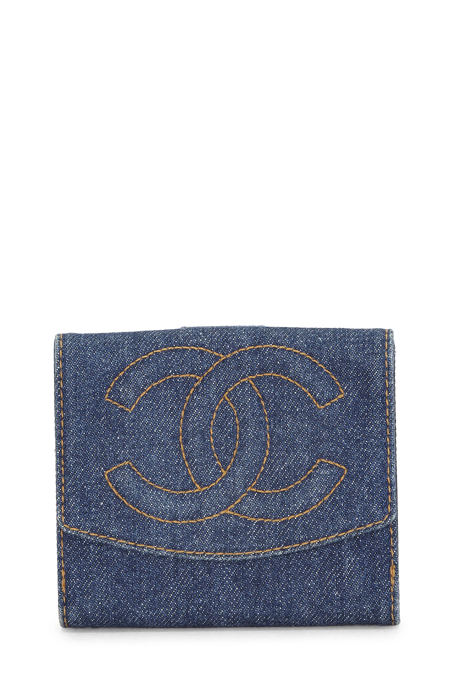 This chic and always on-trend wallet is crafted in dark wash denim, accented with quilted interlocking ‘CC’ logo embroidery on the front and finished with gold-tone hardware.