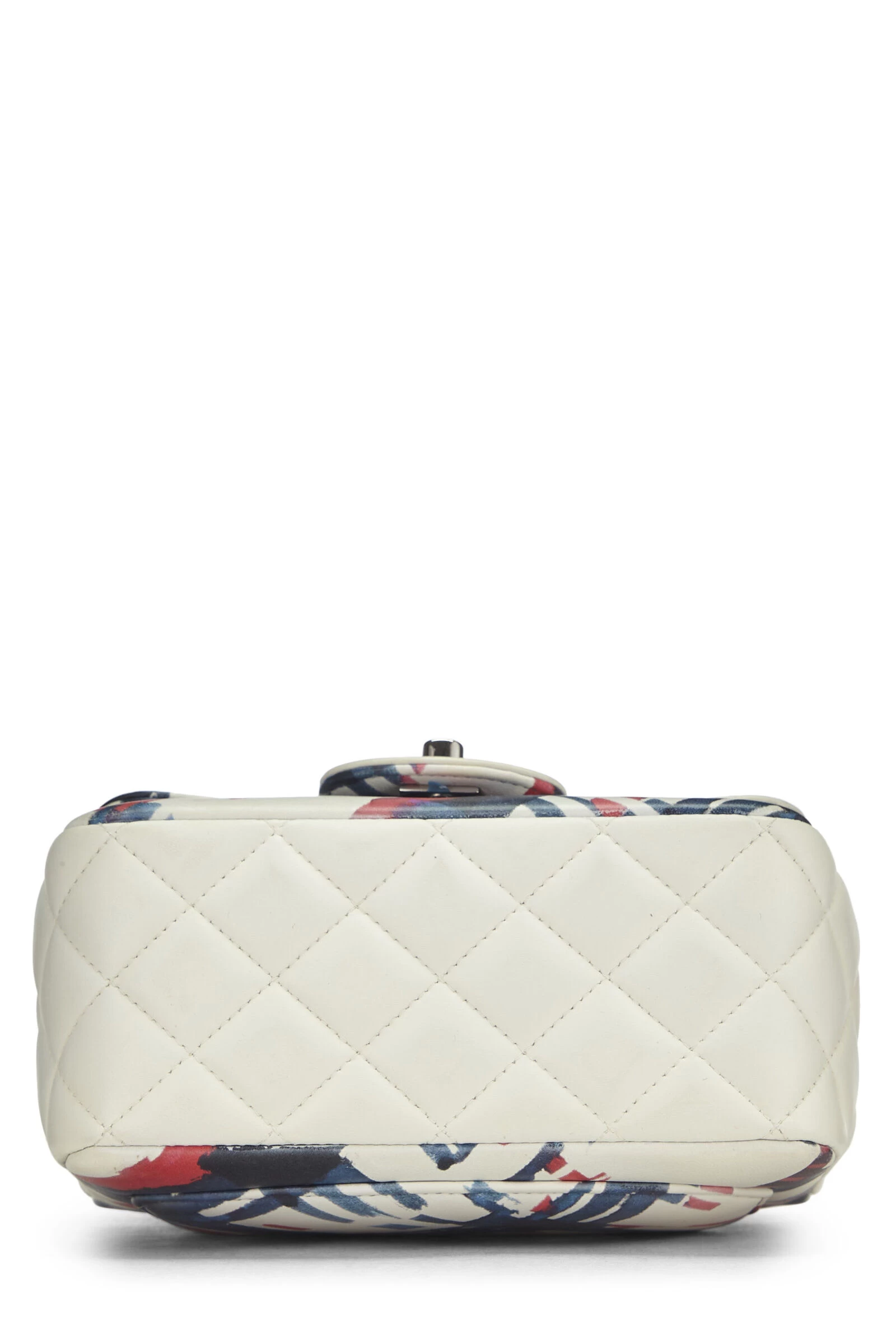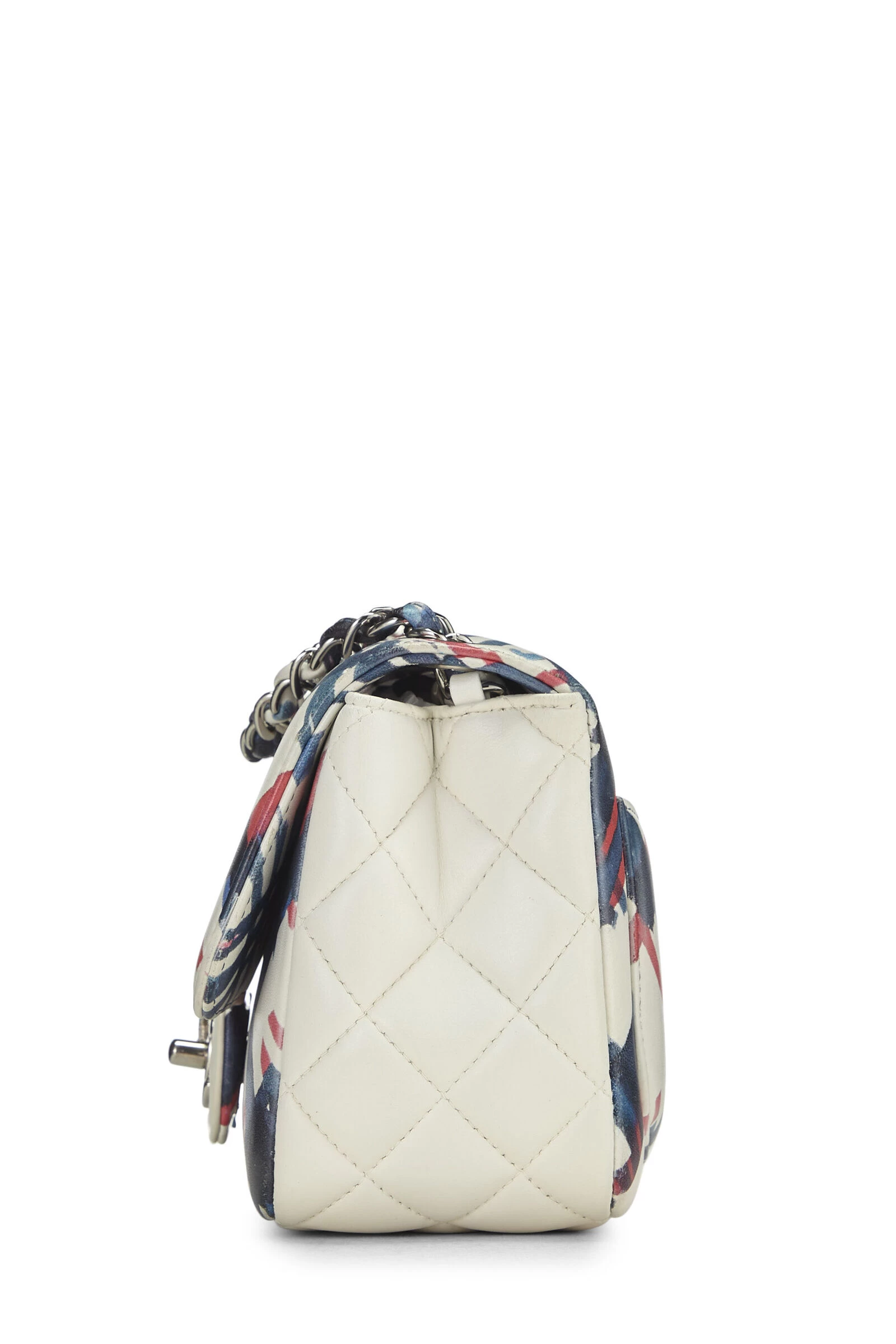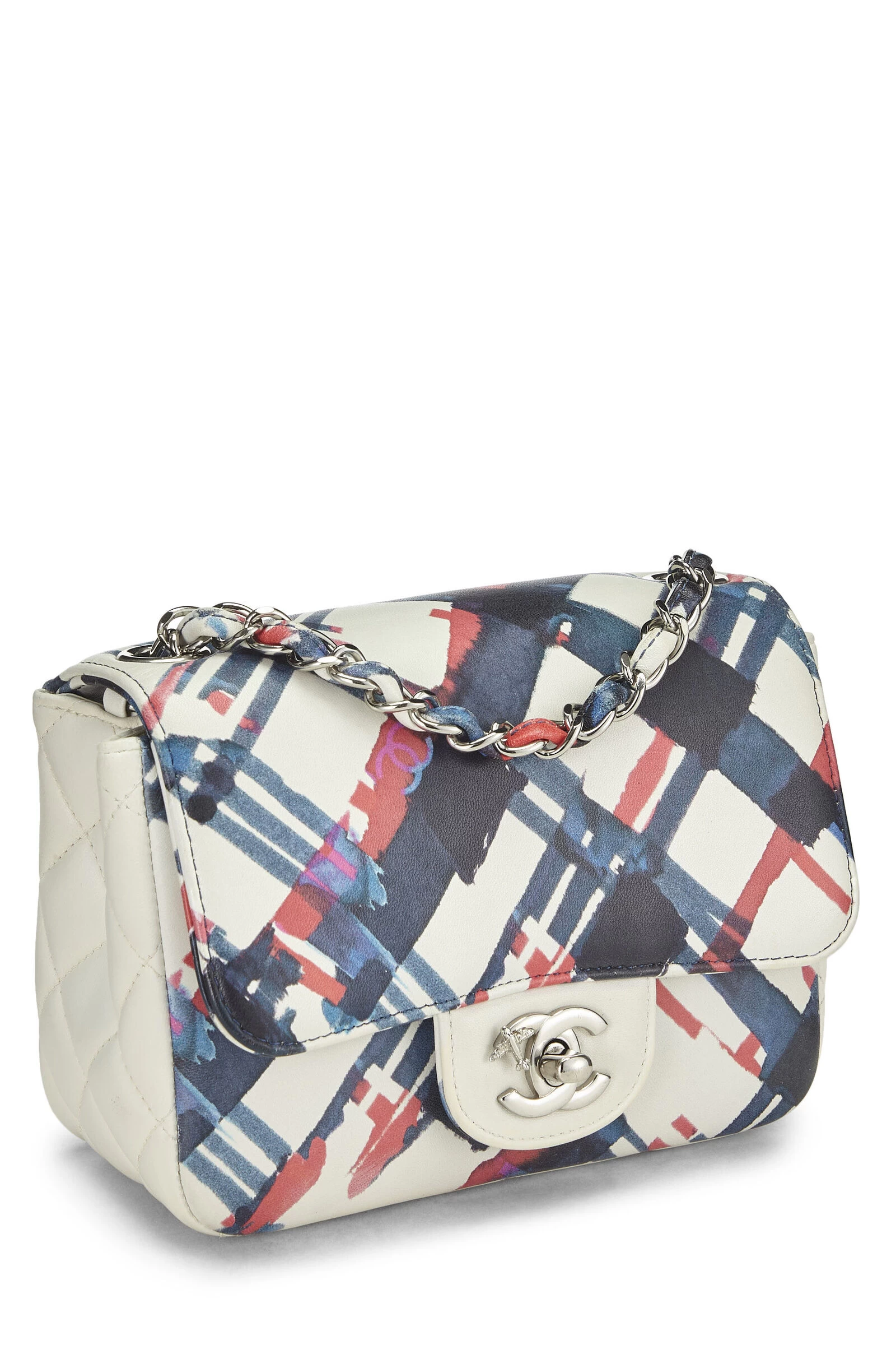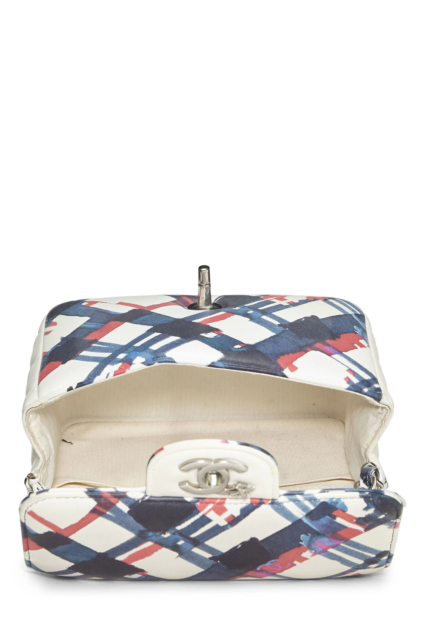 From Chanel’s Spring/Summer 2016 airline-themed runway show, the iconic Mini Square Flap bag is crafted in white, navy and red plaid calfskin leather, featuring silver-tone ‘CC’ turnlock with tiny airplane embellishment on the front.