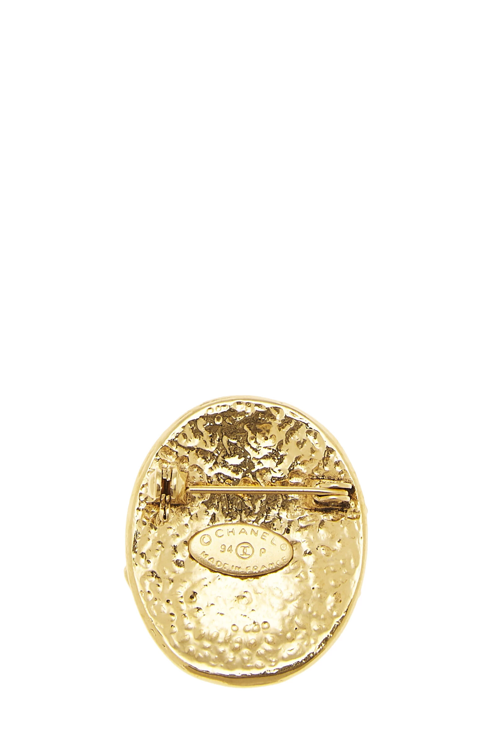 A beautifully timeless accent for any look, this Spring 1994 round Chanel pin is rendered in gold-plated and finished with an interlocking hammered ‘CC’ logo at the center.