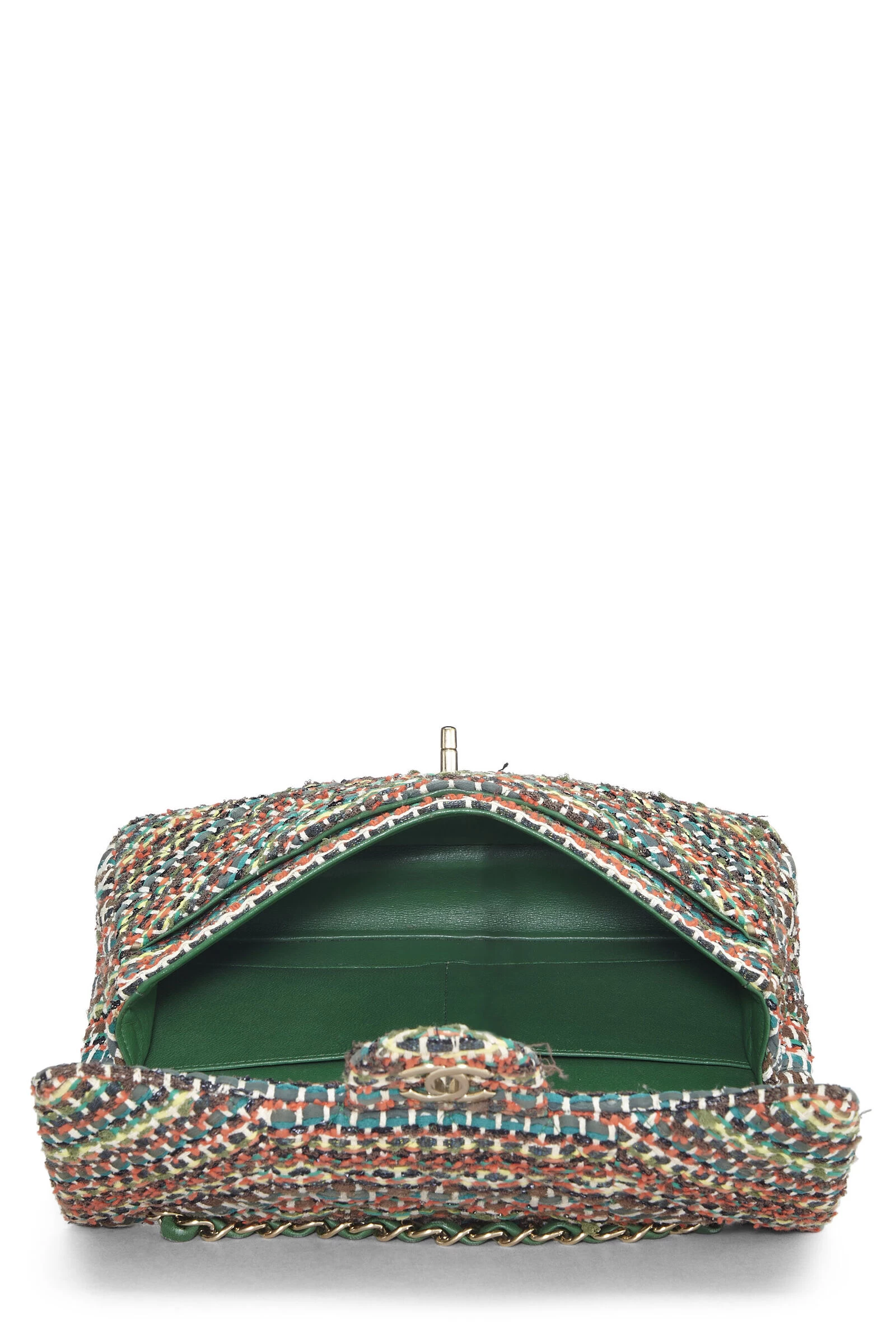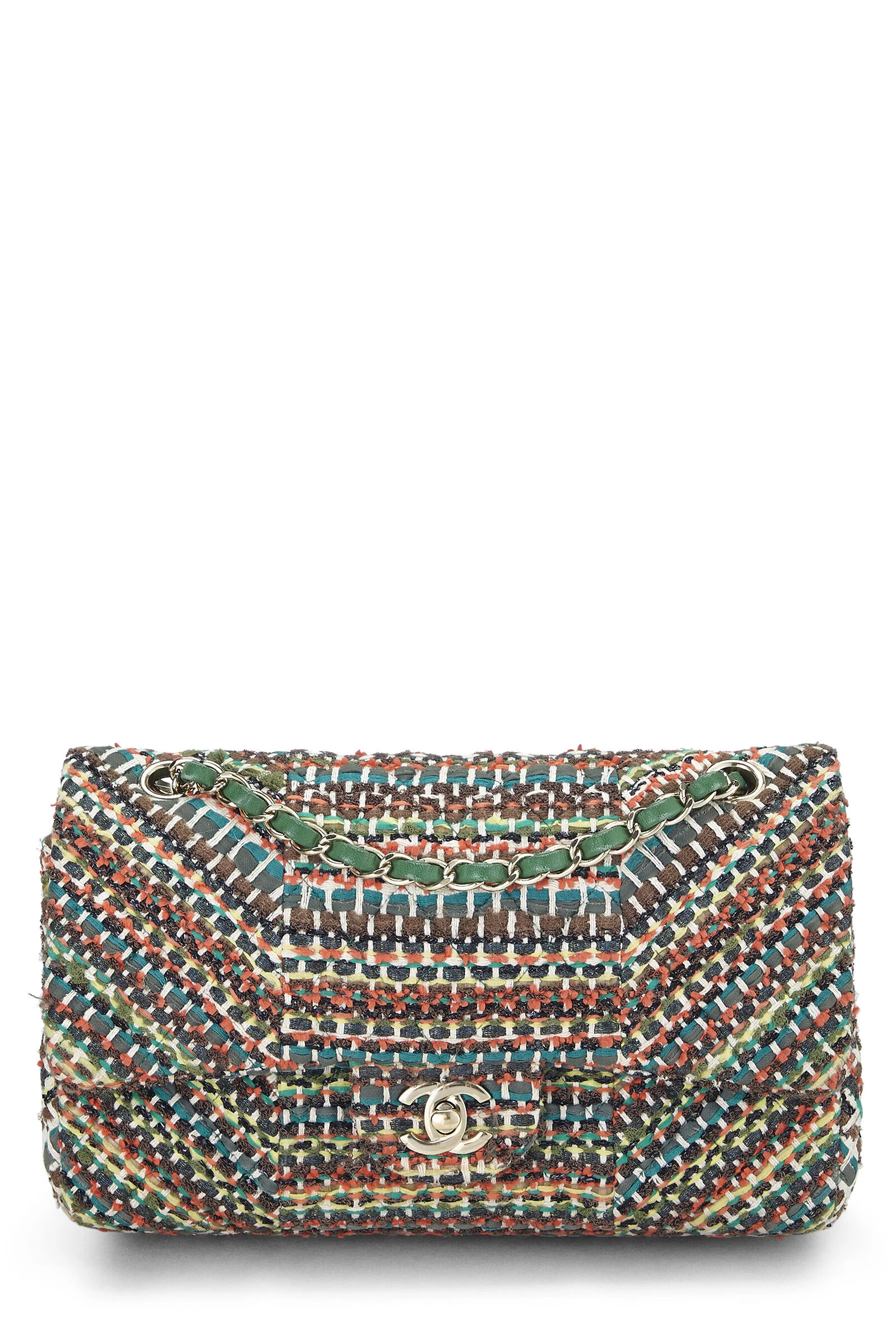 Featured in Chanel’s Spring/Summer 2016 runway collection, this collectible version of the medium Classic Double Flap features a multicolor chevron tweed exterior with silicone trompe l’œil border, finished with gold-tone ‘CC’ turnlock and chain hardware.