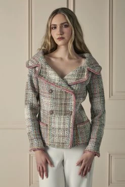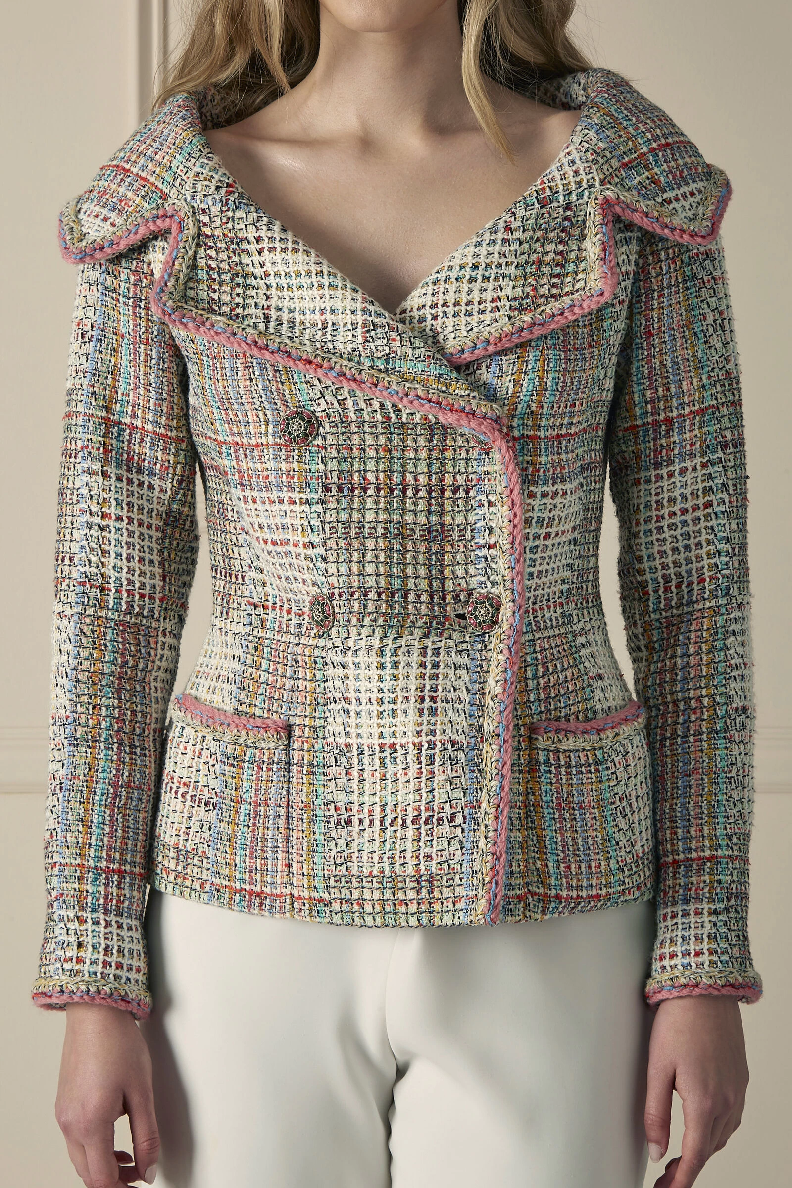 Try as we may, we can’t seem to keep this off-shoulder tweed jacket off the brain. Coco Cuba, the name of Lagerfeld’s Resort 2017 collection debut, was an ode to the pastel-hued cityscape and easygoing feel of Havana, where the catwalk took place—and so it only makes sense that this tweed jacket comes stitched in multicolor and cut with a casual, collar bone-baring neckline. Follow show themes by pairing yours with breezy trousers and a coordinating fedora.