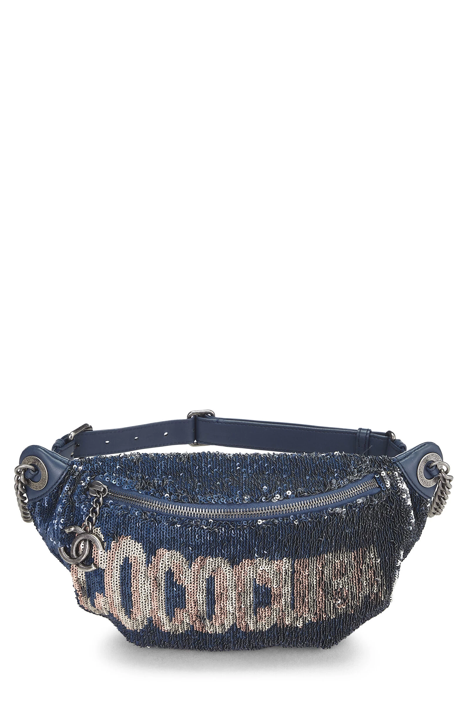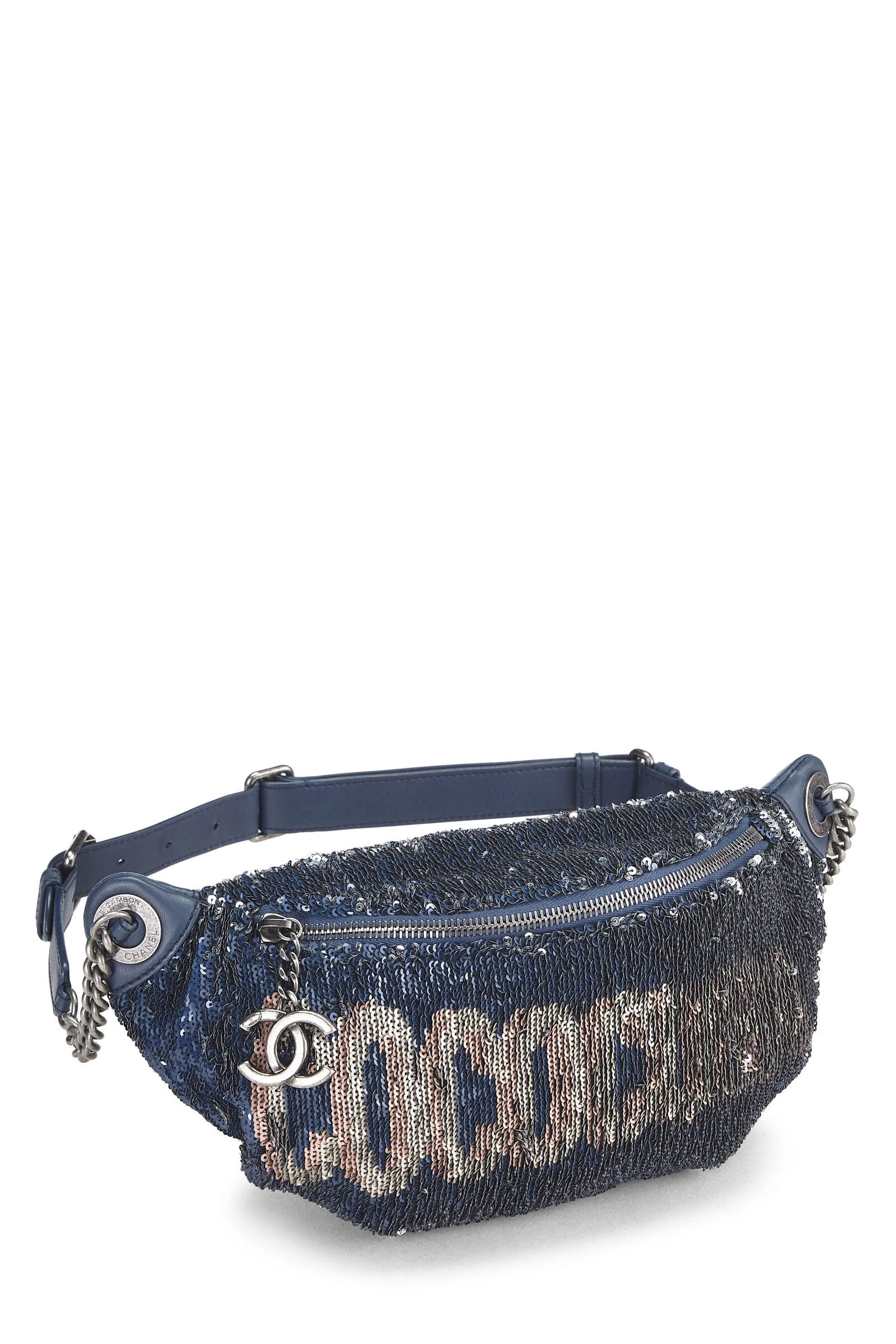 Typically inspired by a new location every year, Lagerfeld’s iconic Chanel Resort collections embody the chosen locale’s culture and aesthetic through the emulation of signature colors, fabrications and motifs. An incredibly rare find from the Paris-Cuba Resort 2017 runway collection, this waist bag is crafted from navy sequin with antiqued silver-tone hardware, and tonal satin interior.