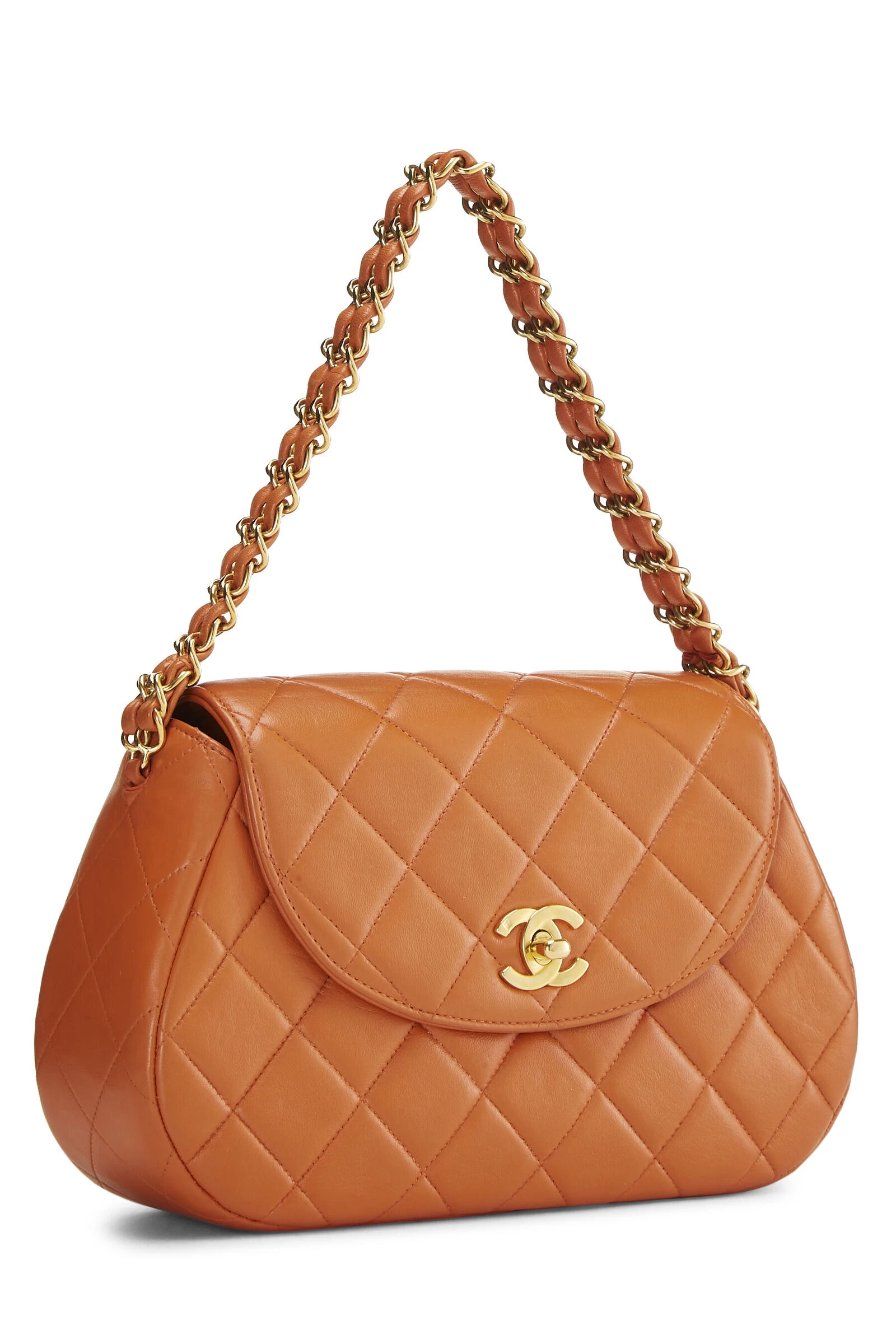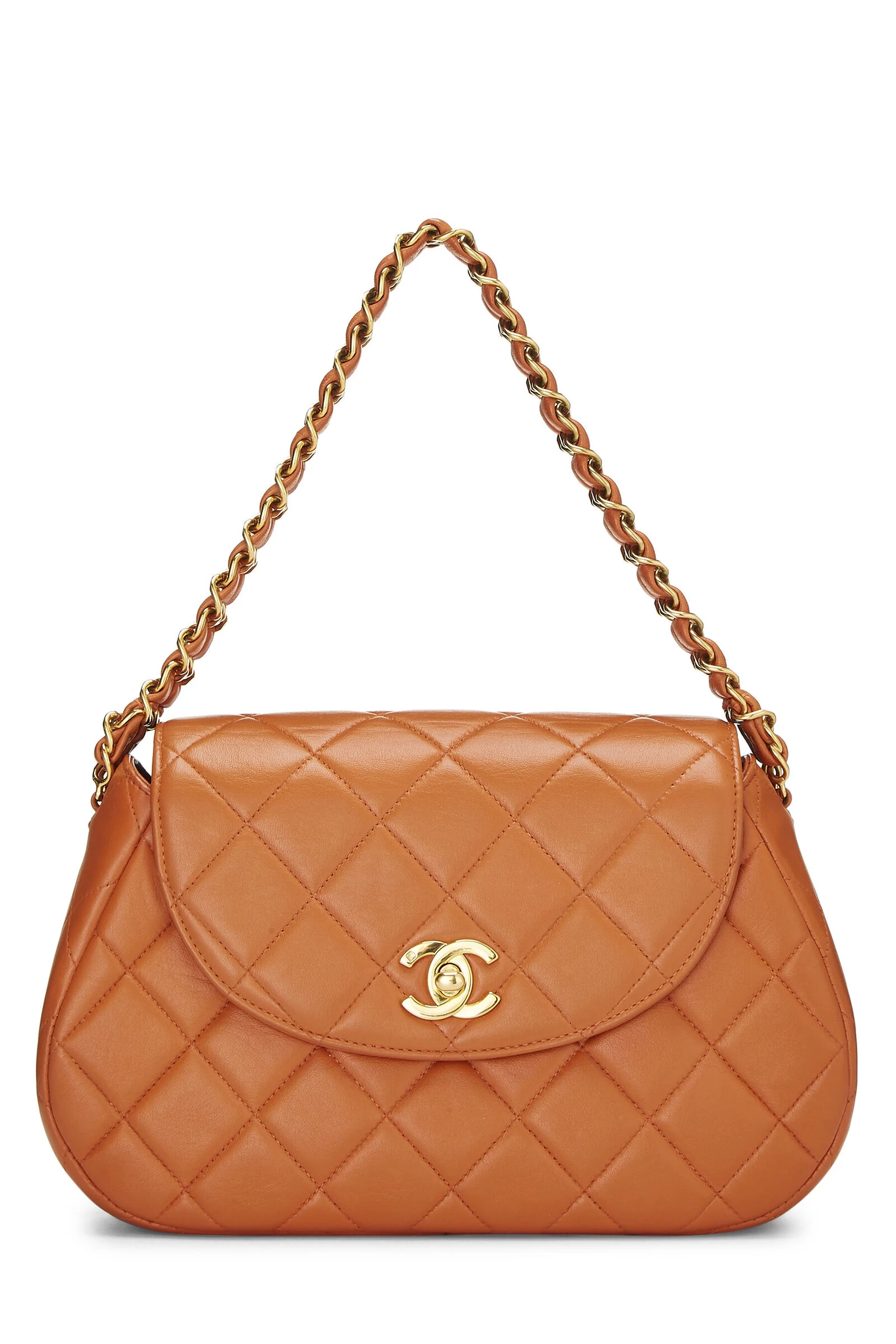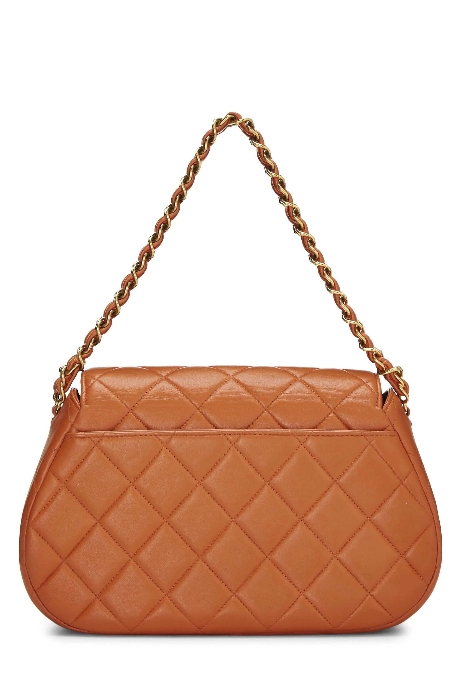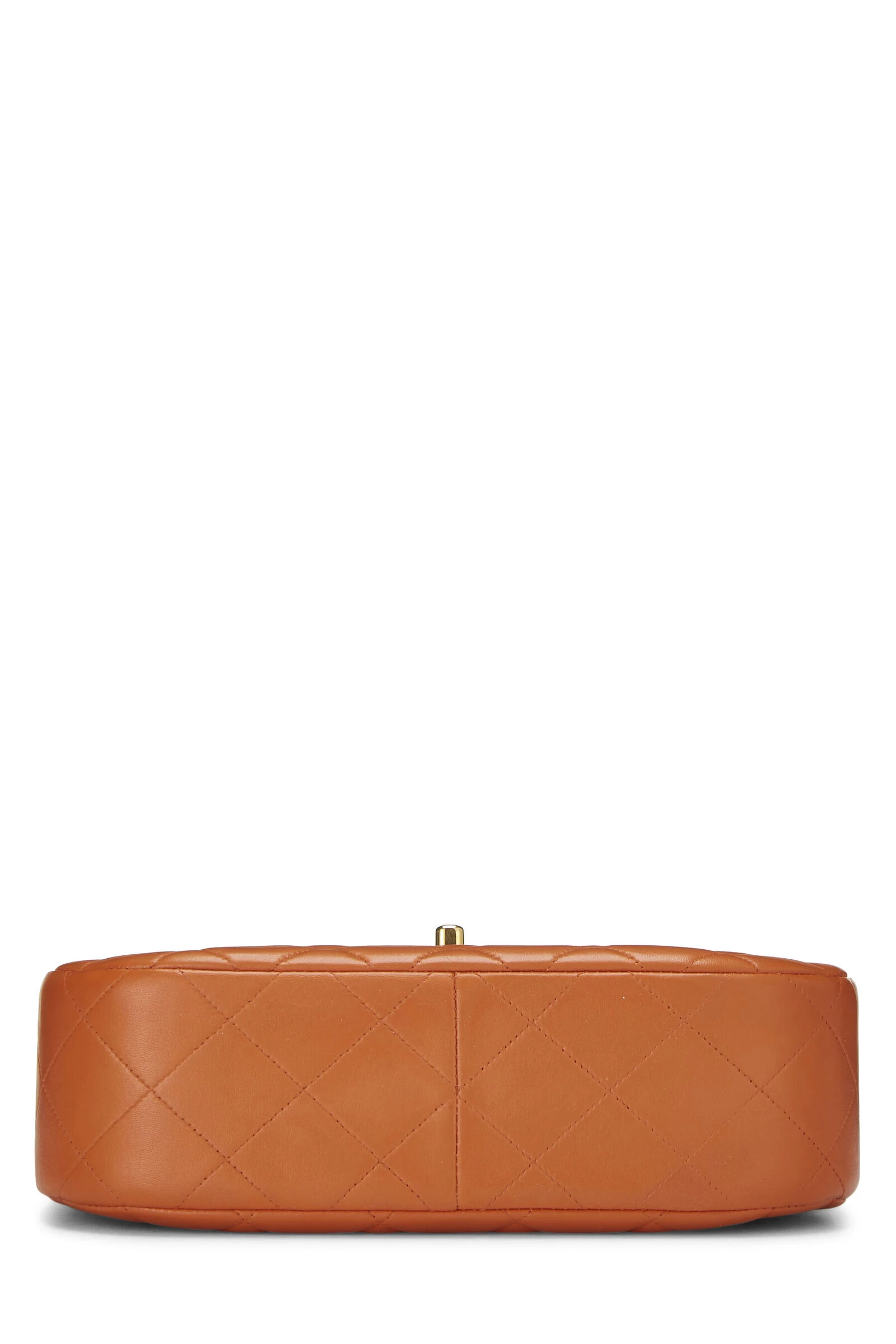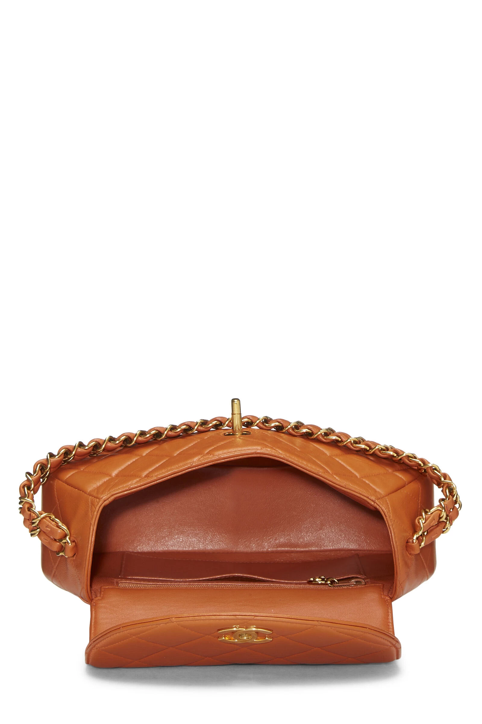 Vintage mid-90s Chanel handbag crafted in orange lambskin leather with signature diamond quilting, finished with gold-plated ‘CC’ turnlock on front flap.