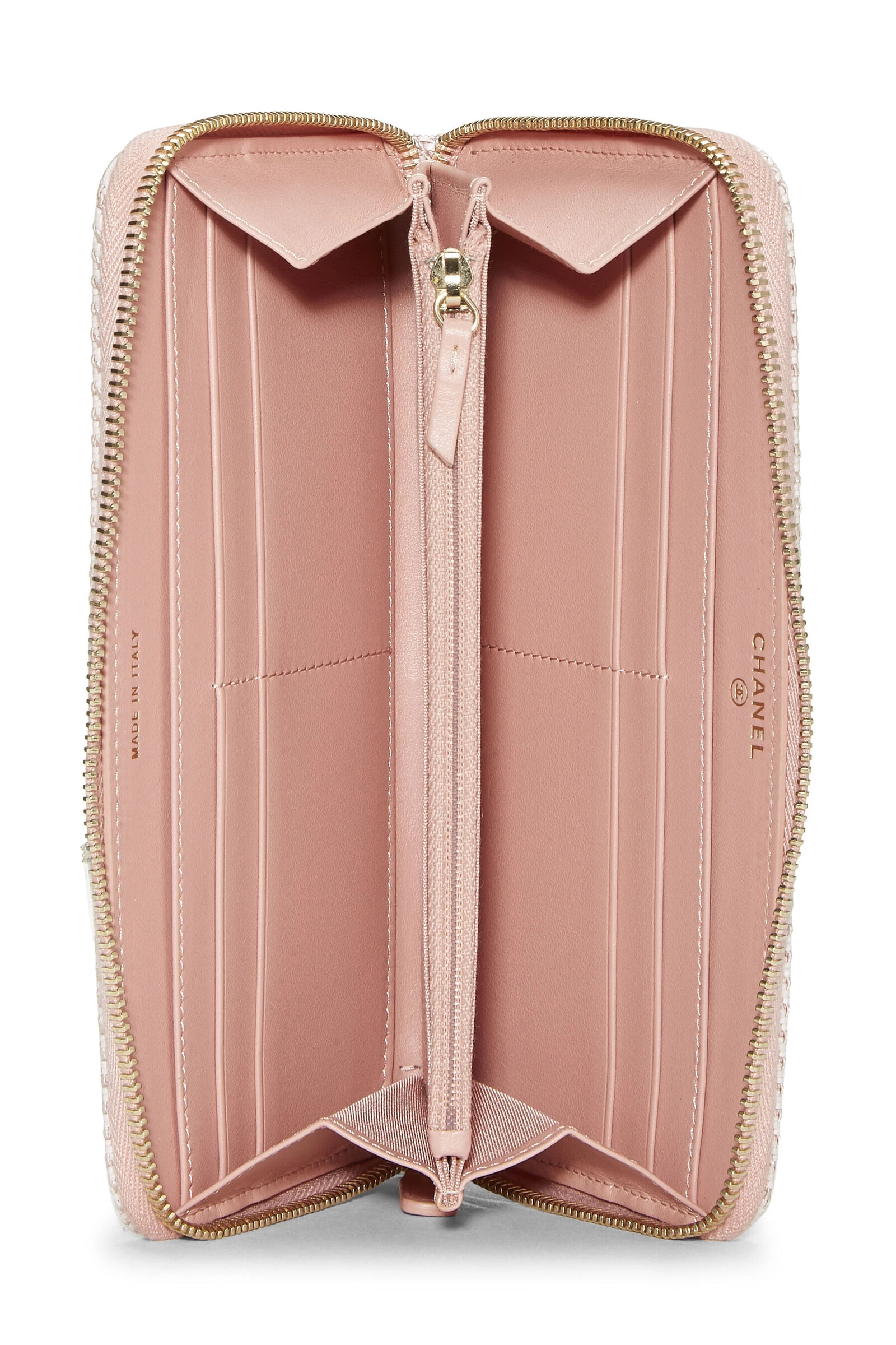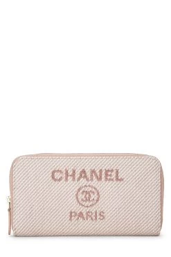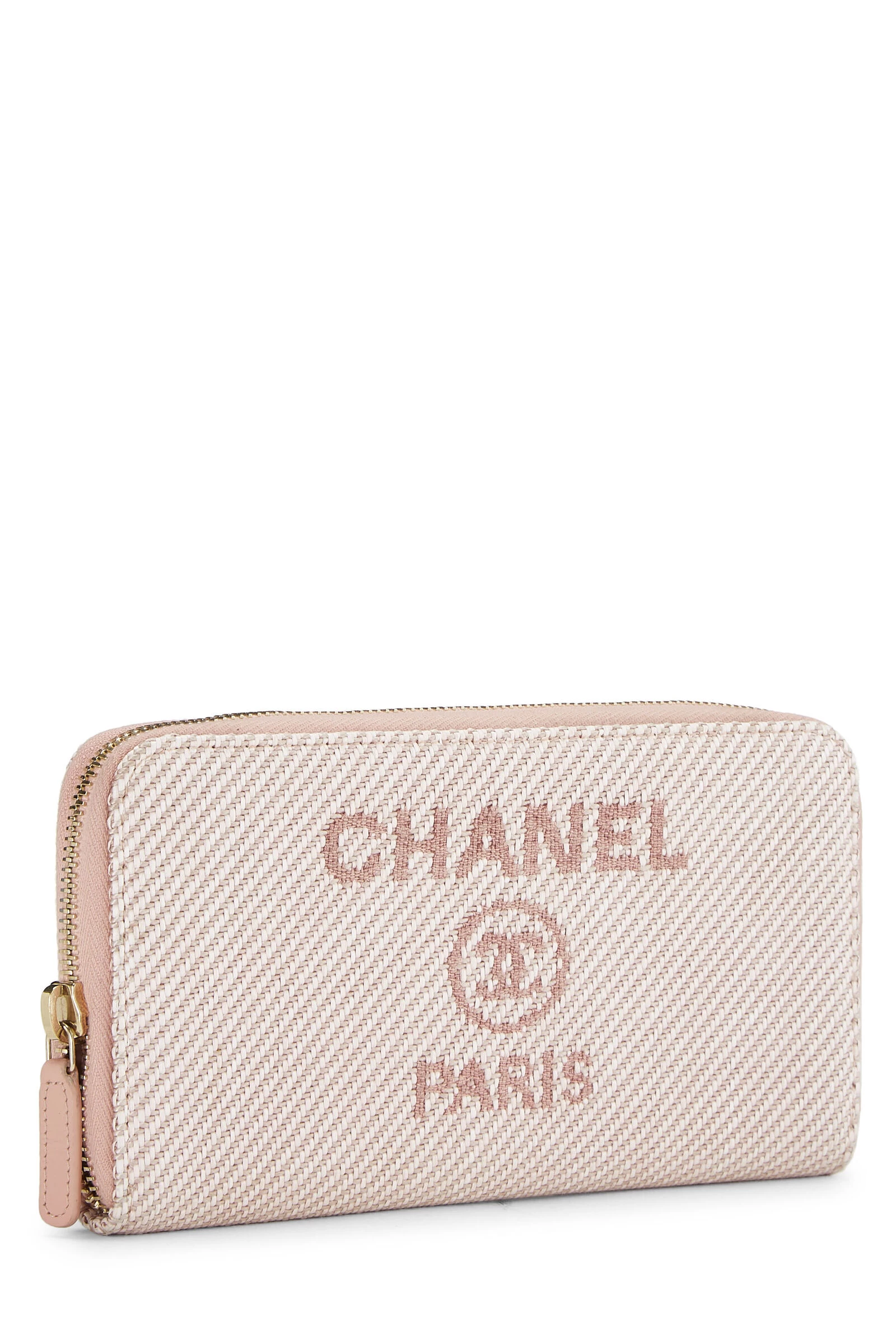 Initially debuted on the Spring/Summer 2012 runway, Chanel’s Deauville collection gained quick popularity for its simplistic and sleek styles combined with fresh yet durable materials. The Deauville collection gets its name from Coco’s favorite beach resort in Normandy, meaning warm weather and resort wear were also large influences on the collection. The Deauville zip wallet featured here is crafted in pink canvas, accented with logo Rue Cambon embroidery on the front and finished with gold-tone hardware.
