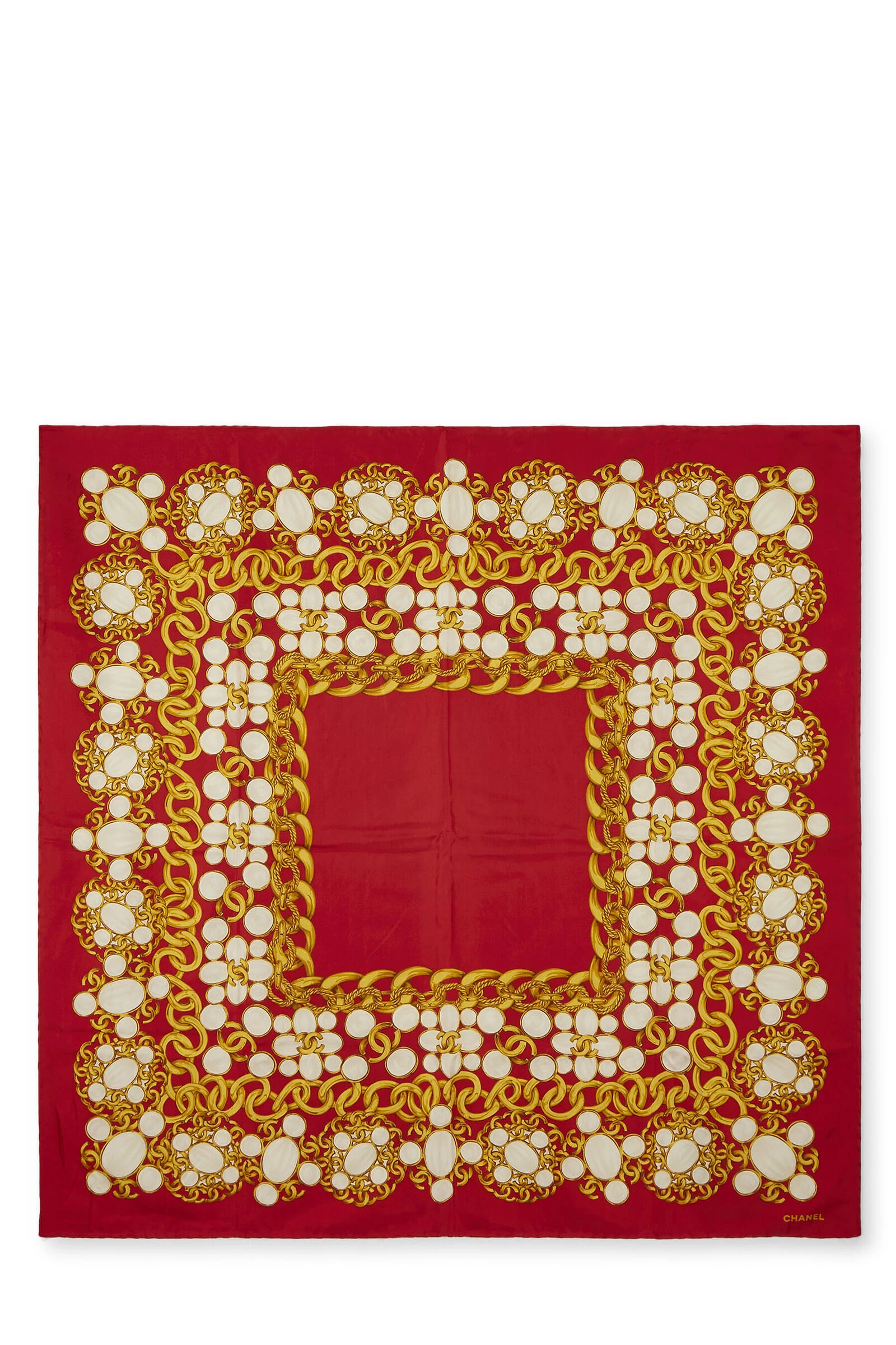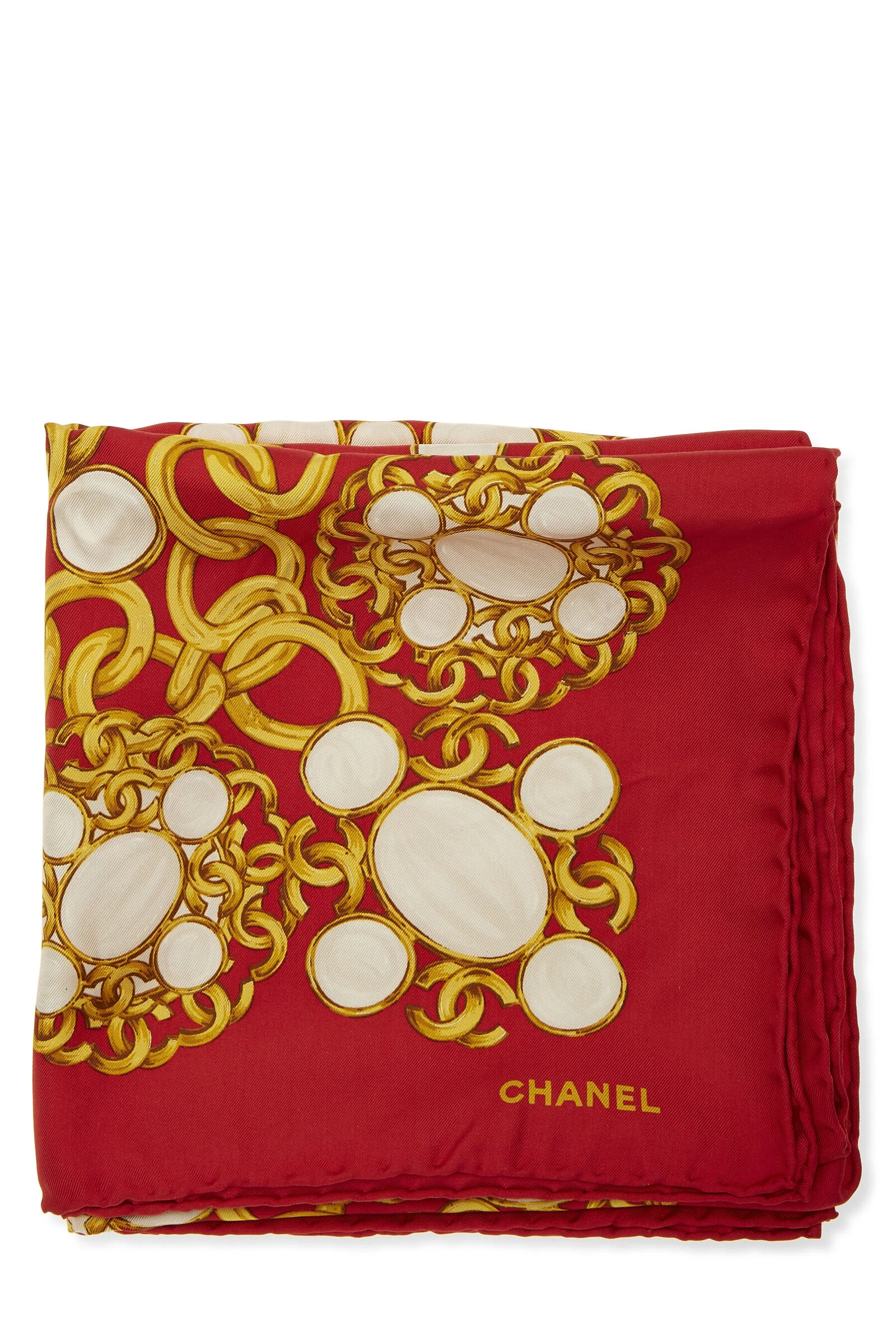 This stunning Chanel scarf is crafted in smooth silk featuring a stunning print which includes iconic Chanel imagery. The classic motifs featured are plentiful and include the iconic Chanel chain link and interlocking ‘CC’. The mix of colors and patterns is unique and no matter how it’s worn, it will be a conversation starter. Wear the scarf in your hair, around your neck, as a belt, or on your bag as a cute on-the-go accessory. 100% silk.