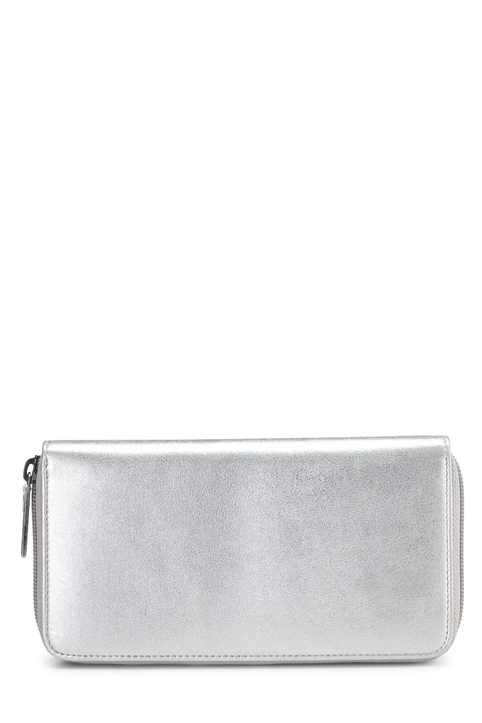 Be the envy of everyone with this eye-catching and sleek wallet from Chanel. Crafted in metallic silver leather, featuring the iconic interlocking ‘CC’ logo embroidered to the front, a spacious interior with multiple pockets and finished with gunmetal hardware.