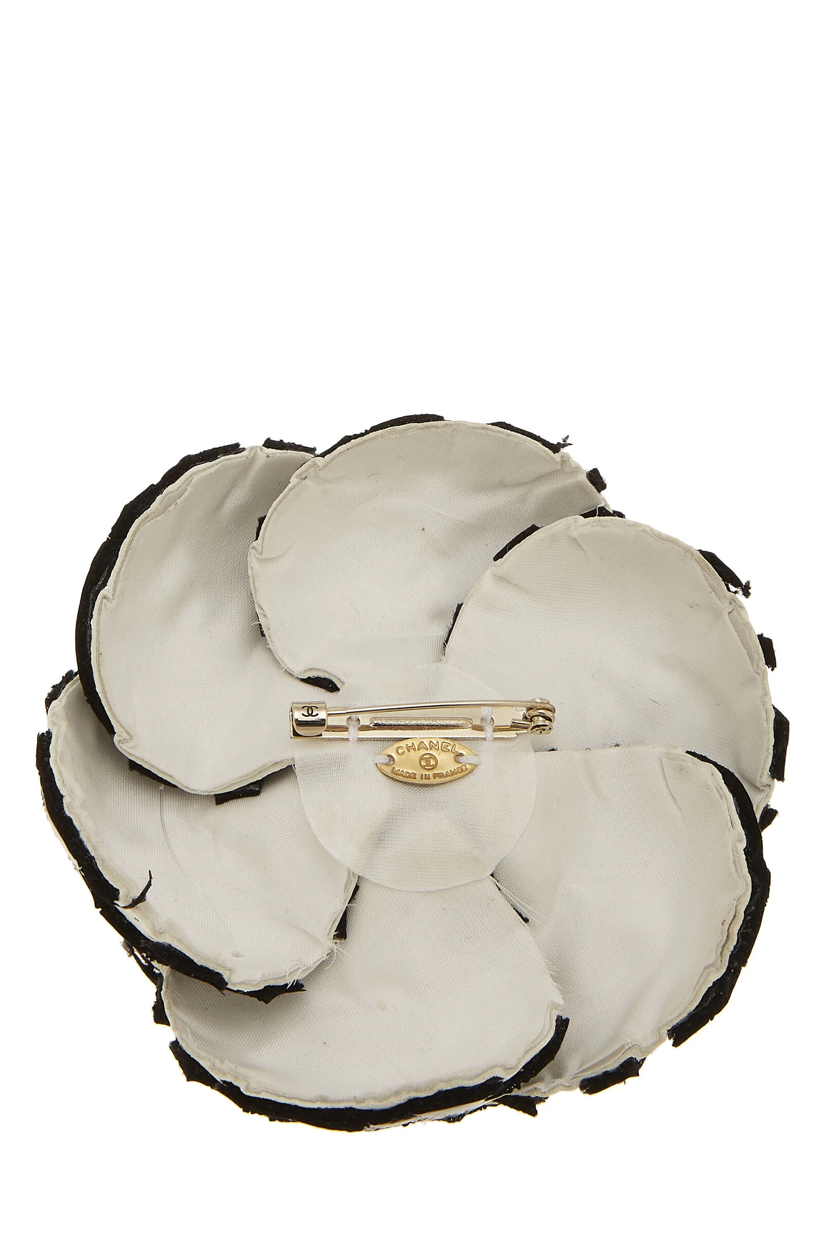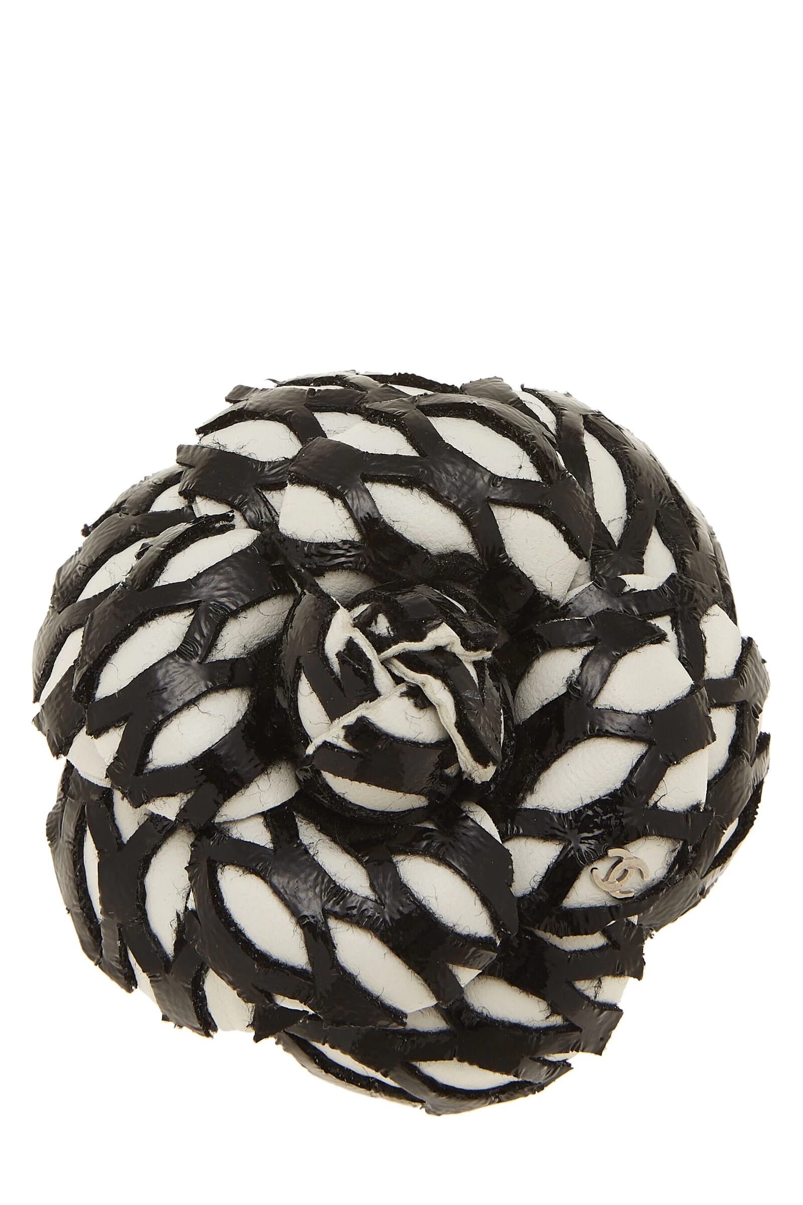 Accessories don’t get much more ‘Chanel’ than a Camellia flower brooch. This one is rendered in a delightful white leather and black patent detailing throughout featuring silver logo hardware. Style yours with both casual and done-up looks.