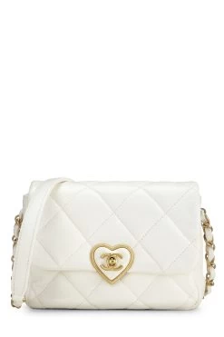 The ultimate example in chic Parisian glamour, the Coco Love flap bag is as chic as it is durable and is the perfect was to zhush up any outfit. Crafted in classic white lambskin leather and finished with gold-tone hardware, the bag features a gold-tone and white enamel heart surrounding the ‘CC’ turnlock closure, adding an extra touch beauty to the bag.