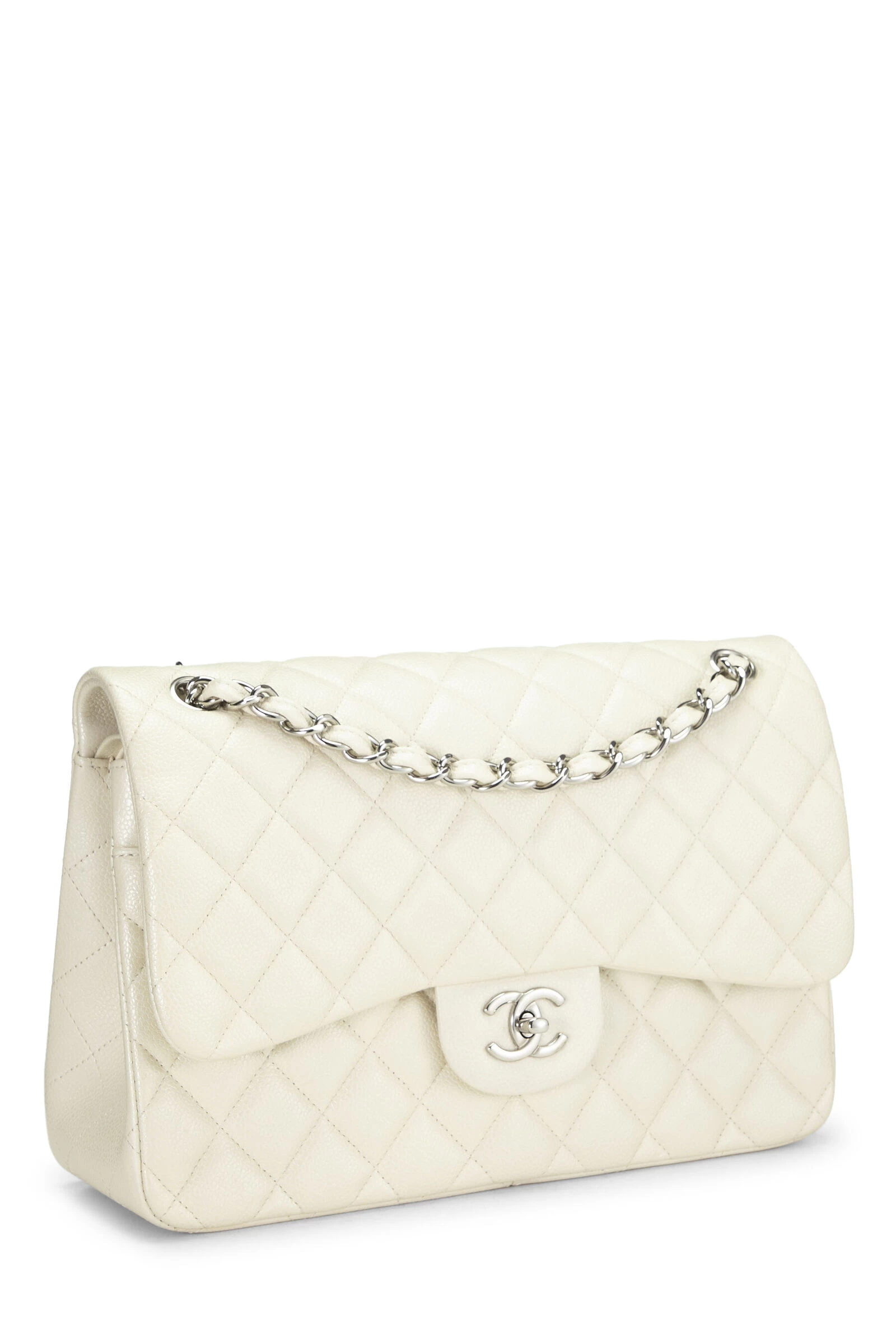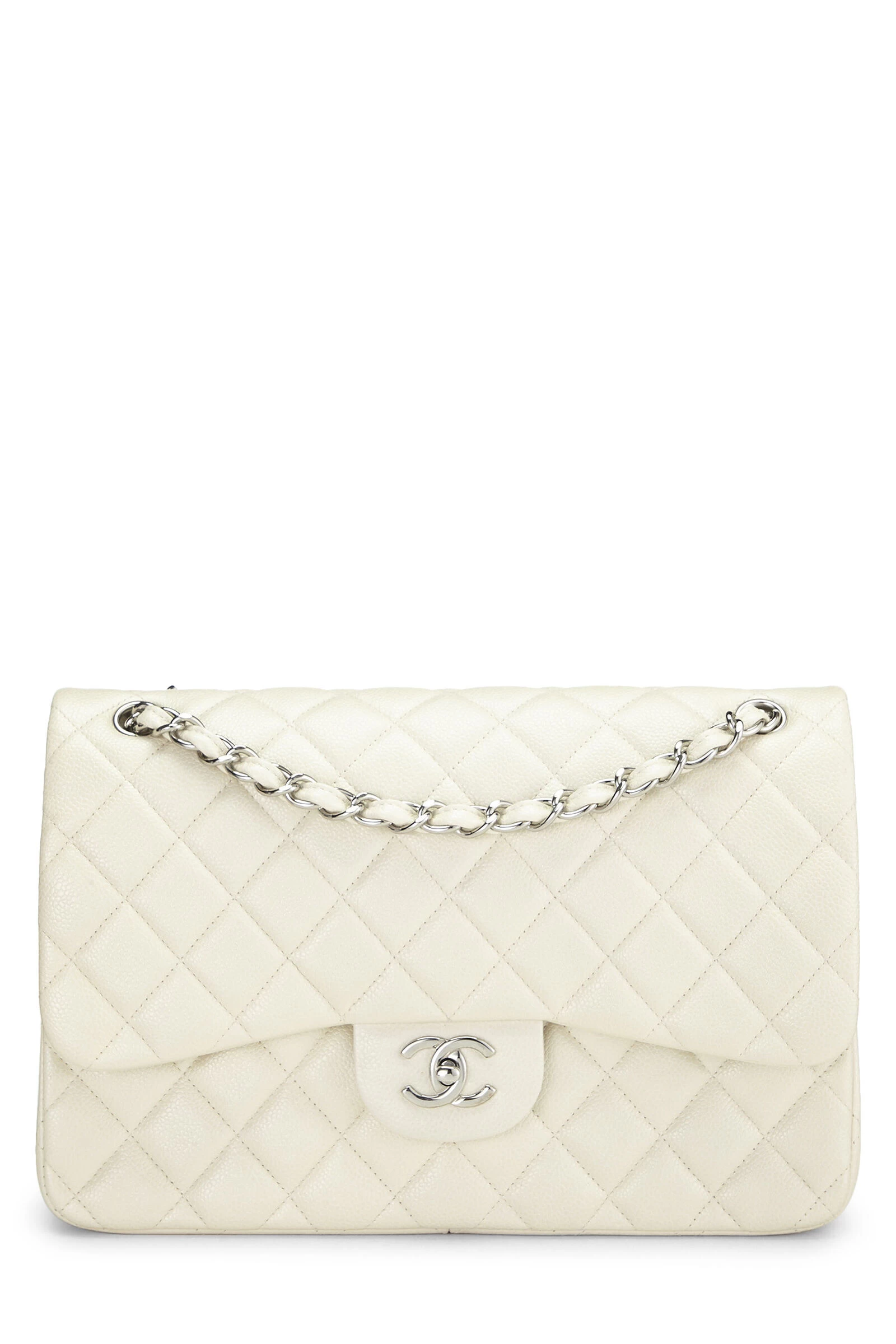 A fashion world favorite, the iconic Chanel Classic Double Flap new model shoulder bag is crafted in luxe quilted Caviar leather and accented with silver-tone ‘CC’ turnlock and chain hardware.