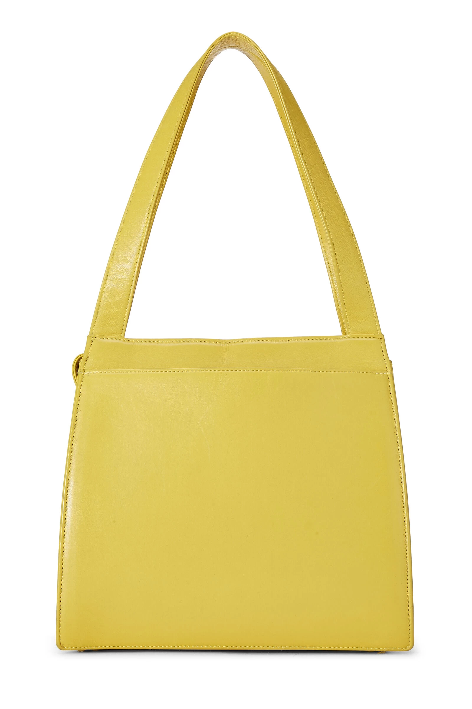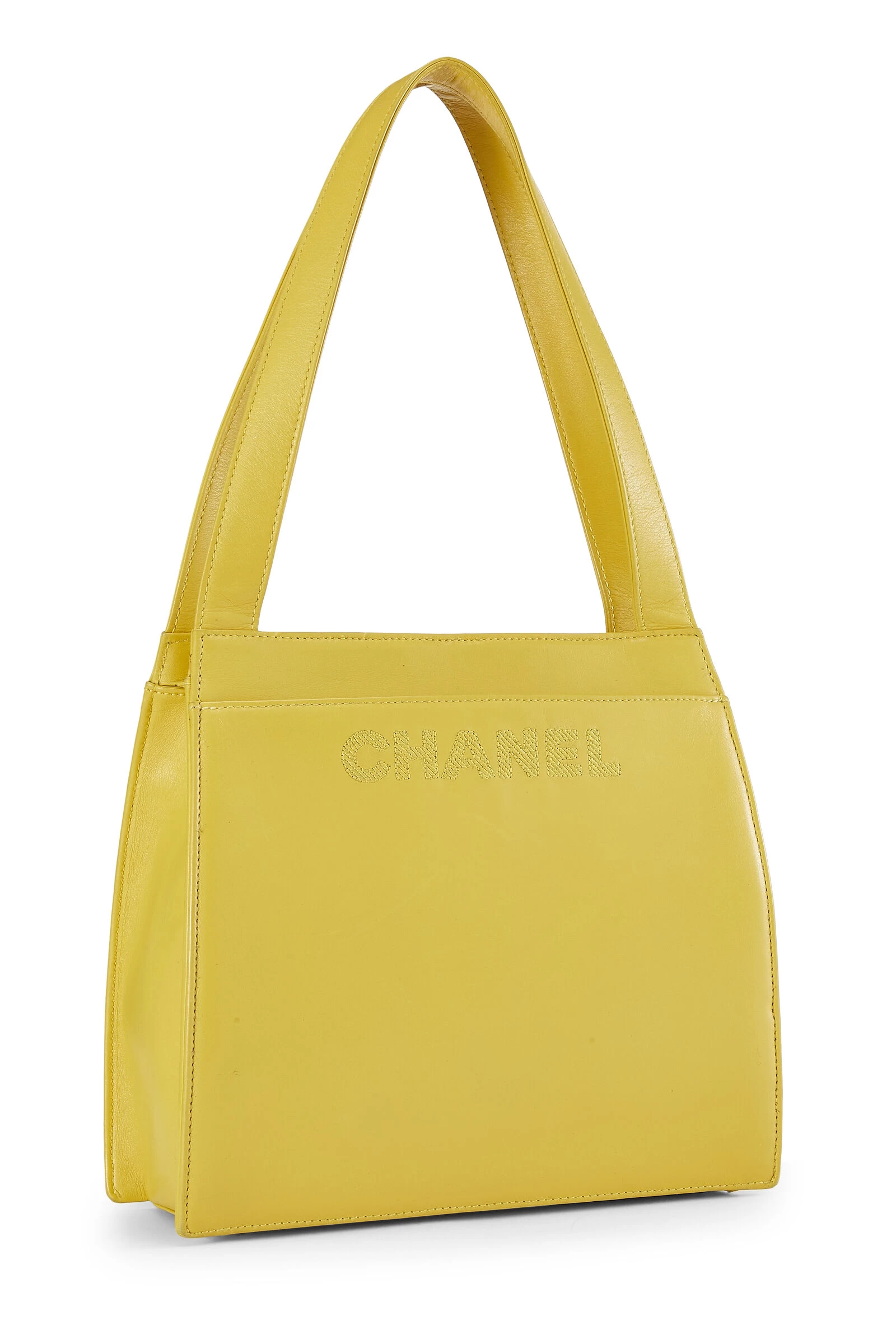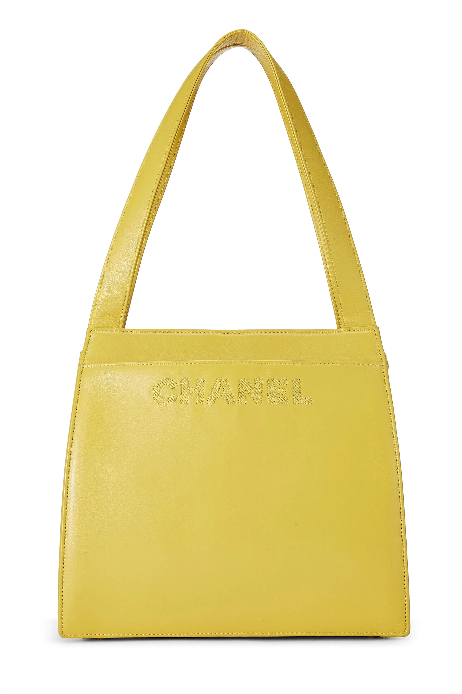 Vintage late 90s Chanel shoulder bag crafted in yellow lambskin leather featuring Chanel’s logo embroidered to the front of the bag along with two exterior slip compartments for easy access to all of your on the go essentials. The bag’s chic and structured silhouette is perfect for glamming up any outfit.