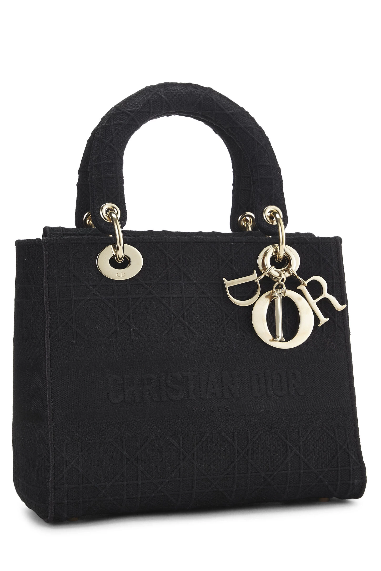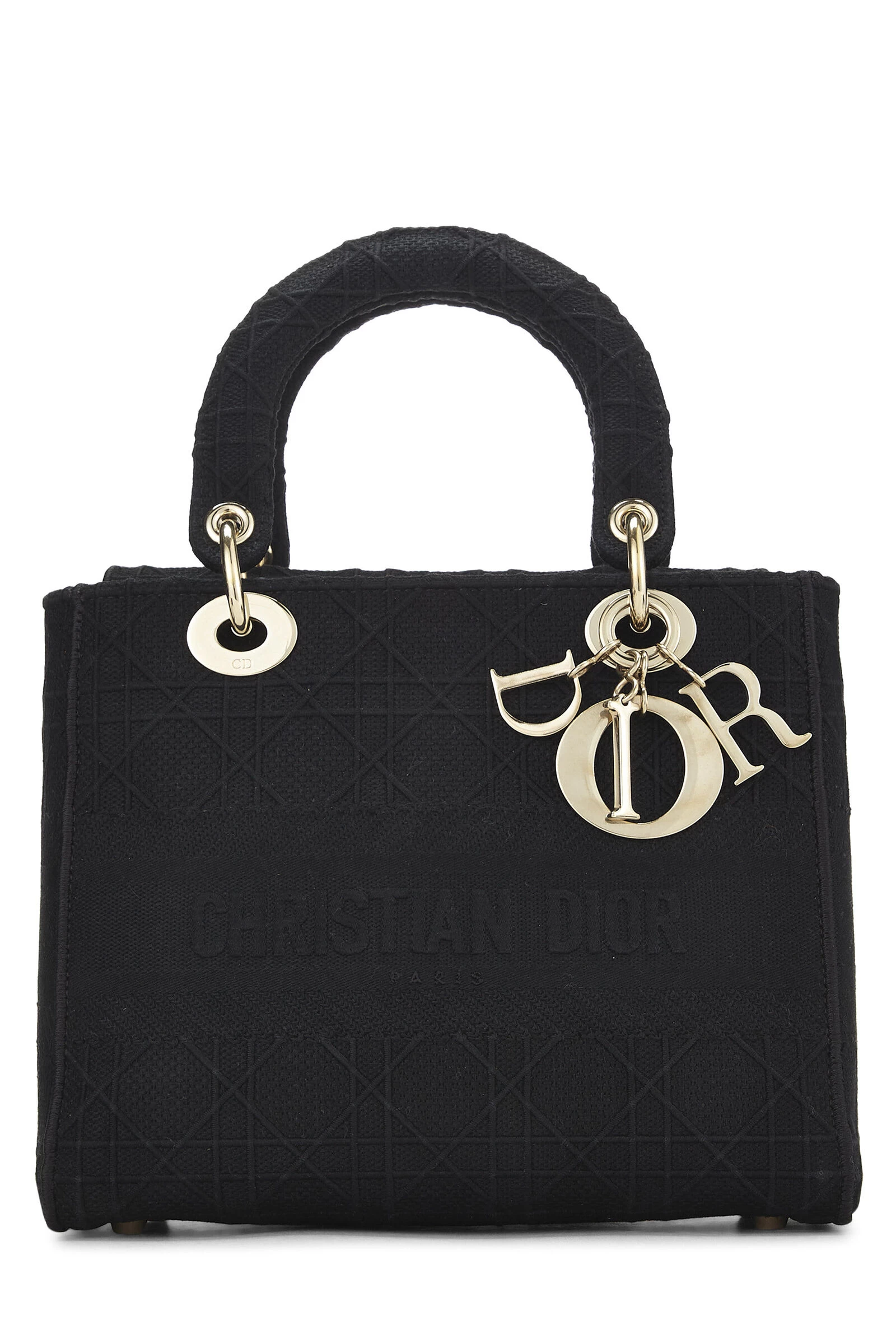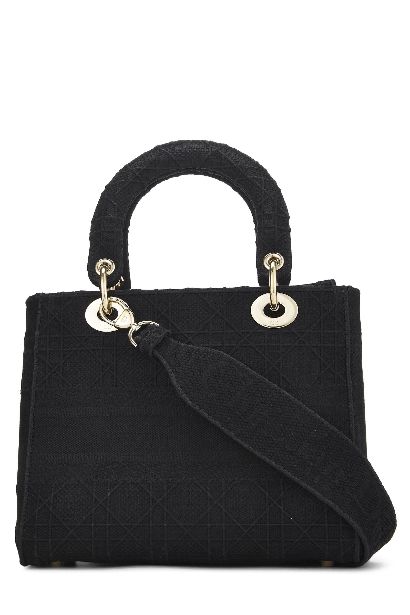 A rare new release from Christian Dior, the medium Lady D-Lite bag is crafted in Cannage embroidered canvas with tonal logo embroidery on front, finished with the signature gold-tone ‘C’ and ‘D’ logo charm hardware. In addition to two structured top handles, the bag includes a wide logo-jacquard canvas shoulder strap that’s detachable for versatile carry.