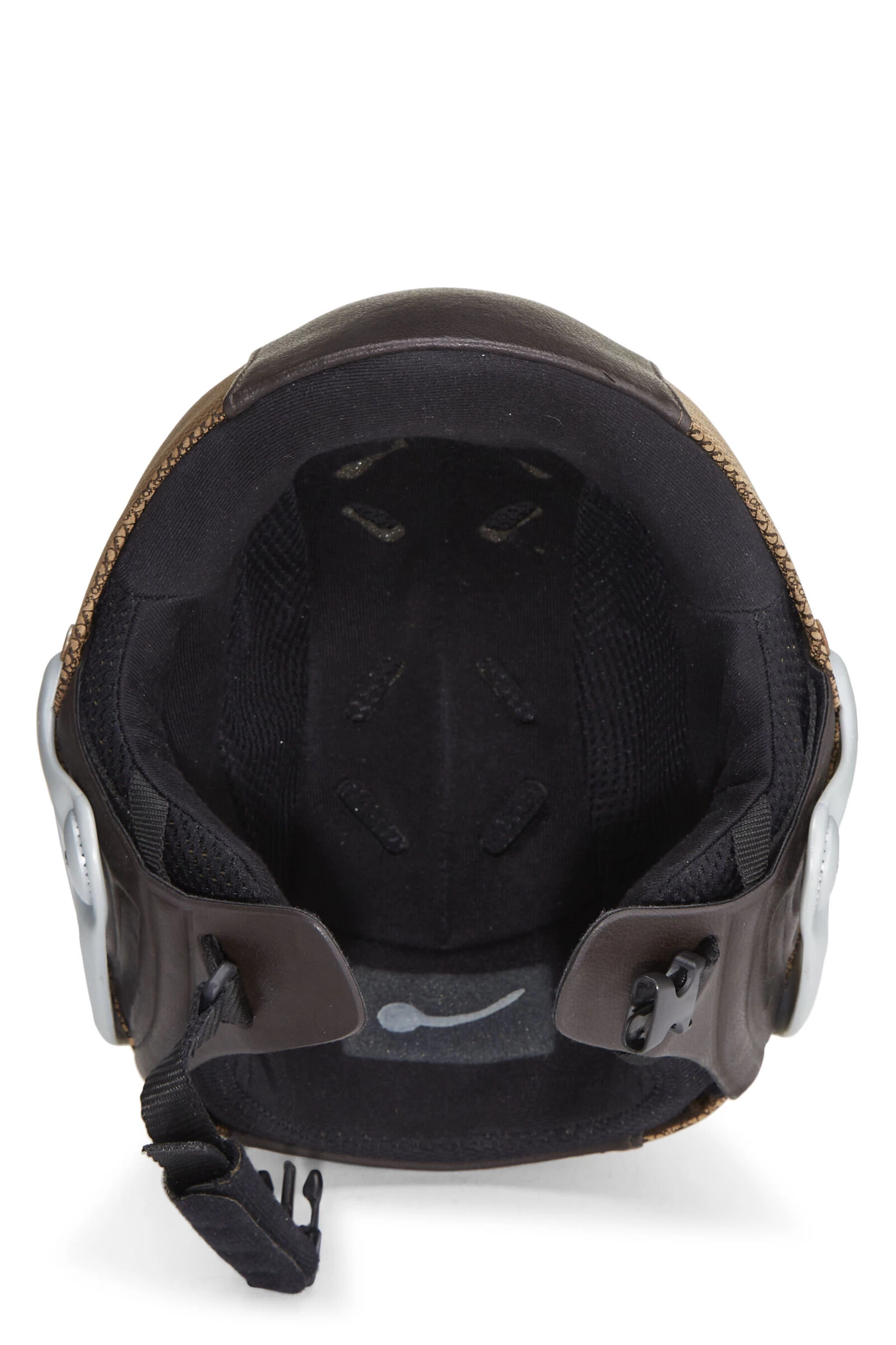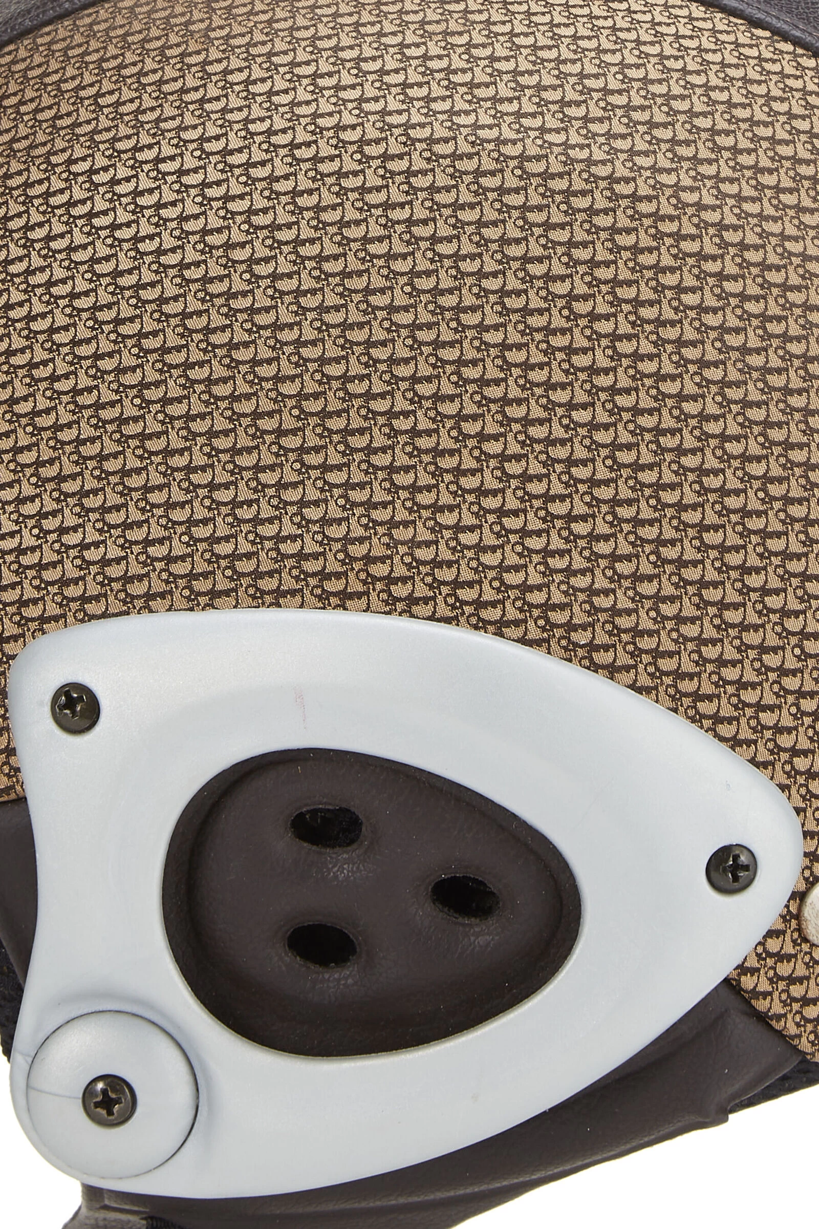 A chic & collectible Dior helmet ready for your next skiing adventure, rendered in a mix of Oblique printed canvas, plastic and leather paneling throughout the exterior.