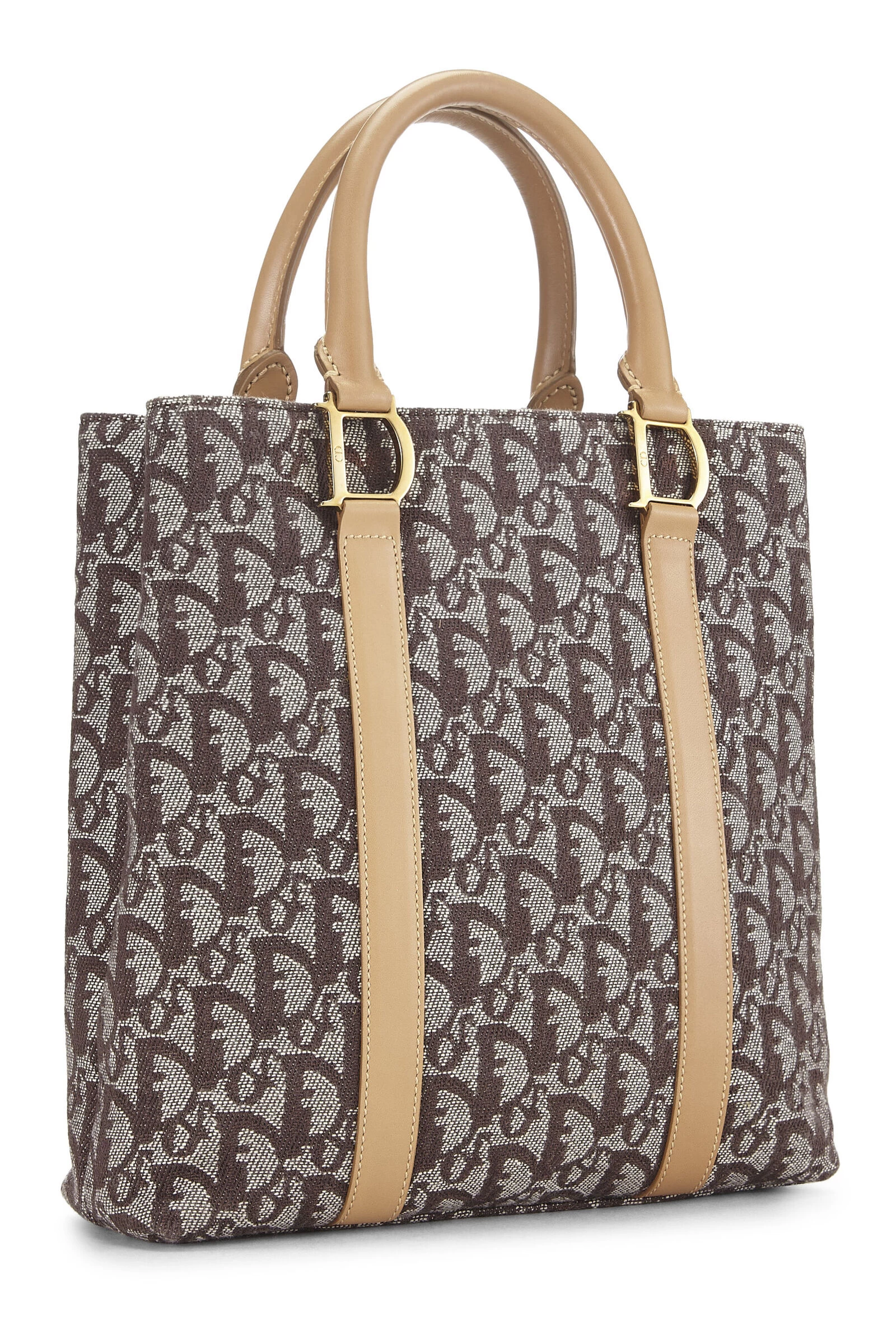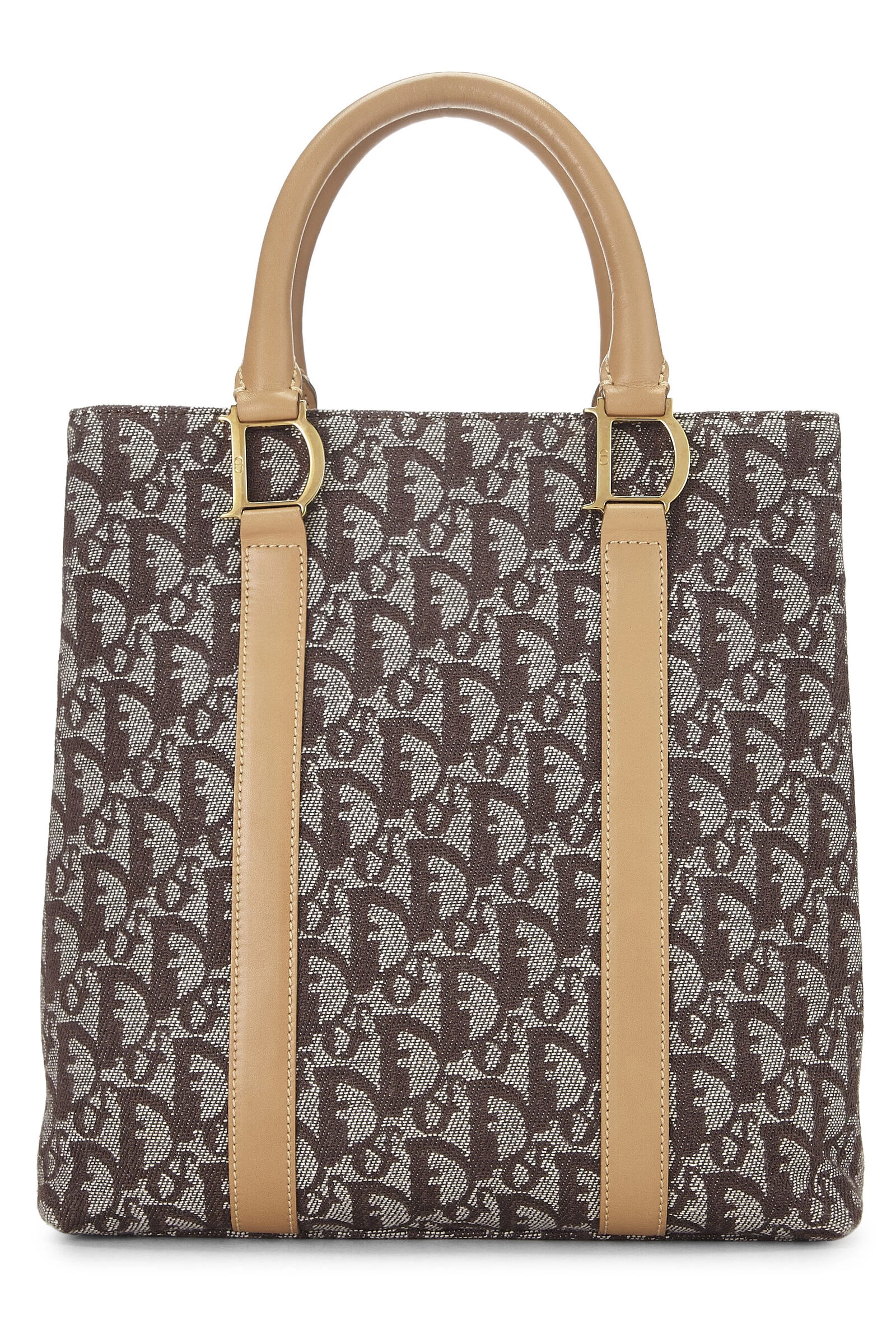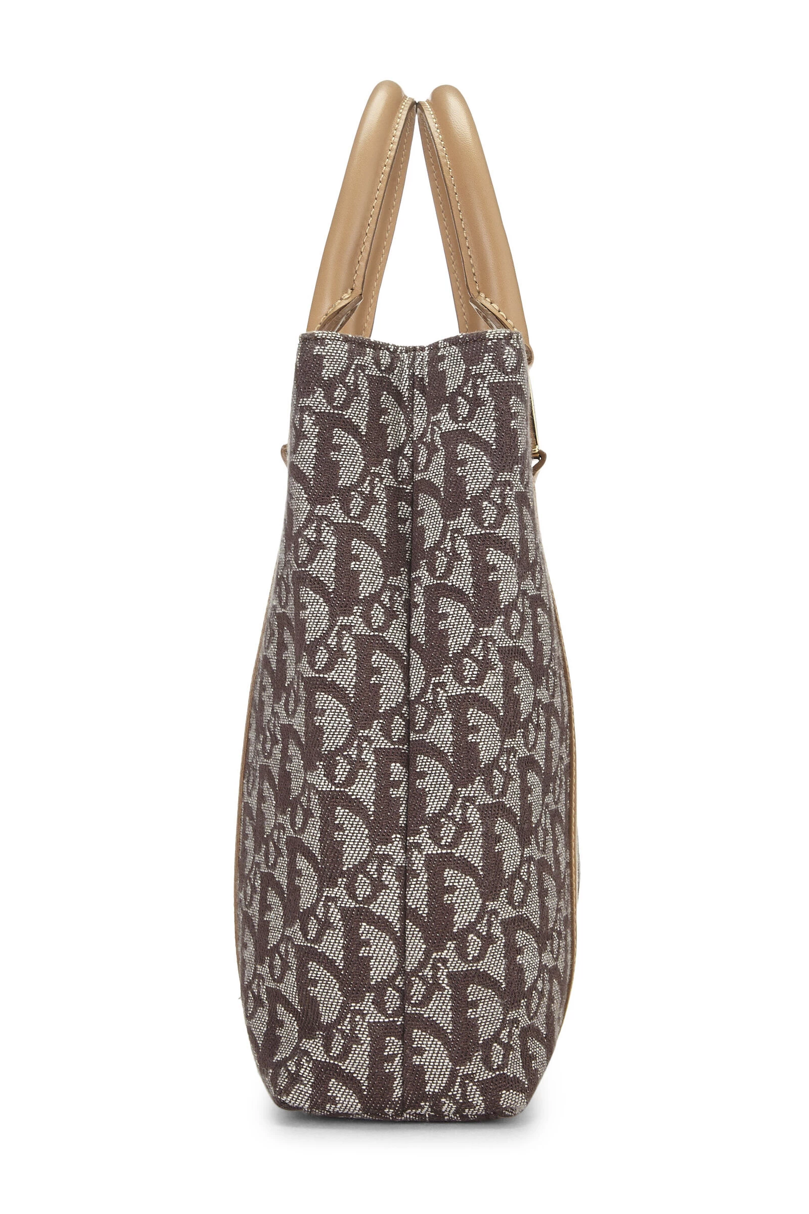 Classic tote bag rendered in Dior’s iconic brown Trotter logo canvas, trimmed with beige leather and accented with gold-tone hardware.