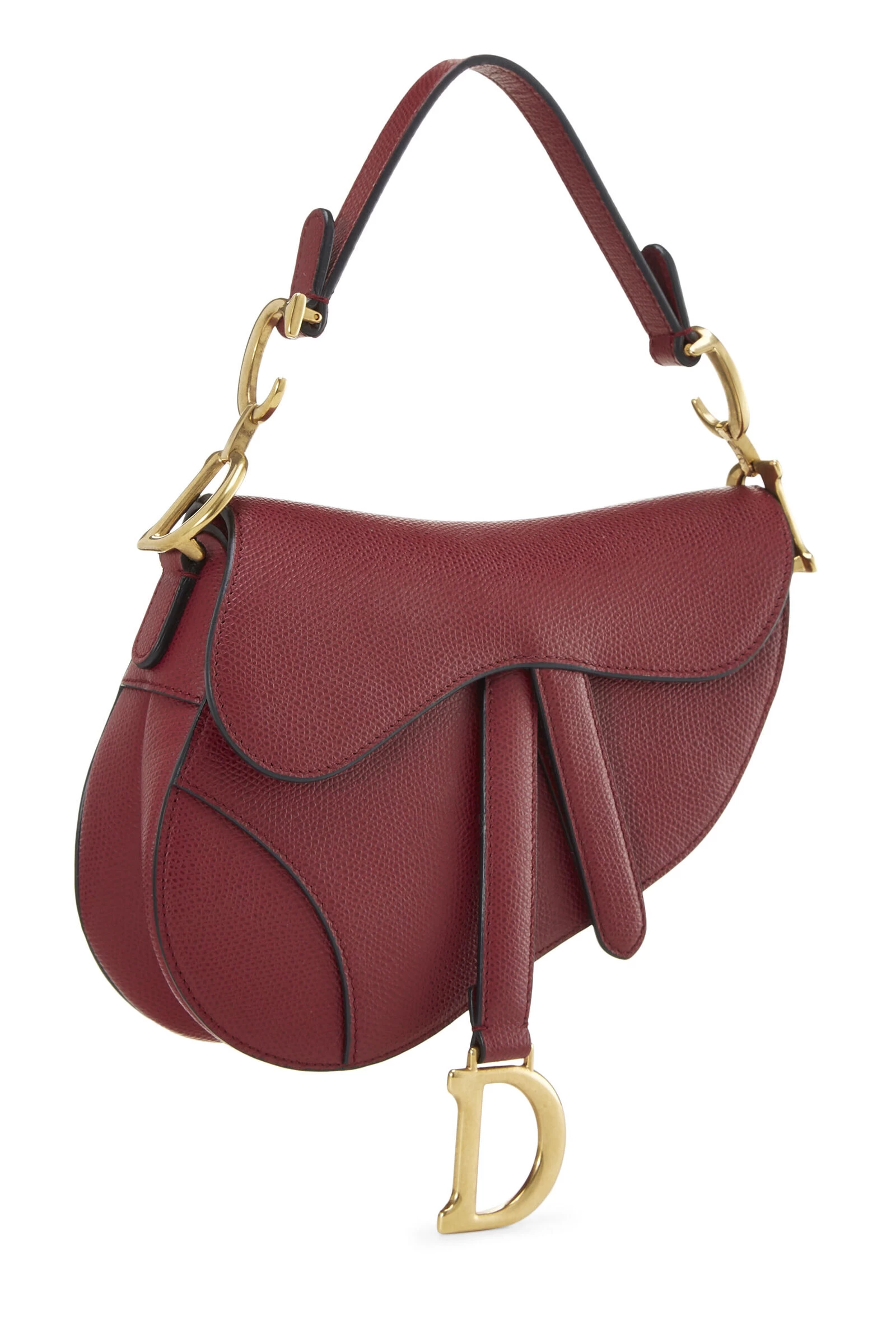 This sleek rendition of Dior’s iconic Saddle bag is crafted in burgundy calfskin leather, accented with gold-tone ‘C’ and ‘D’ hardware, and finished with a hidden magnetic closure.