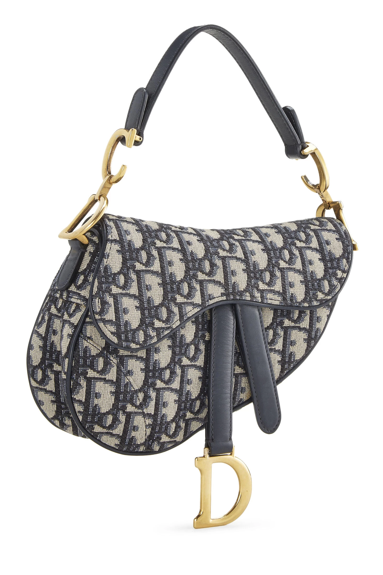 One of the most iconic bags in circulation, the Dior Saddle bag is timeless, chic and the perfect bag to glam up any outfit. Featured here in the mini size, the bag is crafted in Dior Oblique canvas, trimmed with tonal navy leather and finished with ‘CD’ logo gold-tone hardware.