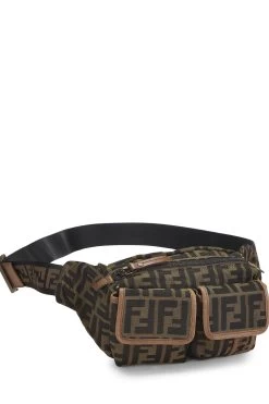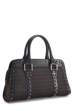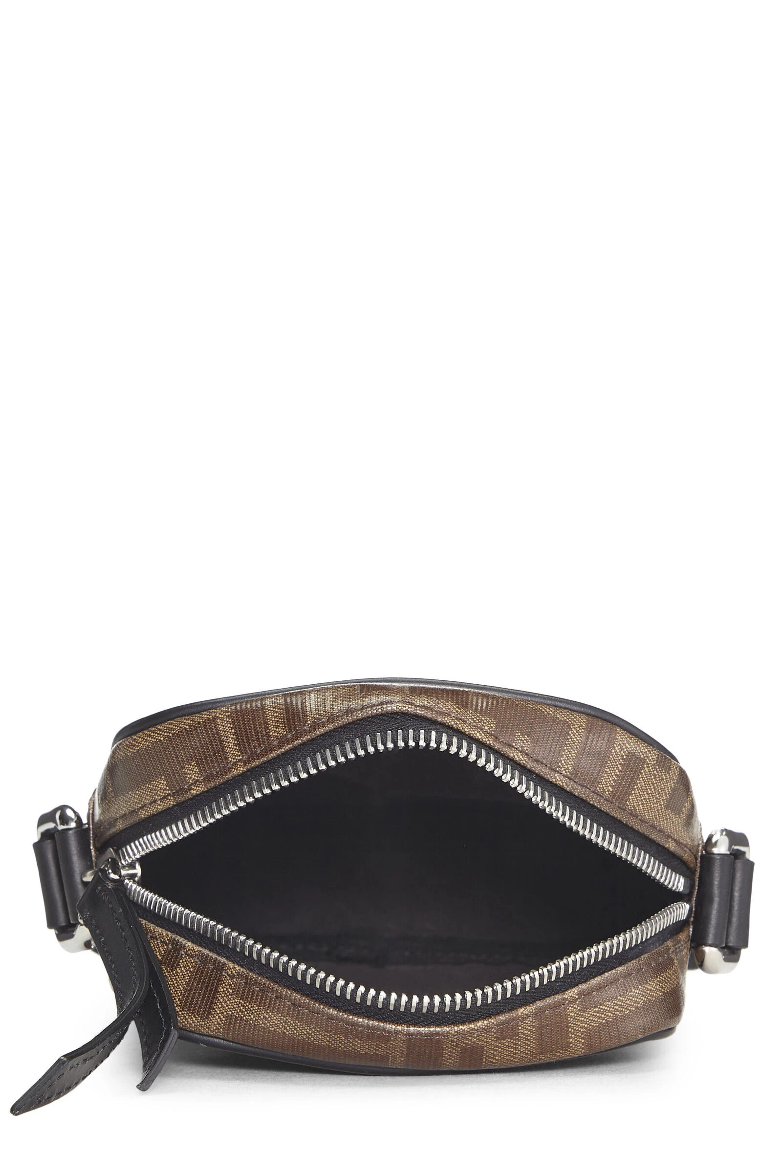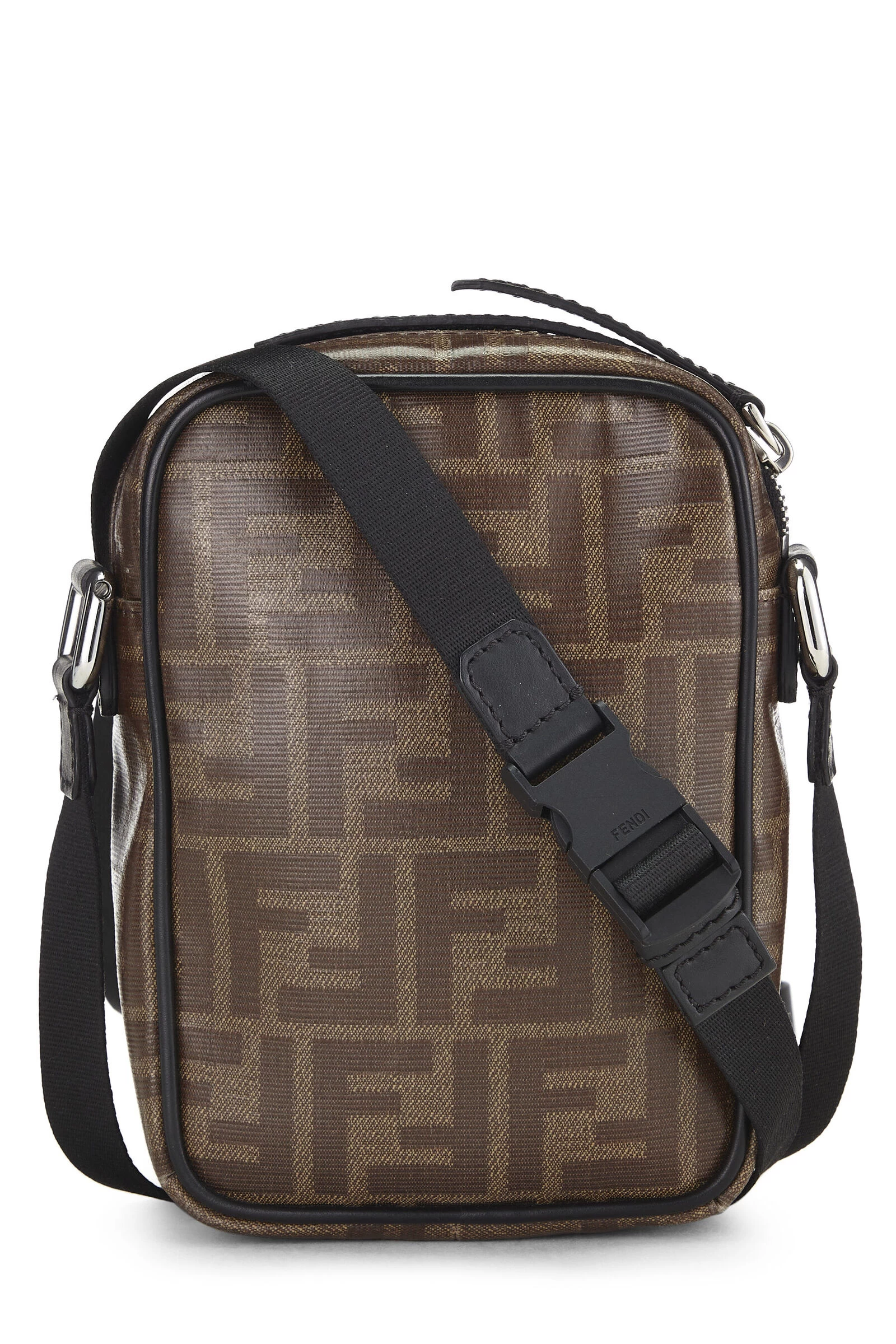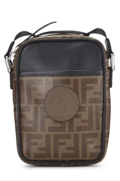 Classic Fendi crossbody bag, crafted in brown Zucca coated canvas, with smooth black leather trim and finished with silver-tone metal hardware.