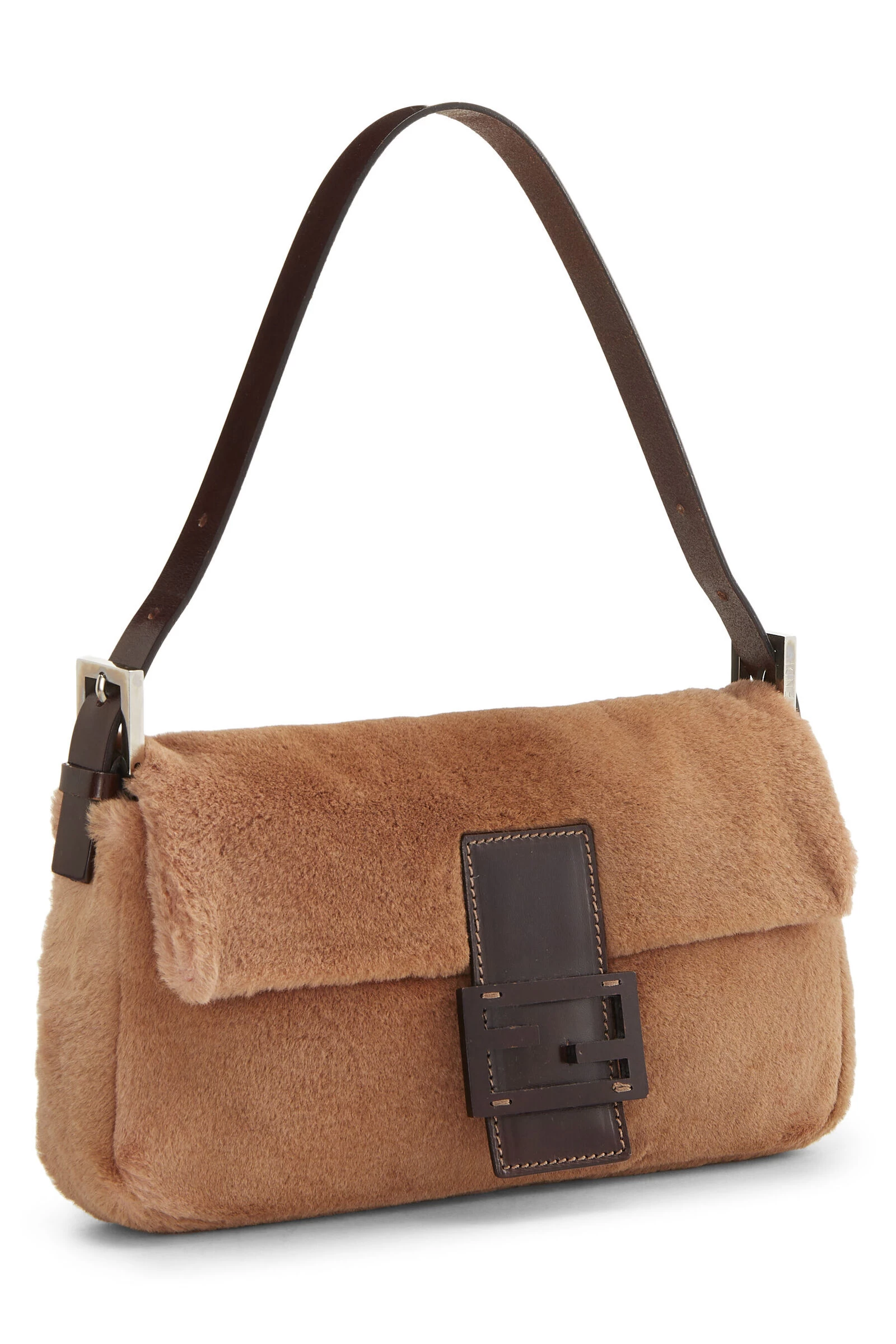 Perfectly on-trend, this Fendi Baguette is crafted in brown fur with dark brown leather trim, finished with silver-tone hardware.
