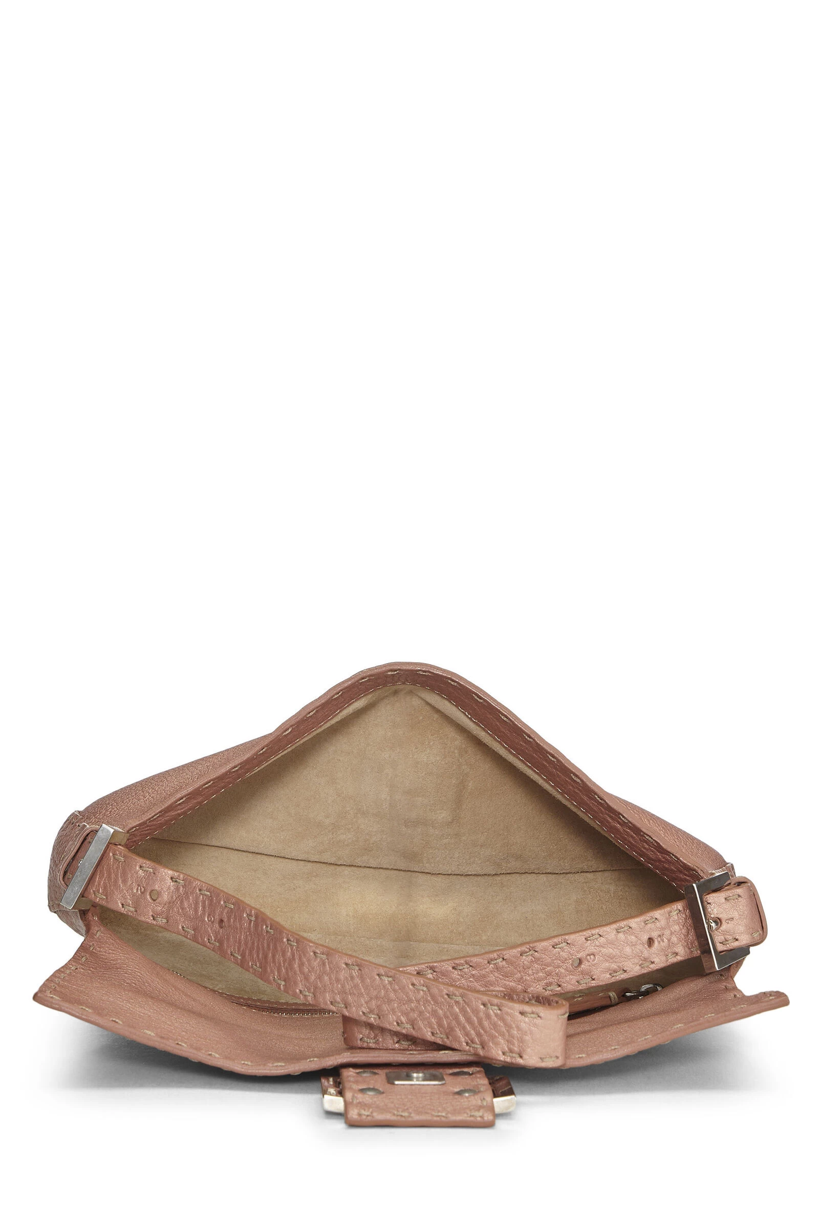 Classic Fendi Selleria Baguette rendered in pink grained leather with tonal topstitching and silver-tone logo hardware.