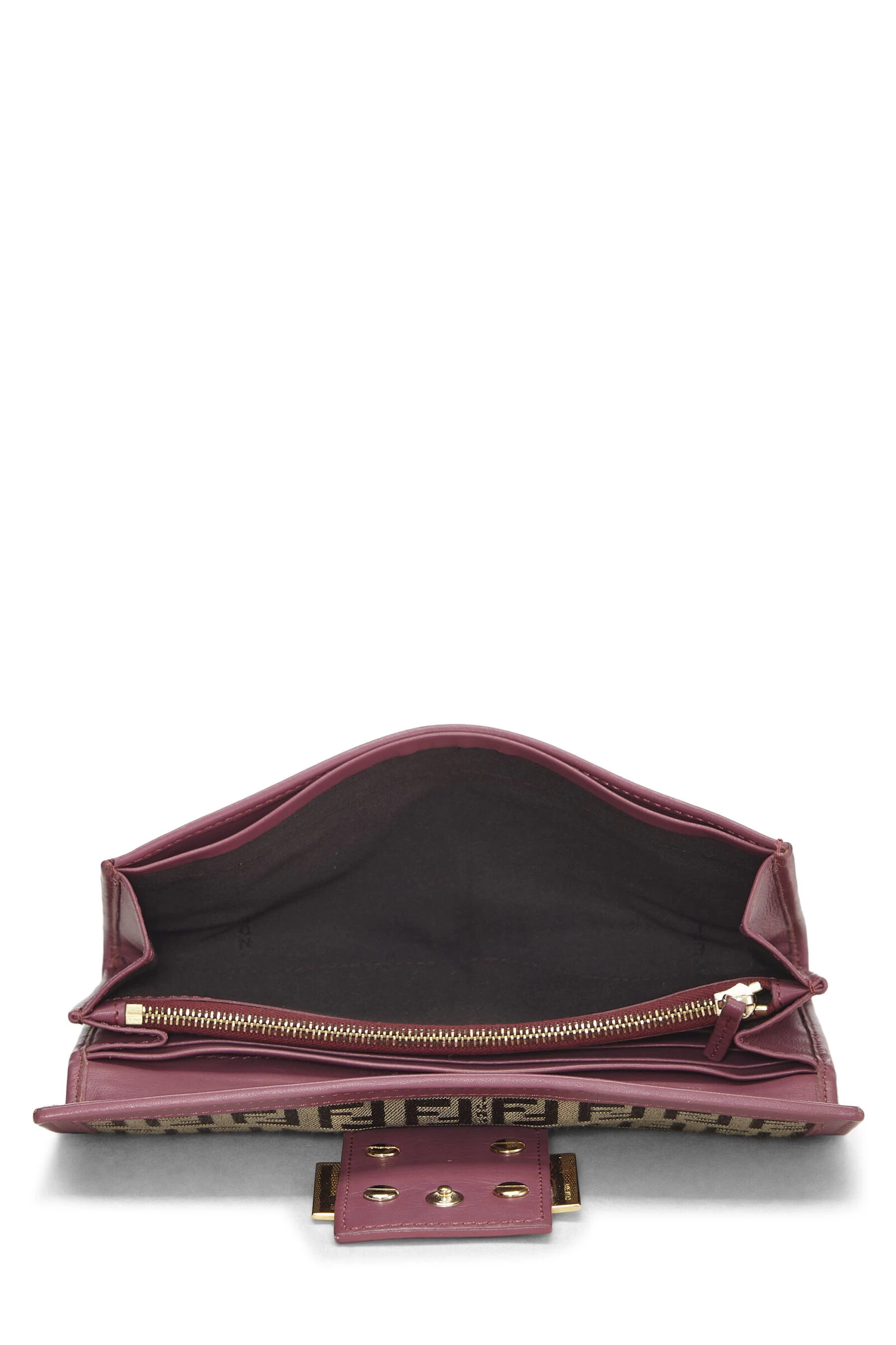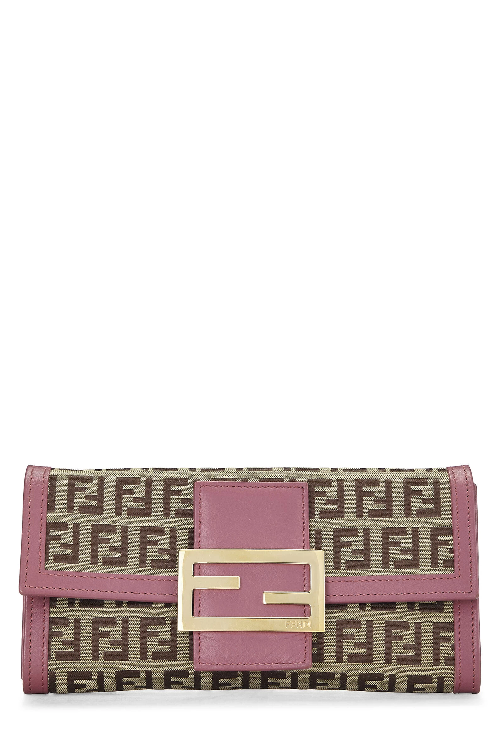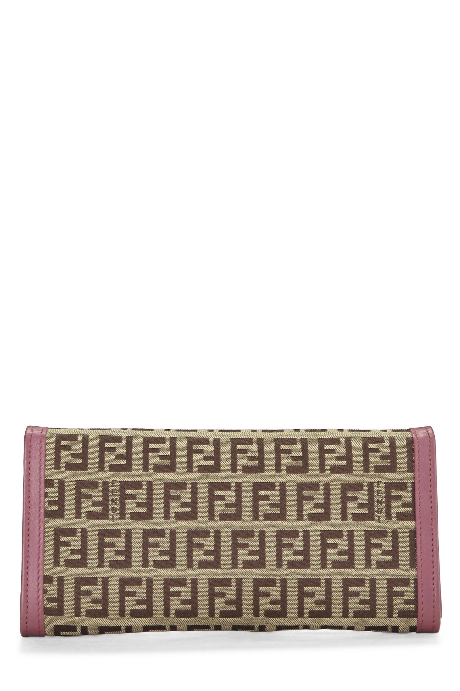 Sleek long wallet from Fendi crafted in the iconic Zucchino canvas, featuring pink leather details and finished with gold-tone logo hardware.