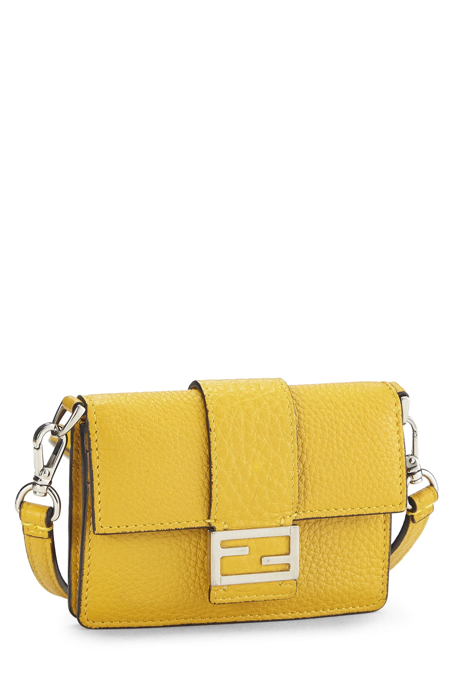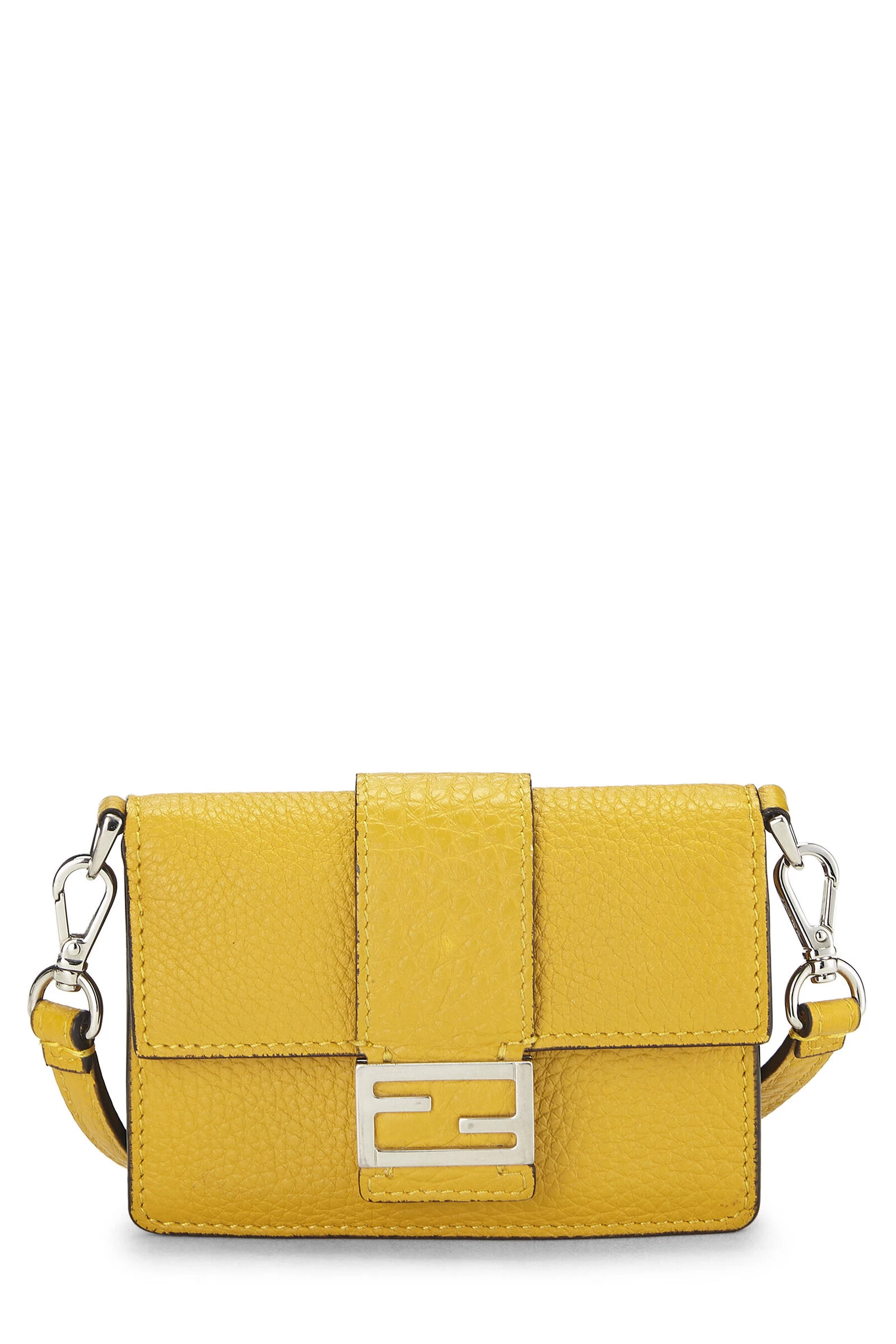The classic Fendi Baguette bag rendered in grained yellow calfskin leather in the micro size. This ‘flat’ version of the iconic bag includes a detachable tonal leather shoulder strap and is finished with silver-tone logo hardware.