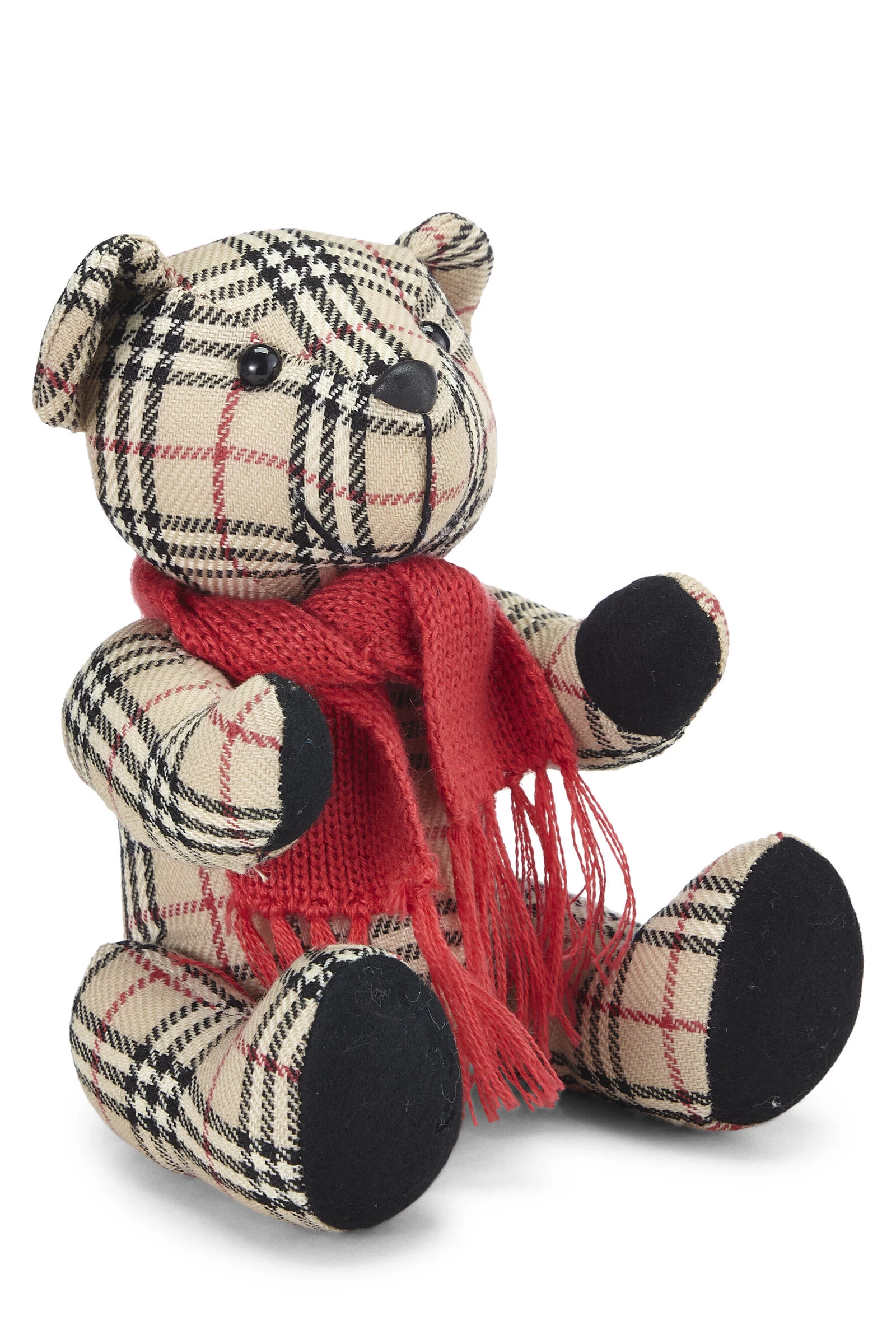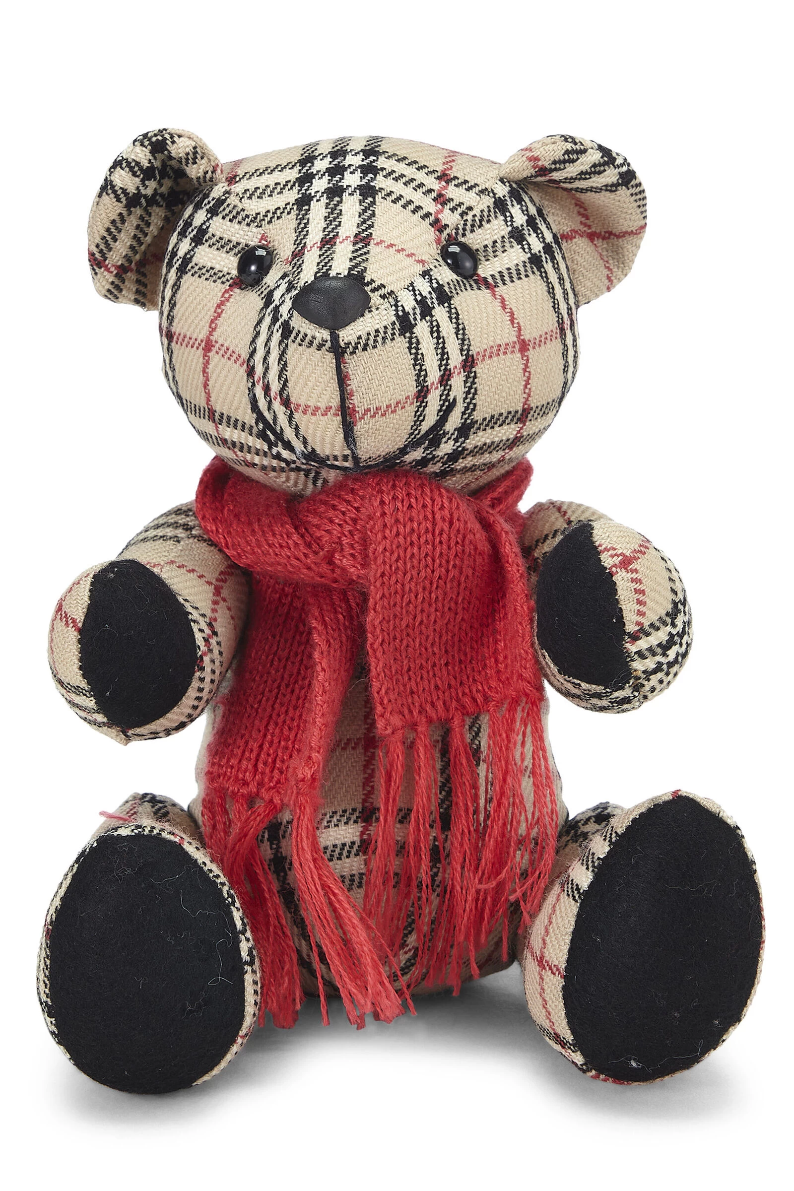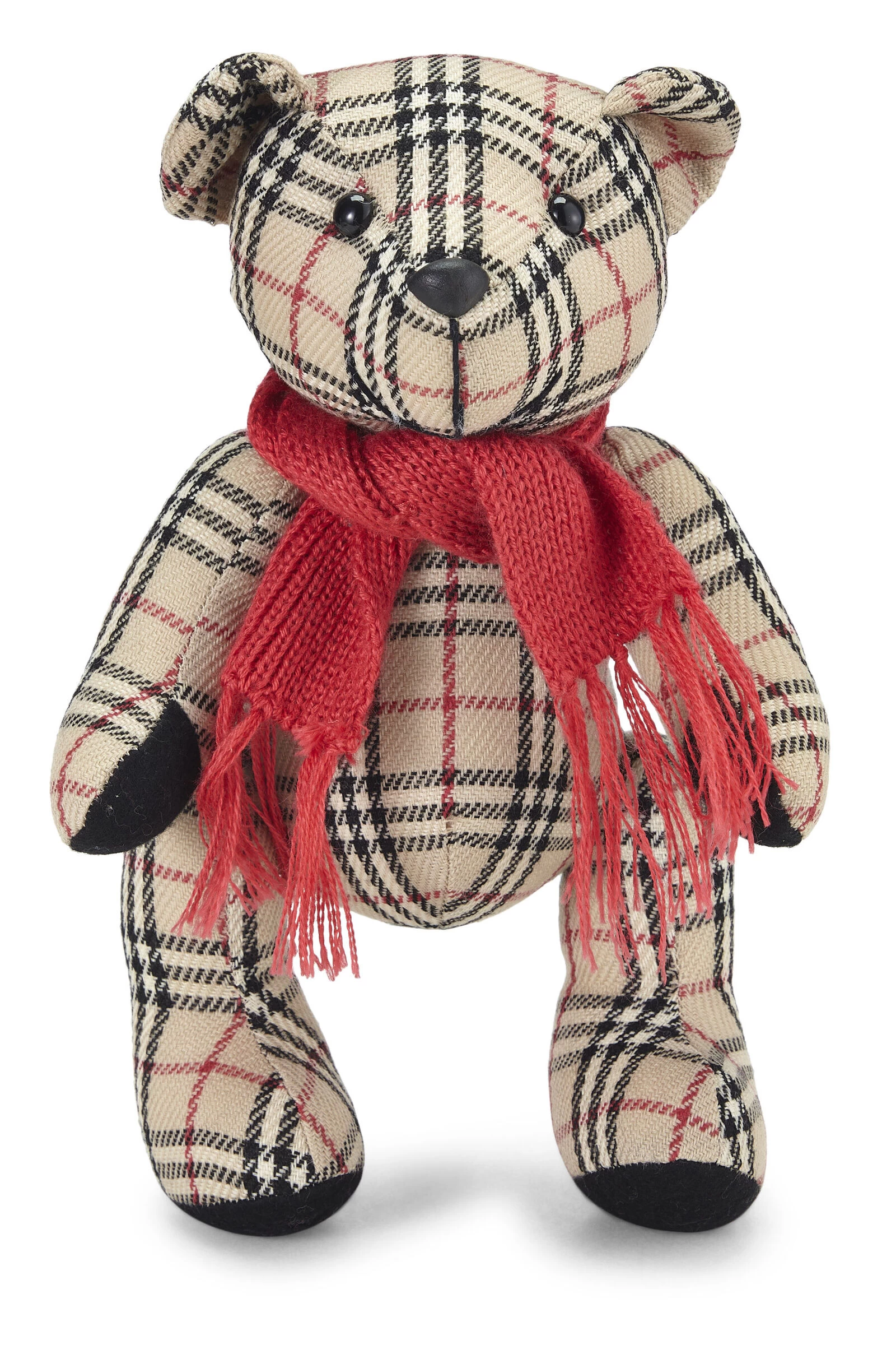 Sweet and chic teddy bear rendered in Burberry’s signature Nova Check, featuring a red scarf and black felt accent.