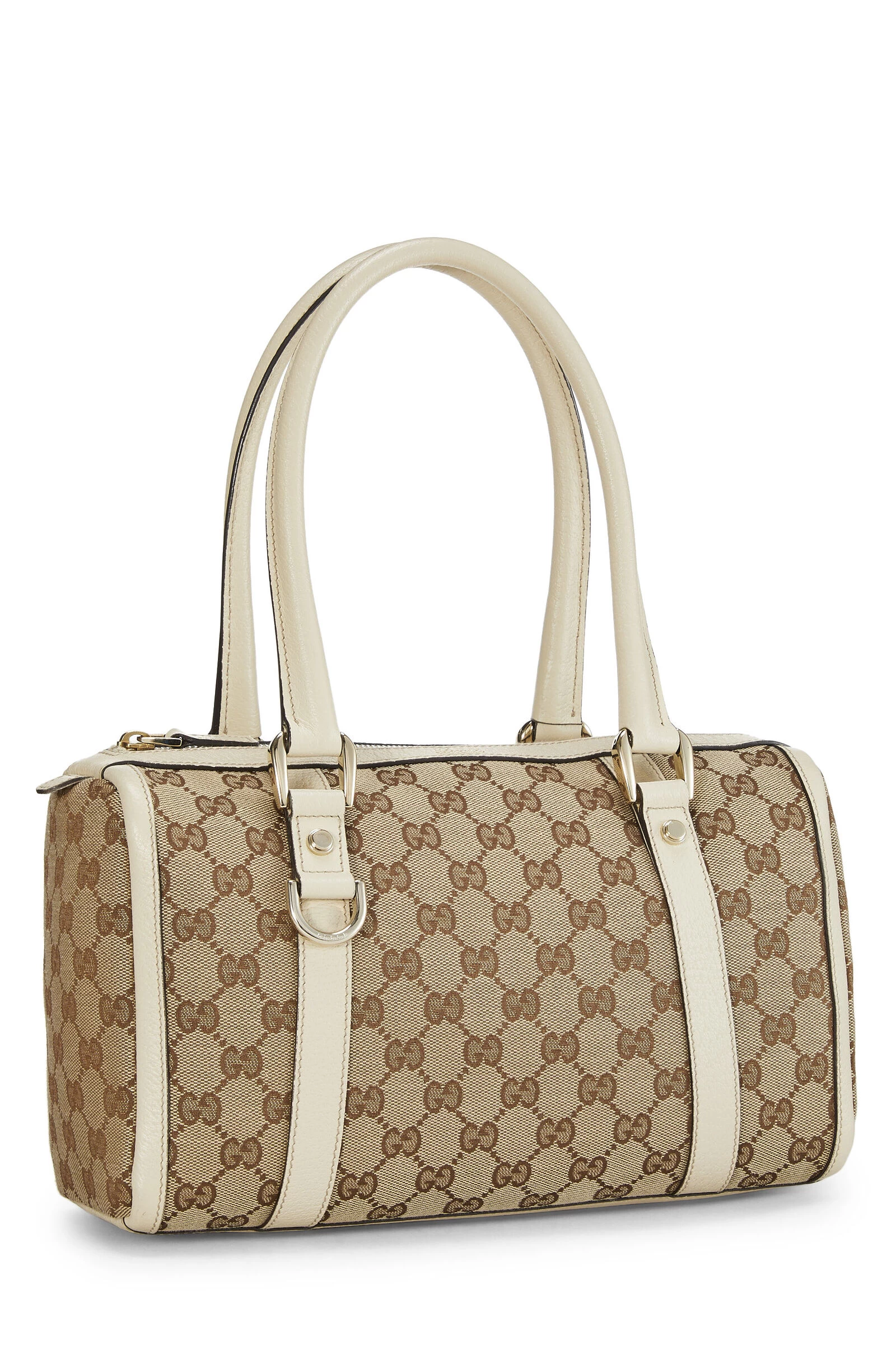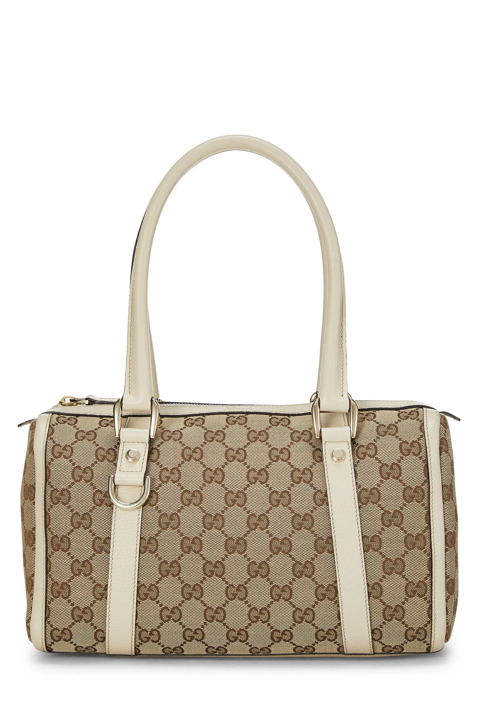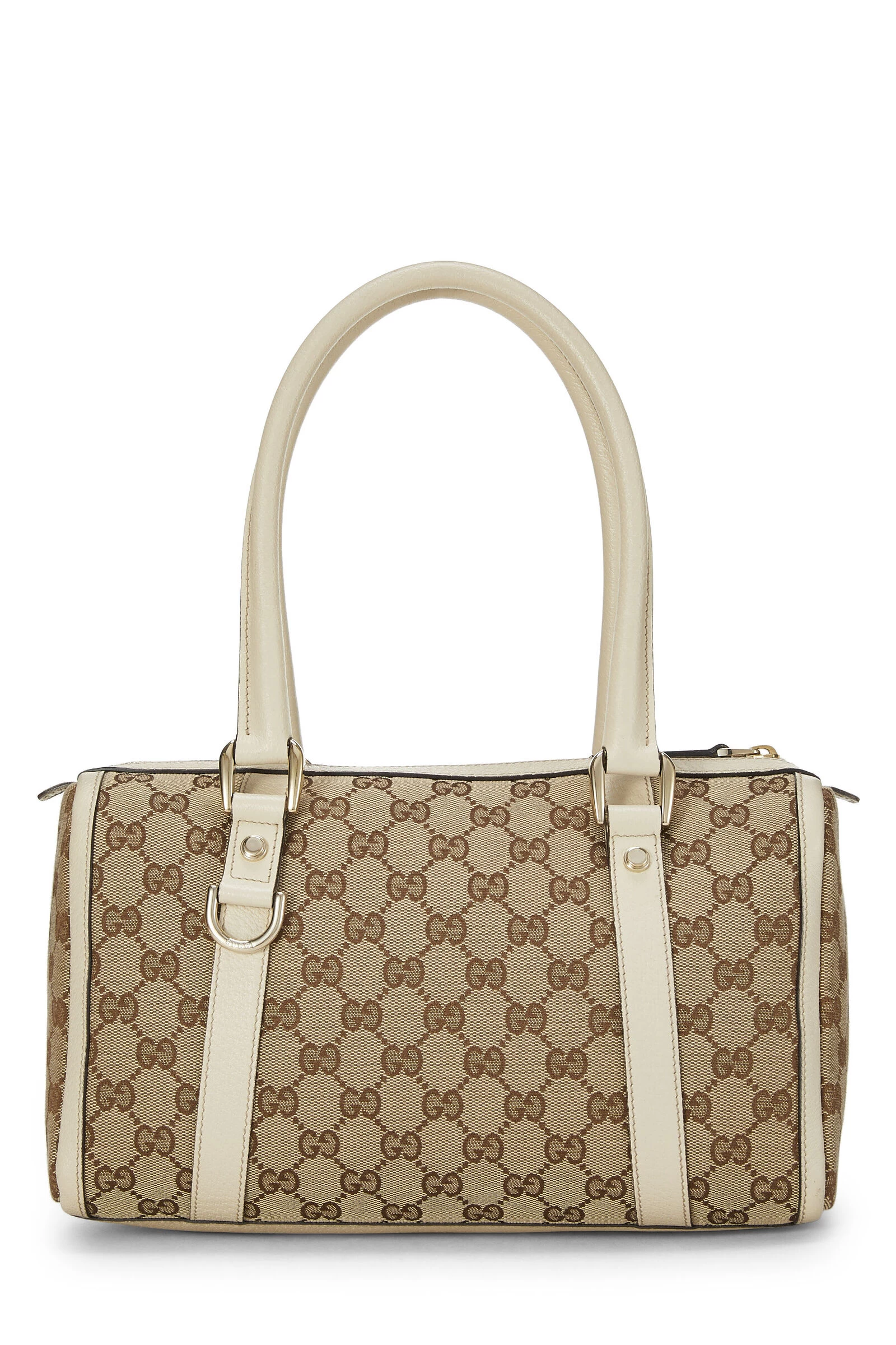 This Gucci Abbey Boston handbag is cut from the label’s Original GG Canvas with beige leather trim at its borders. Its rather petite frame makes it perfect for sitting on your arm as you go about your daily to-dos. It’s subtly accented with a foil-stamped retro logo and coordinating gold-tone D-ring hardware throughout.