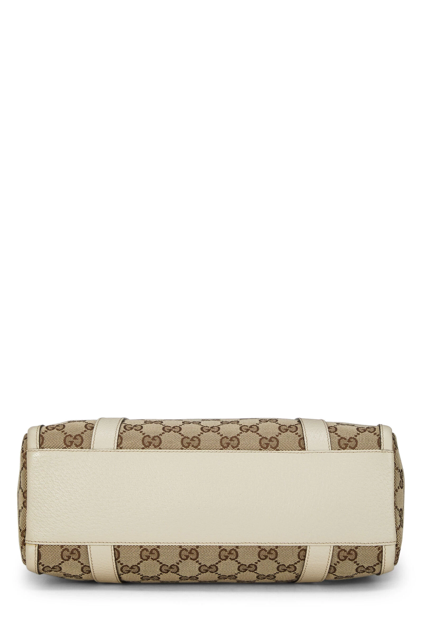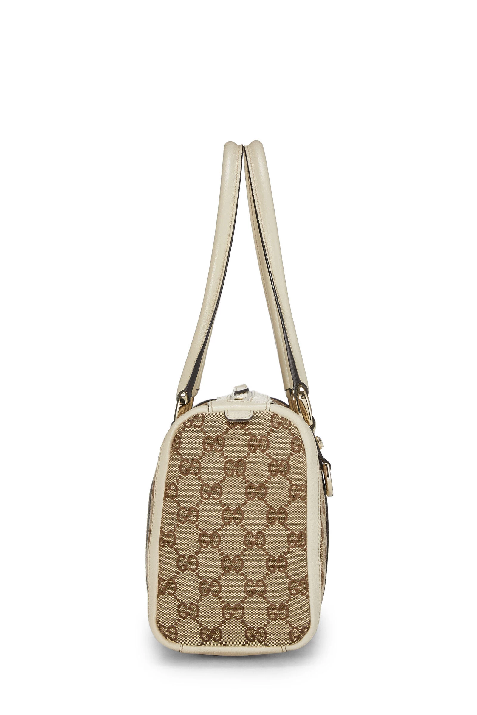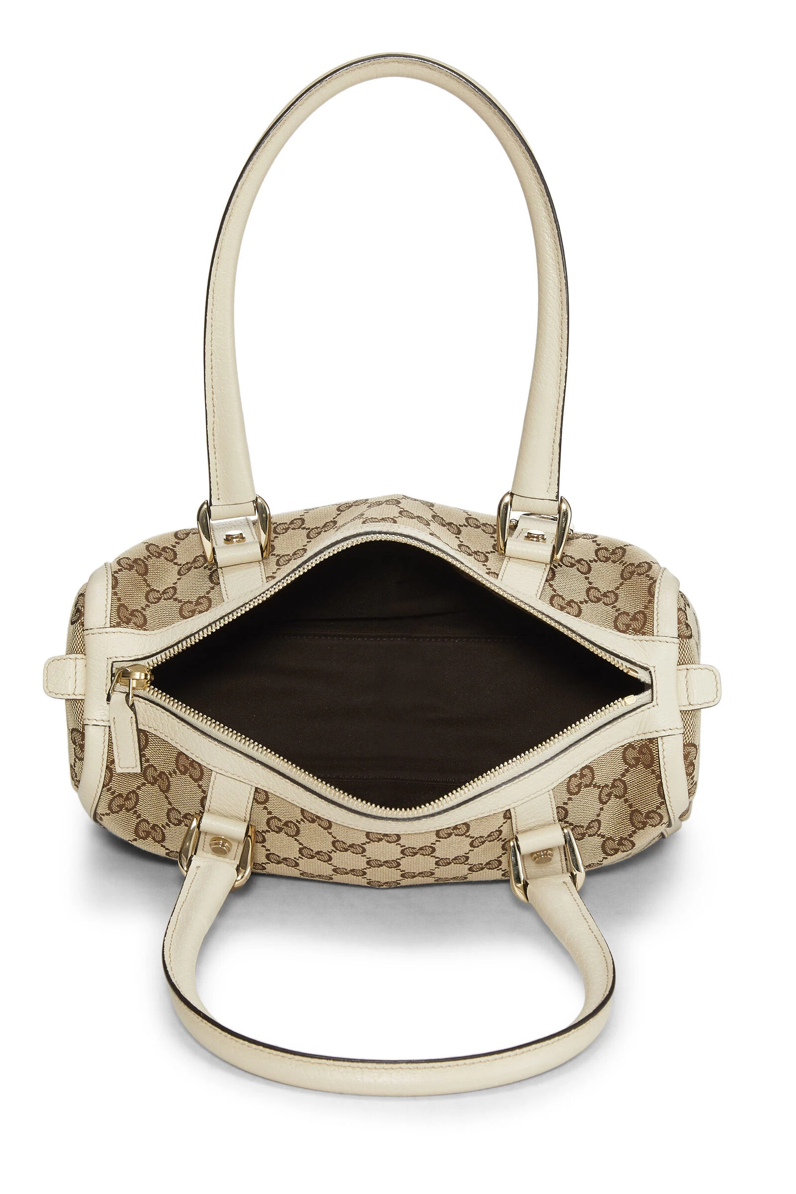 This Gucci Abbey Boston handbag is cut from the label’s Original GG Canvas with beige leather trim at its borders. Its rather petite frame makes it perfect for sitting on your arm as you go about your daily to-dos. It’s subtly accented with a foil-stamped retro logo and coordinating gold-tone D-ring hardware throughout.