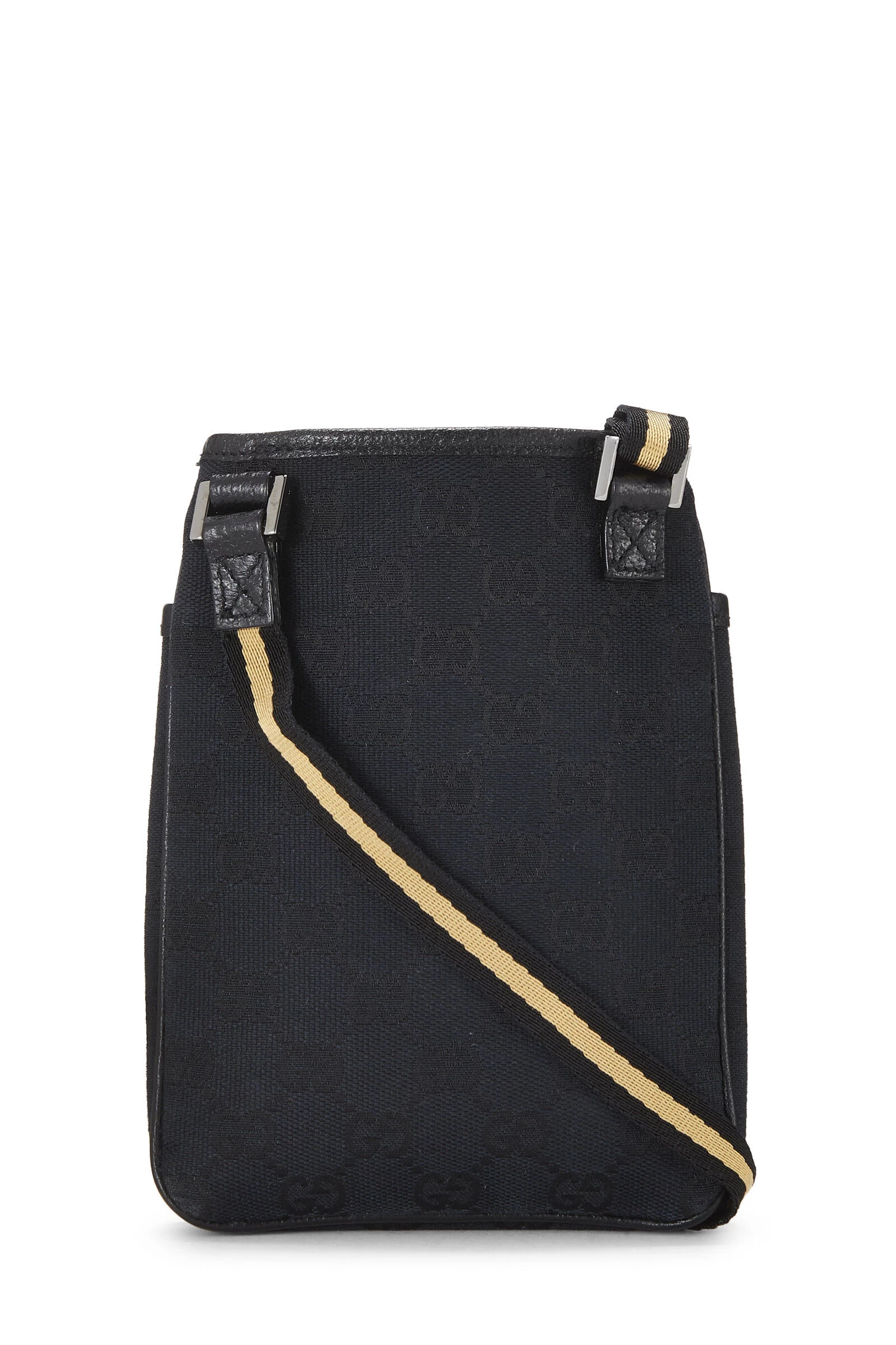 Mini Gucci messenger bag rendered in the brand’s logo-printed GG canvas, accented with contrast tonal black leather trim and an iconic Web shoulder strap.