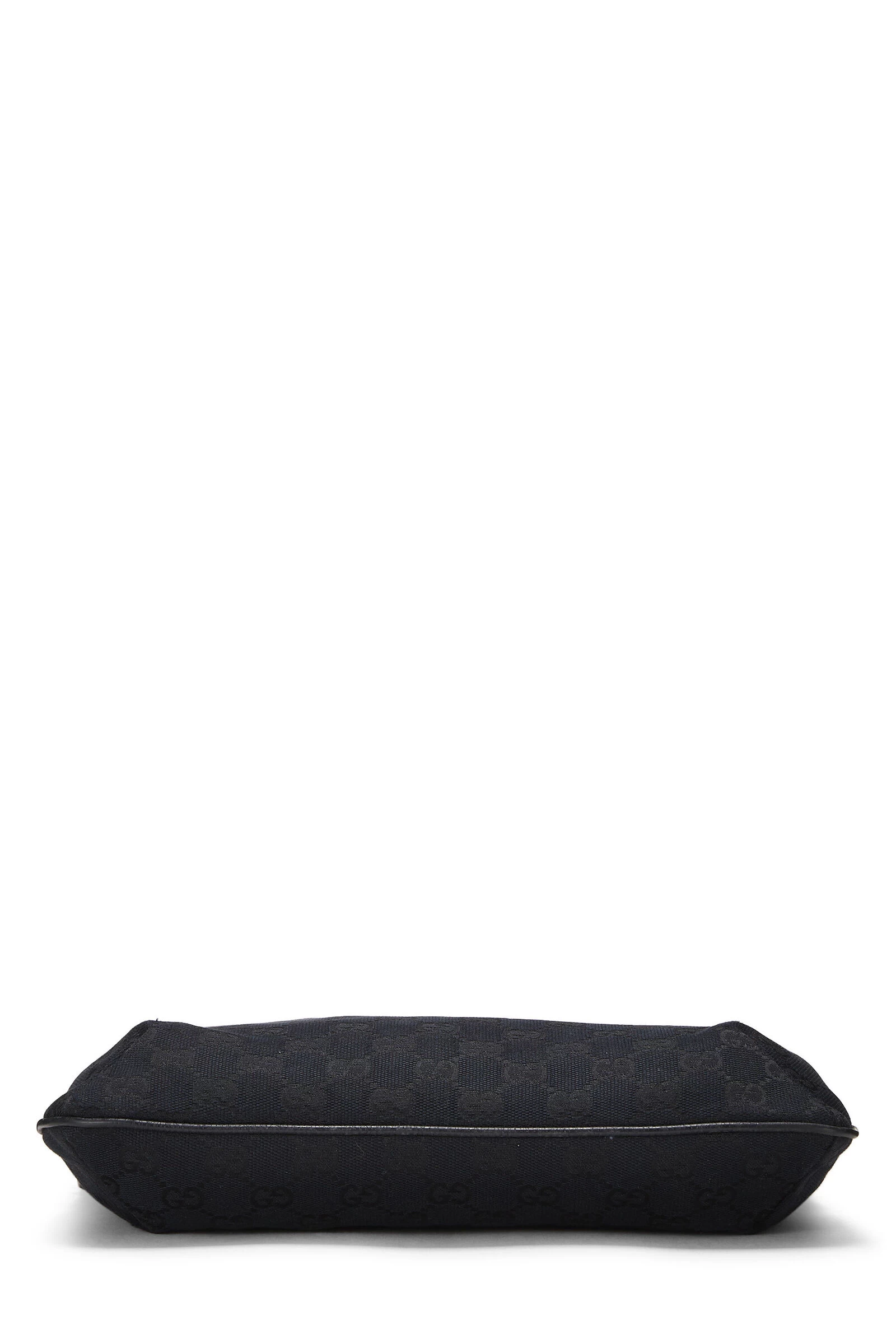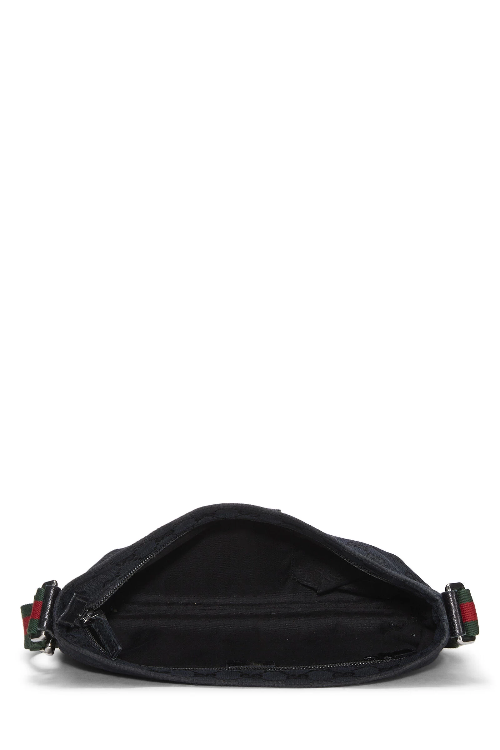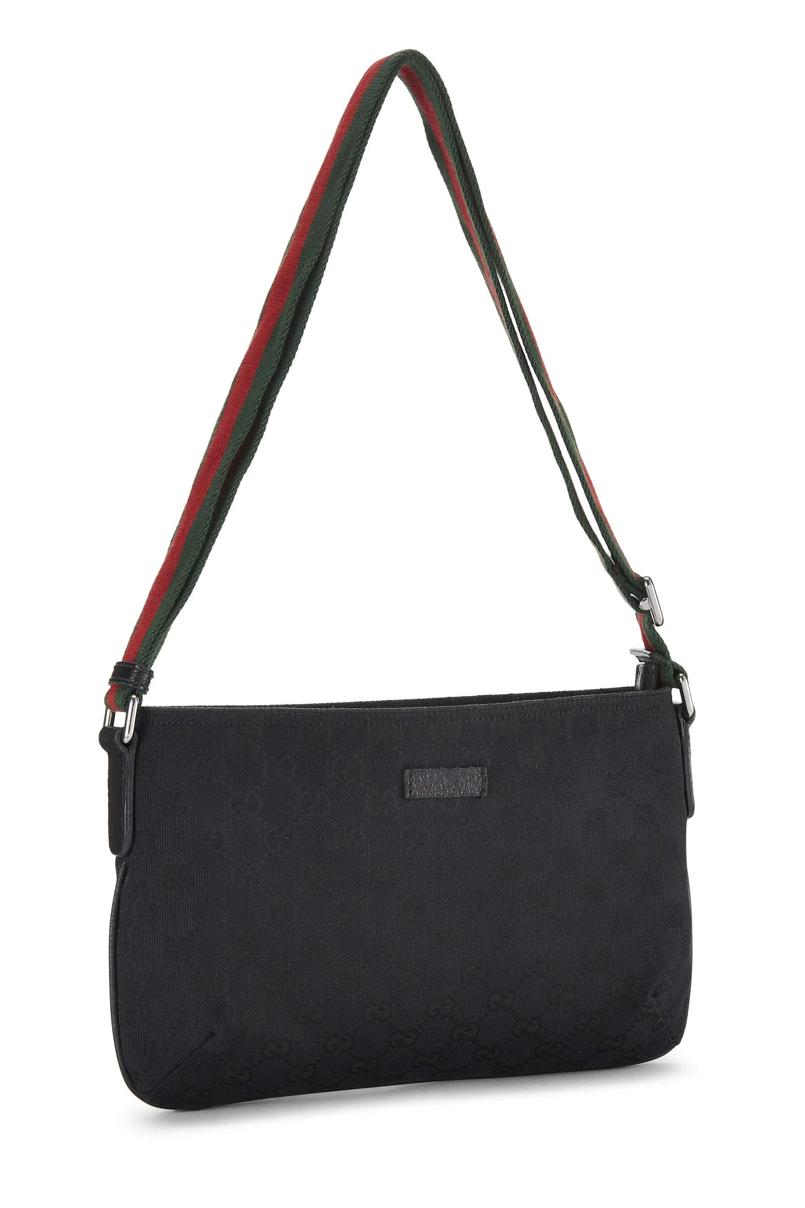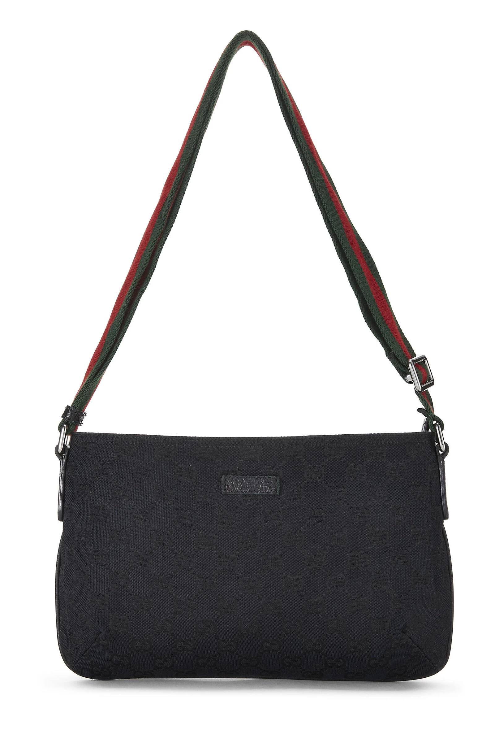 Gucci messenger rendered in black Original GG canvas, featuring grained black leather trim and finished with signature red and green striped Web shoulder strap.