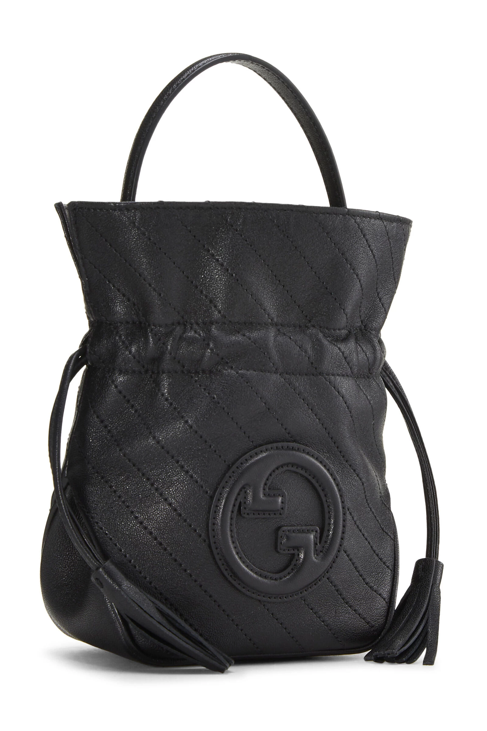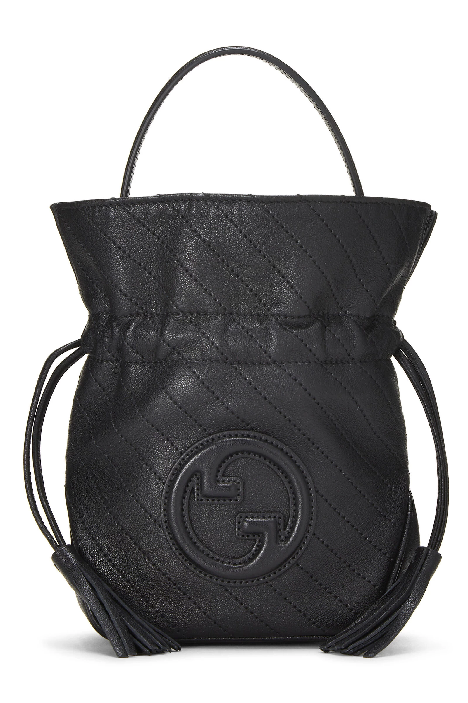 Super chic and vintage-inspired silhouette from Gucci, the mini Blondie bucket bag is the perfect on-the-go accessory. It’s rendered in grained black leather, accented with silver-tone hardware and a large interlocking ‘GG’ cutout affixed to the front. Includes two carrying options: a leather top handle and a chain link crossbody strap.
