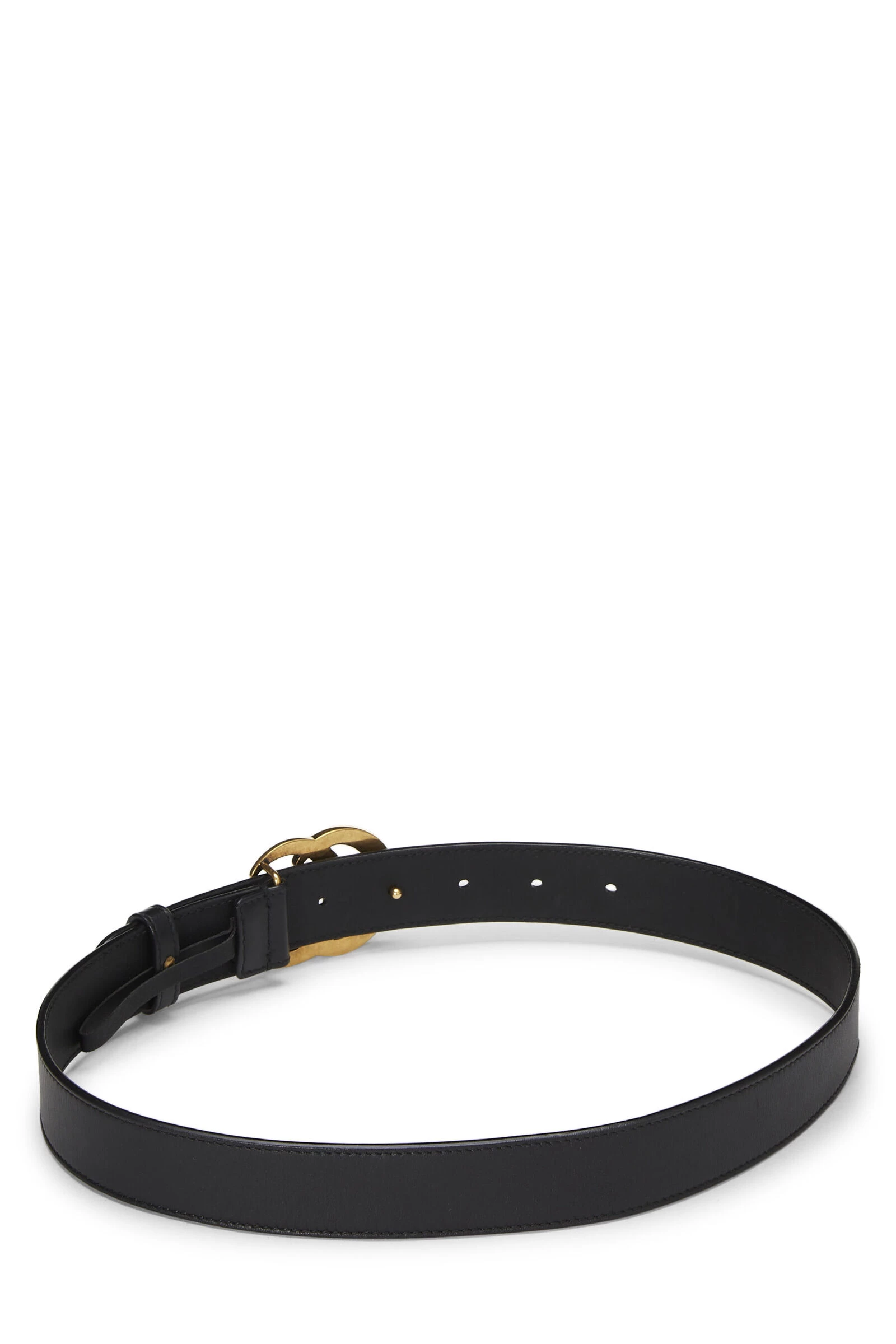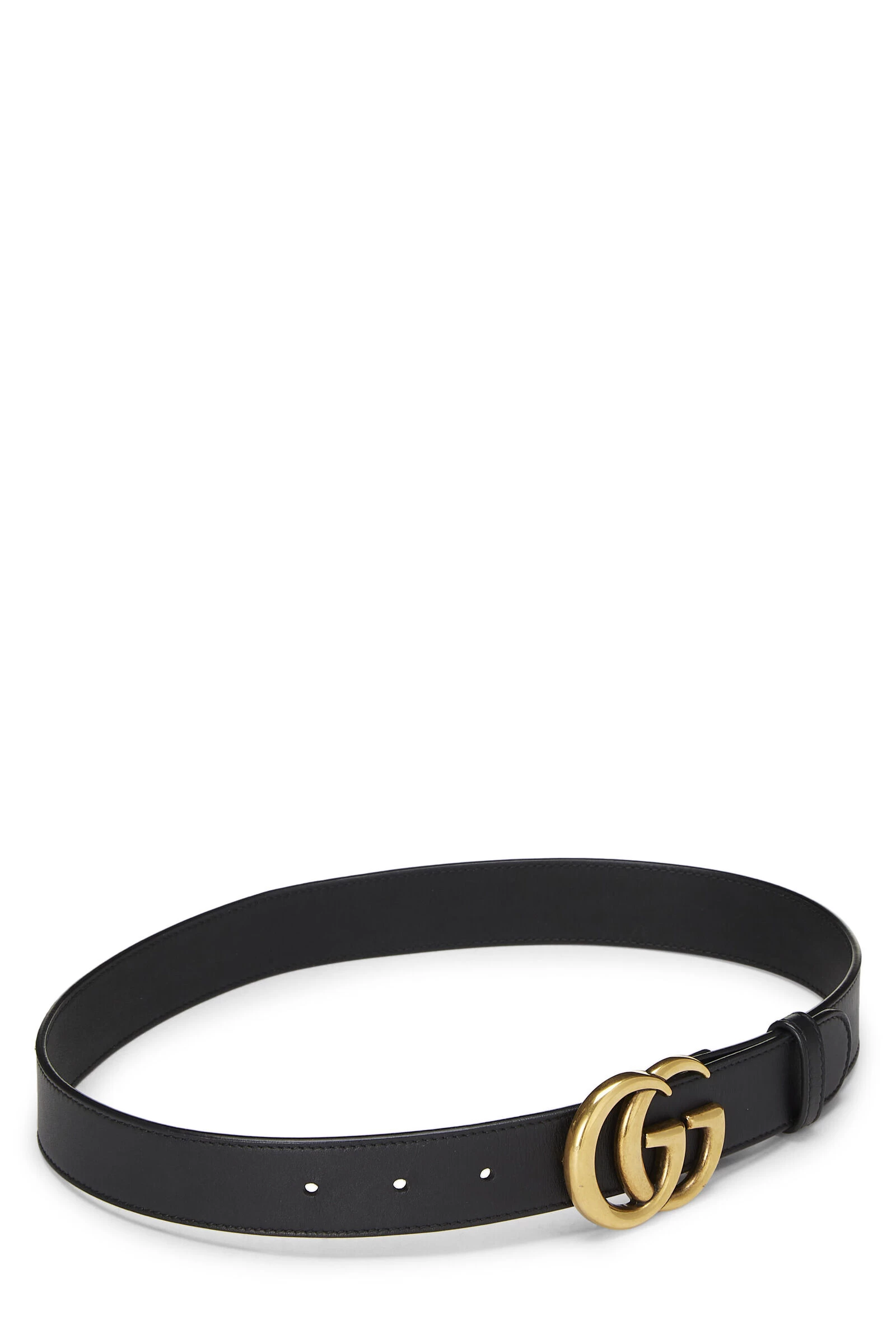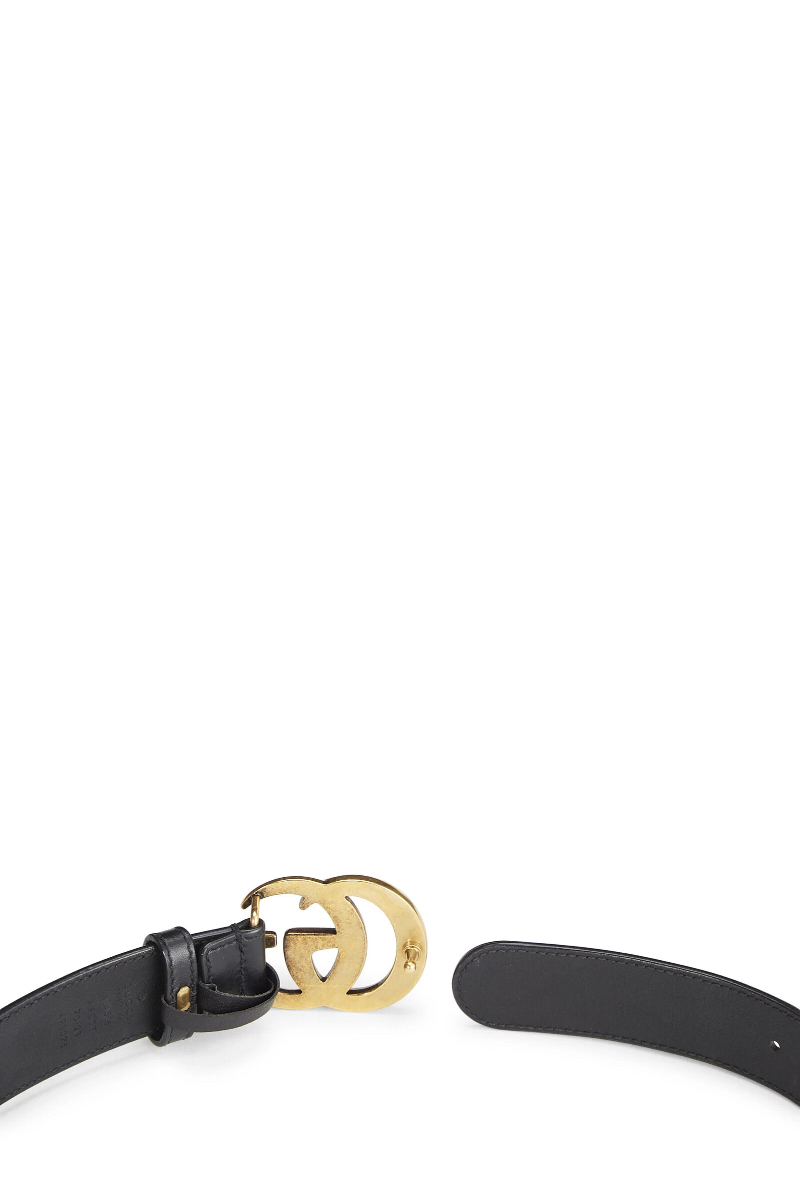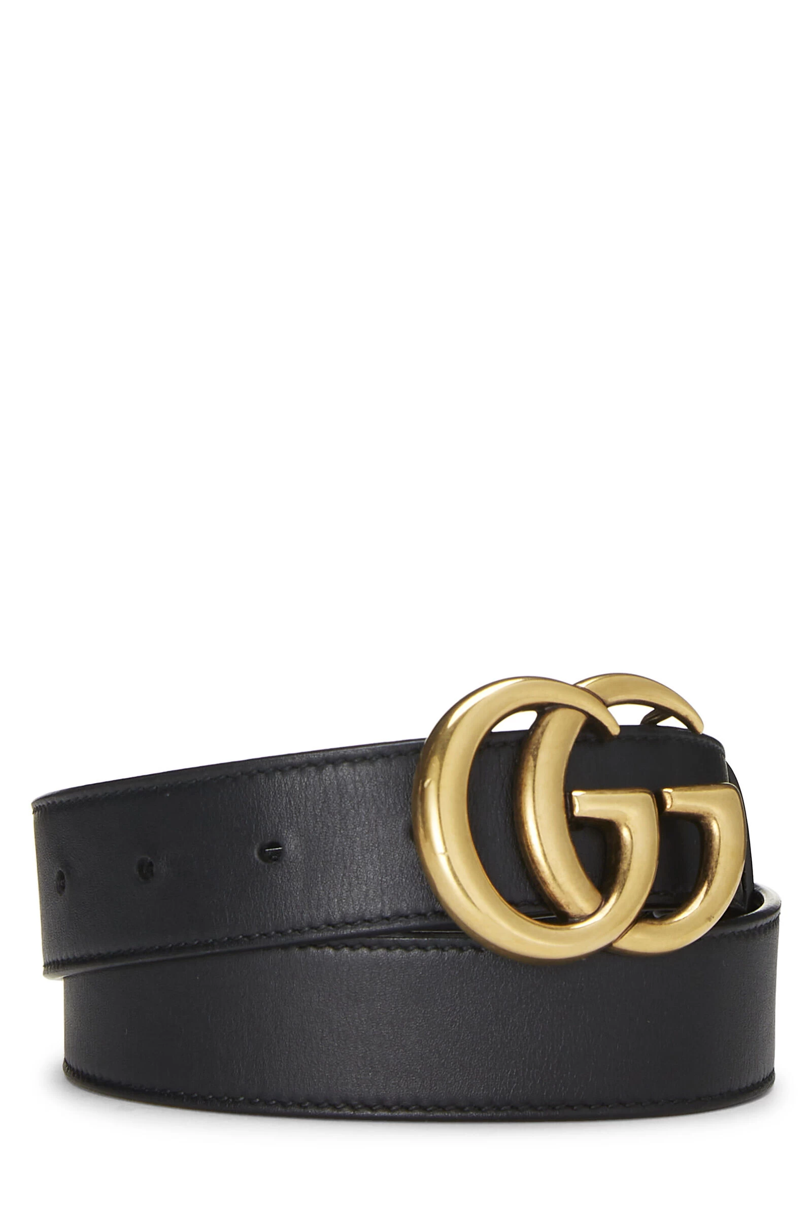 Classic black leather belt featuring the iconic interlocking ‘GG’ belt buckle. Size 70/28. Waist measures 26-30″