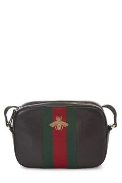 Classic and stylish Gucci crossbody bag crafted in black leather, featuring Gucci’s signature red and green Web canvas panel and accented with a metallic gold embroidered bee on front. With an adjustable leather shoulder strap, the styling possibilities are endless with this chic and timeless bag.