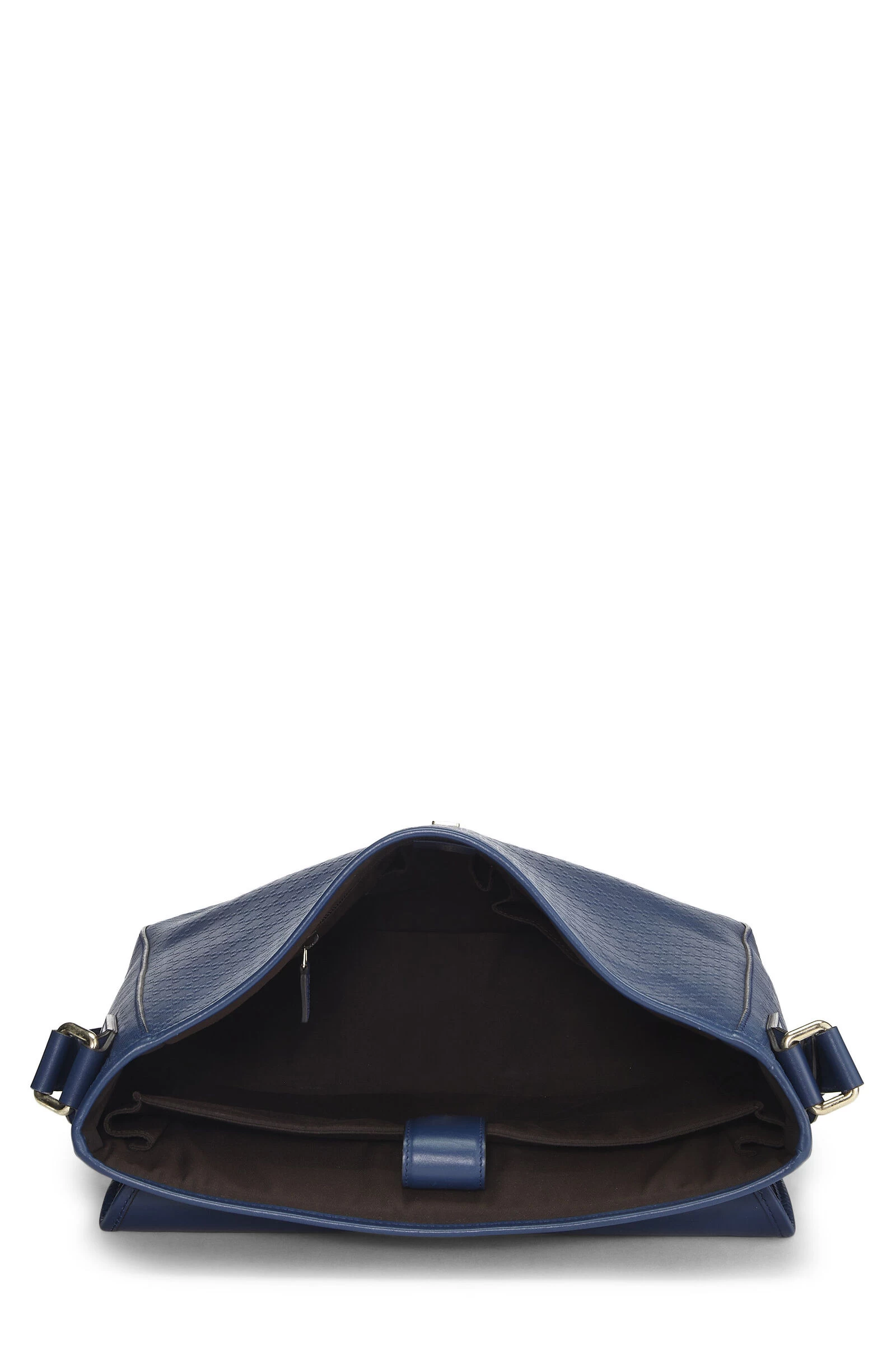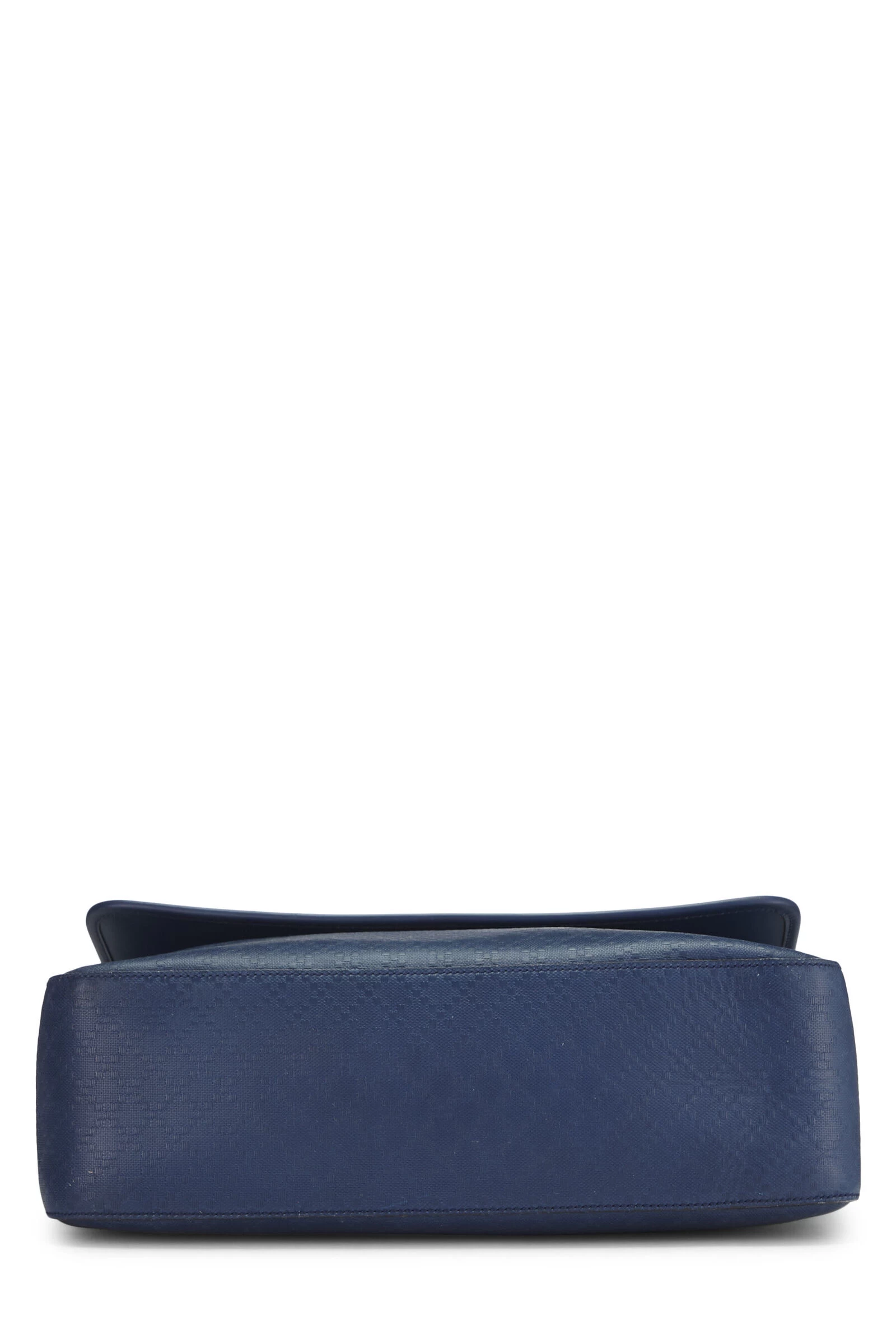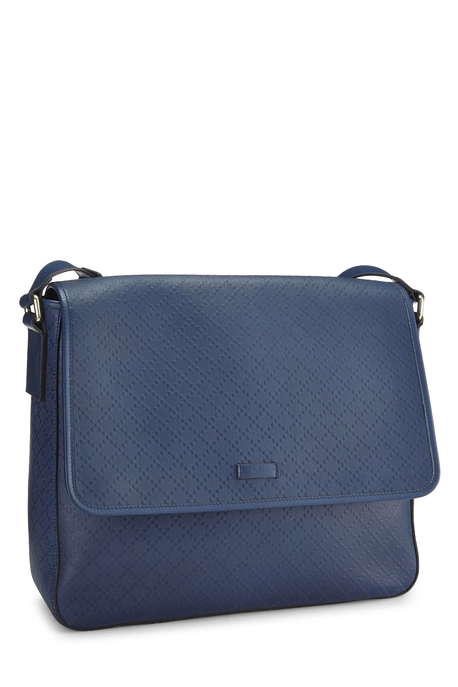 Classic Gucci messenger rendered in a navy leather that features diamond quilting and accented with silver-tone hardware.