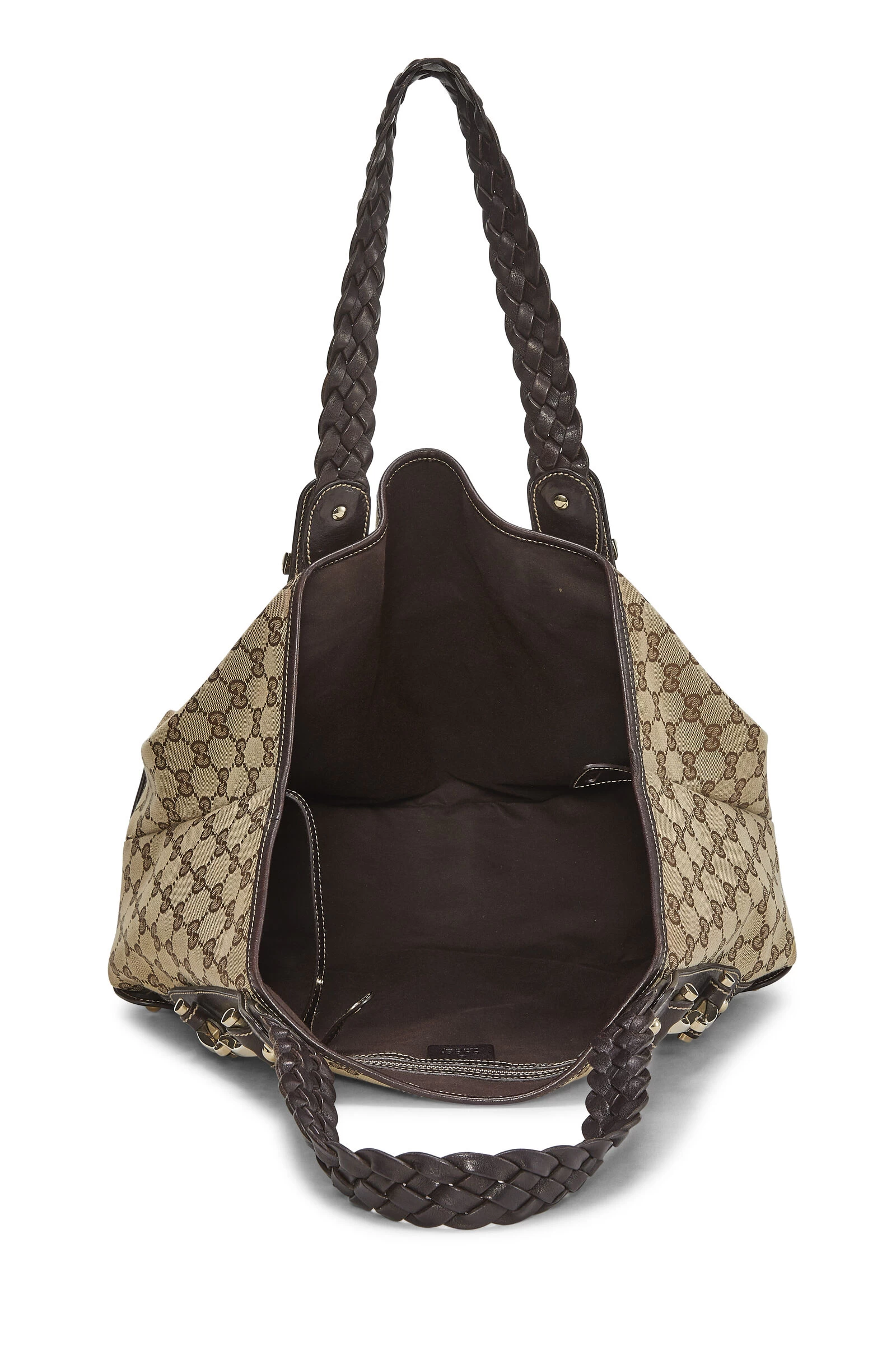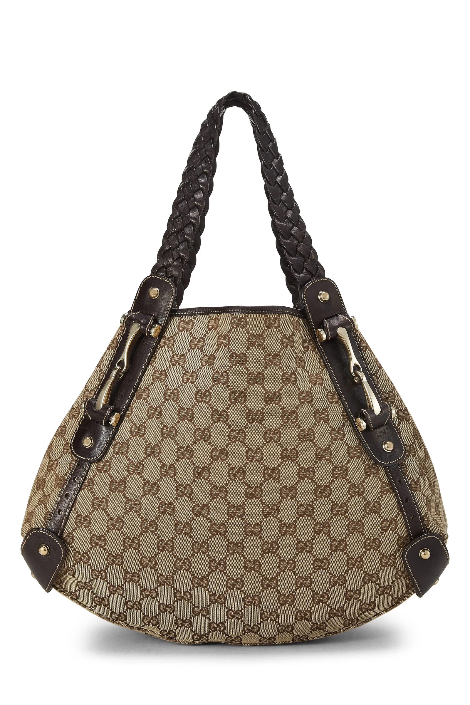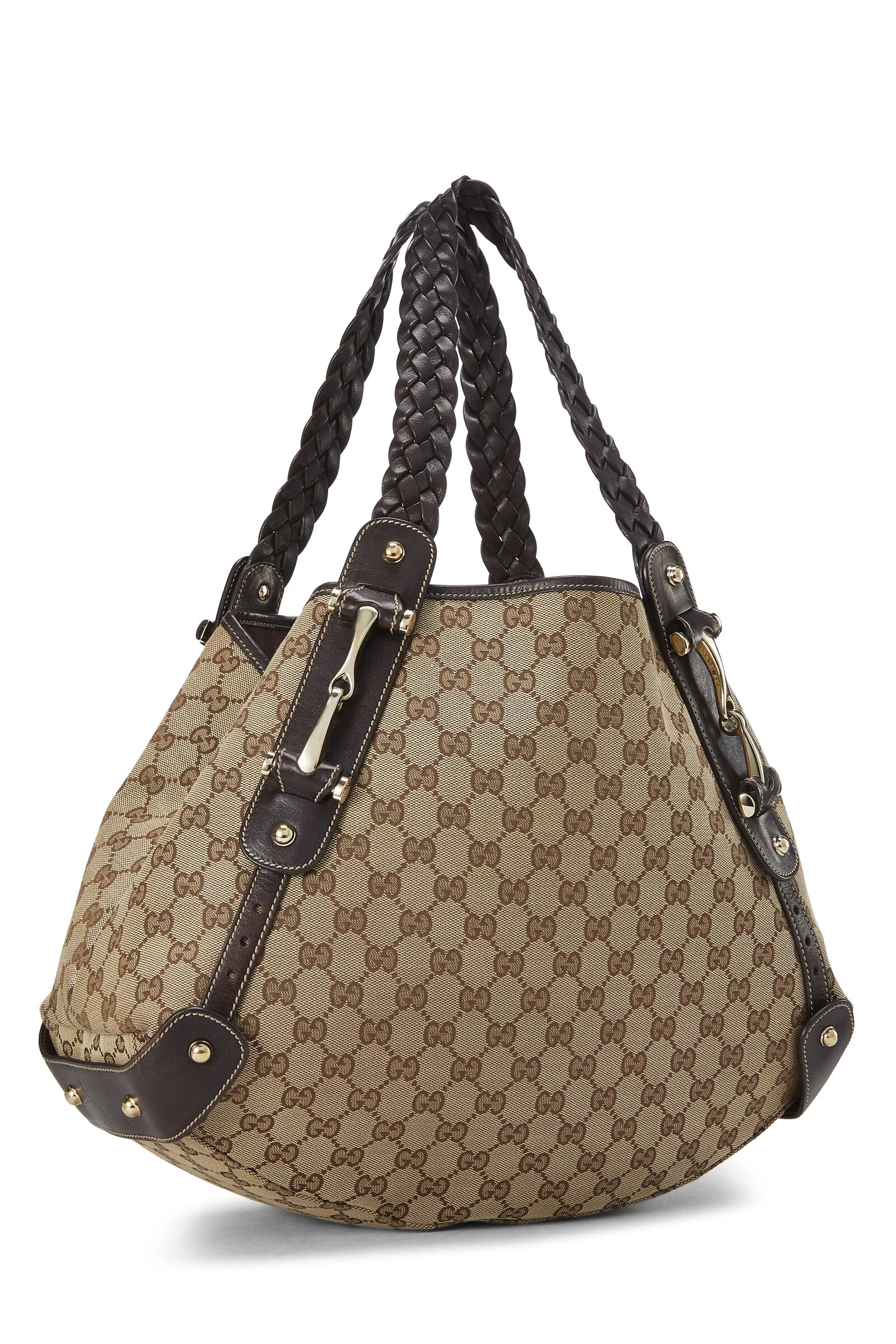 Utterly Gucci by design, this broad Pelham tote comes crafted from the label’s Original GG canvas with brown leather trim and accents throughout. Main talking points include braided leather shoulder straps and the house’s iconic, instantly-recognizable horsebit hardware below them. Open up yours to reveal a surprisingly spacious interior with a single zipper pocket for enhanced organization.