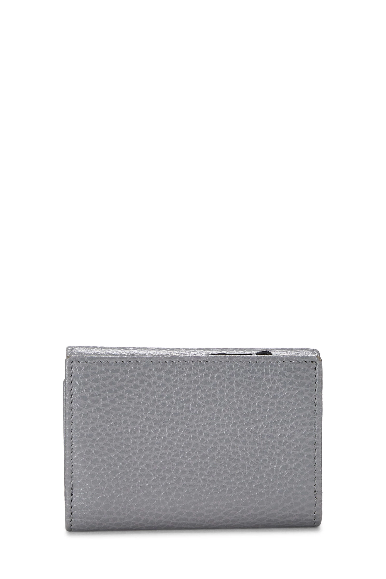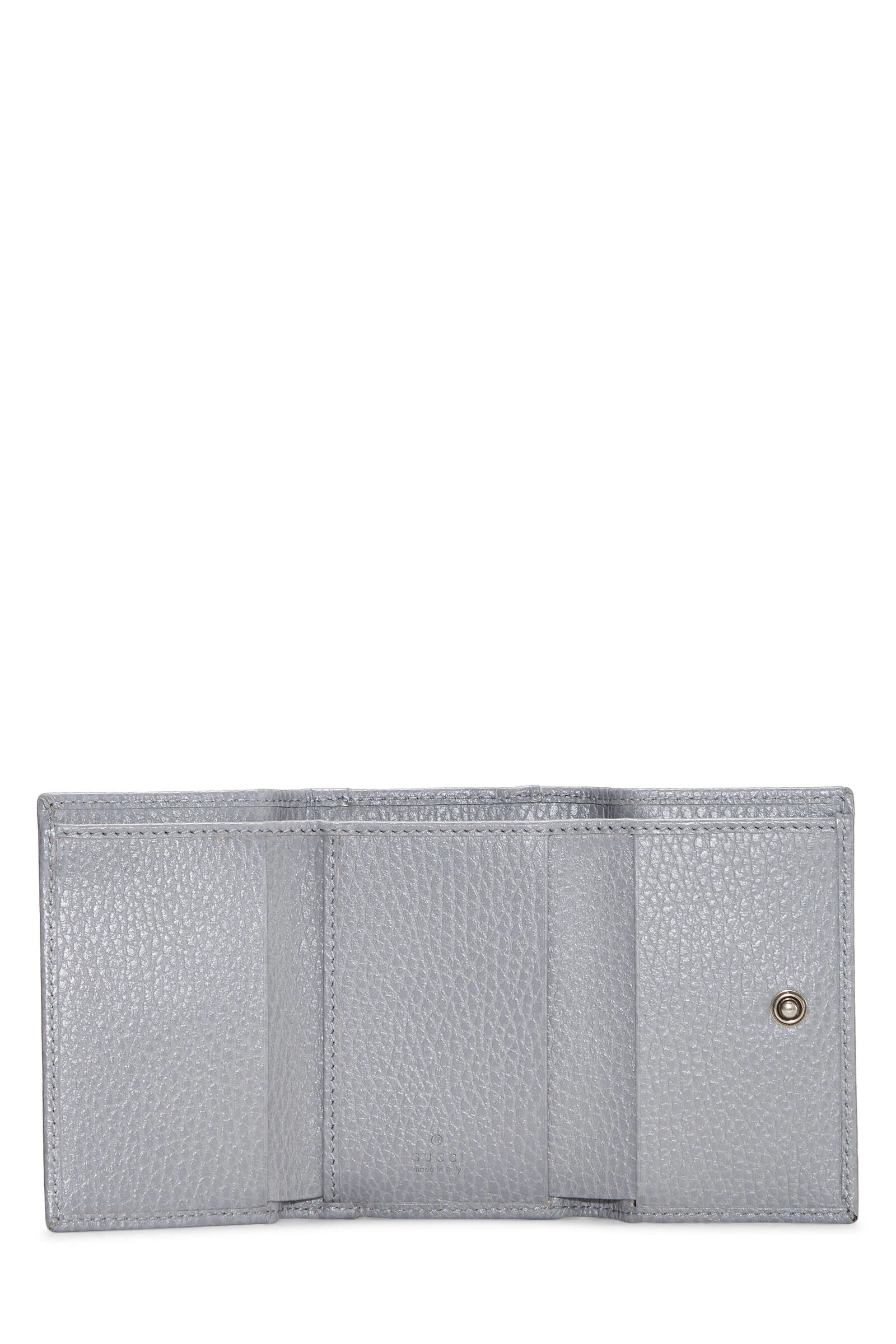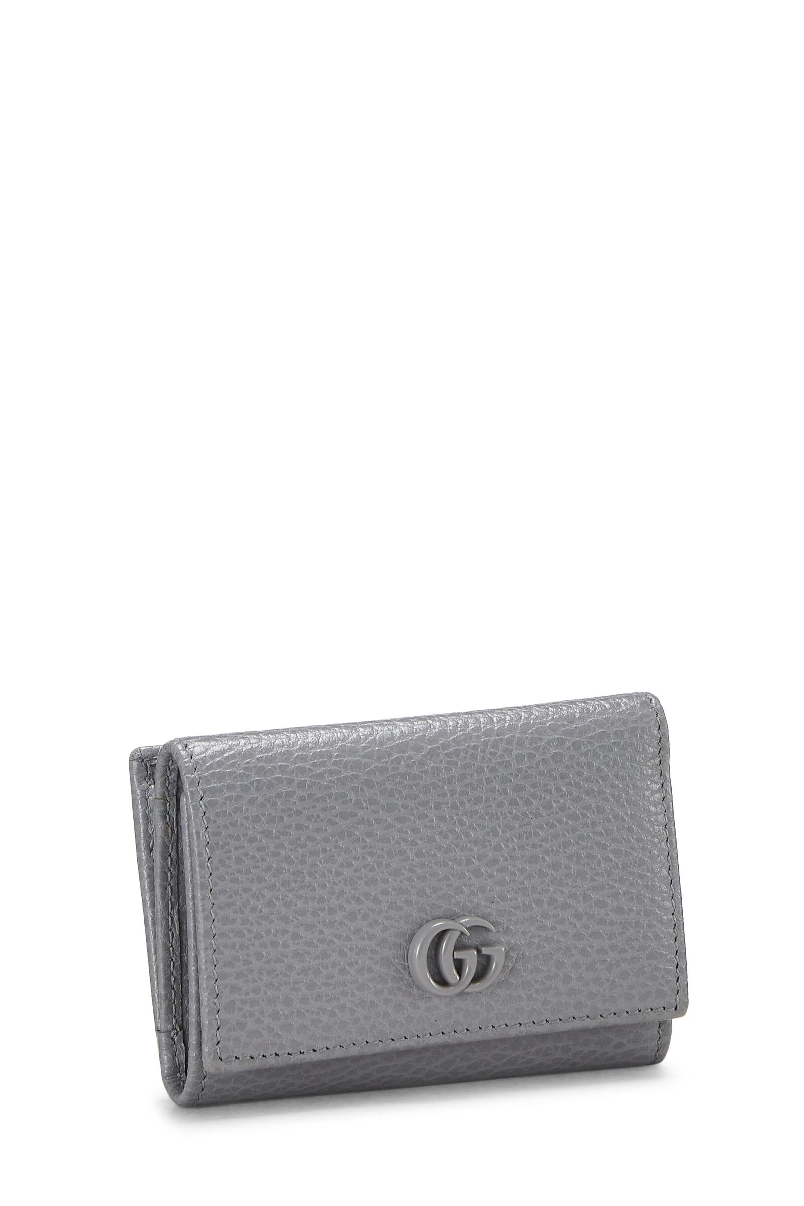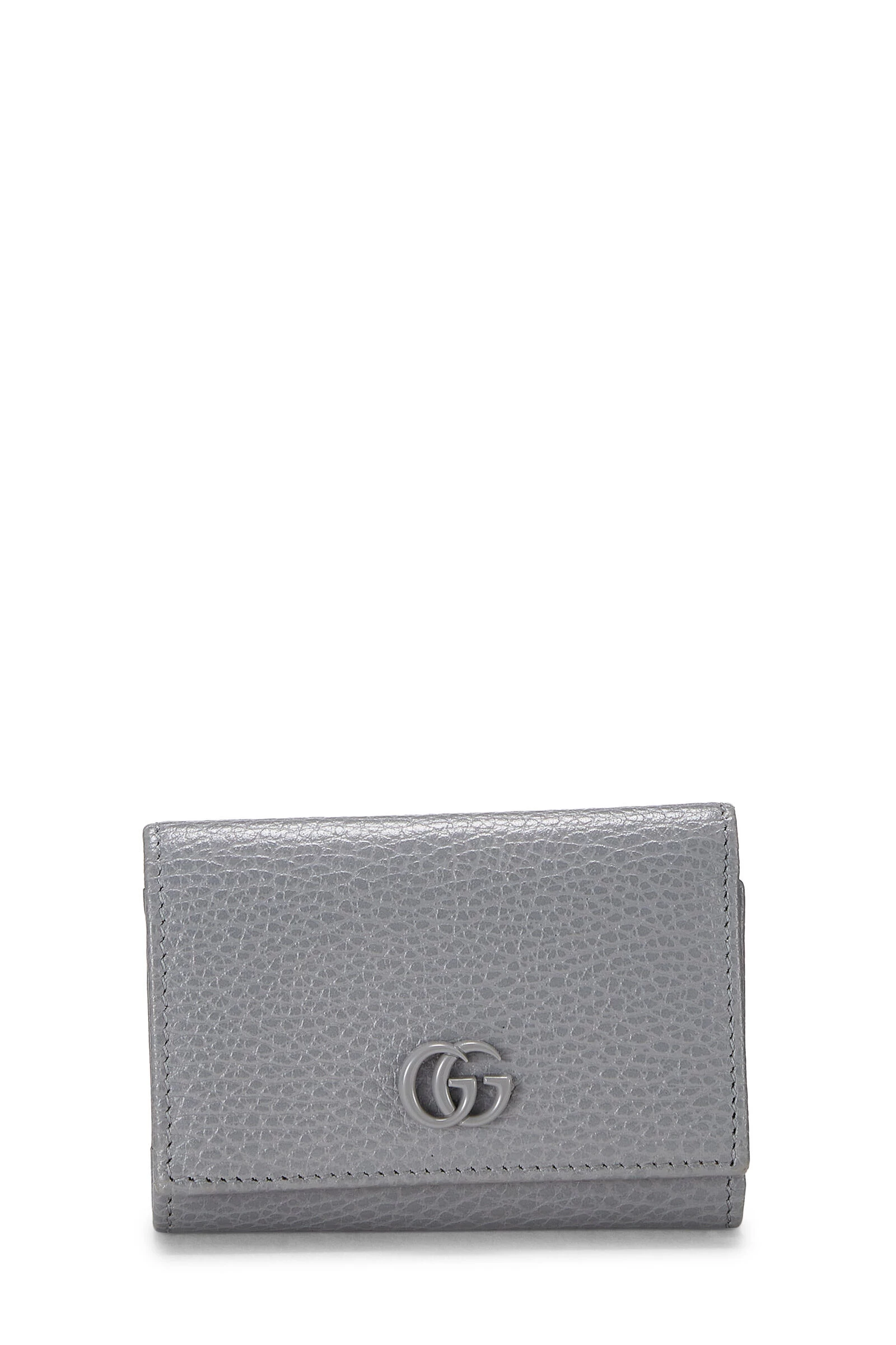 Chic card case wallet from Gucci’s Marmont collection rendered in grey pebbled leather, accented with tonal GG logo hardware.