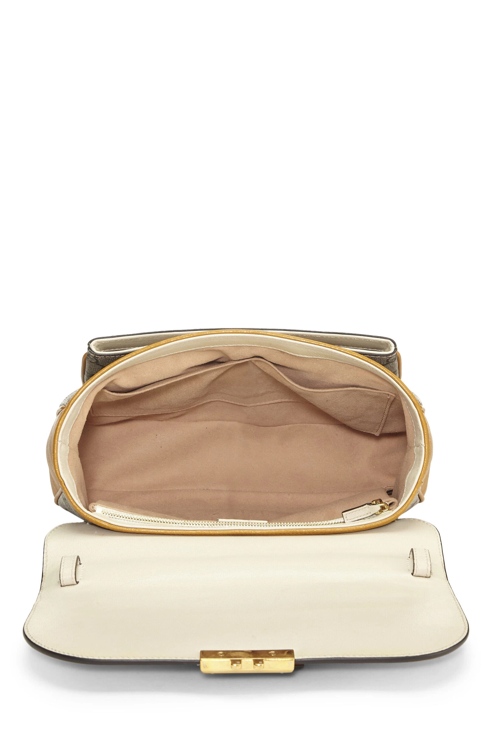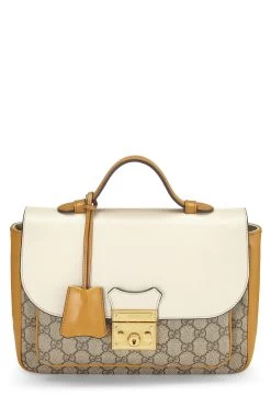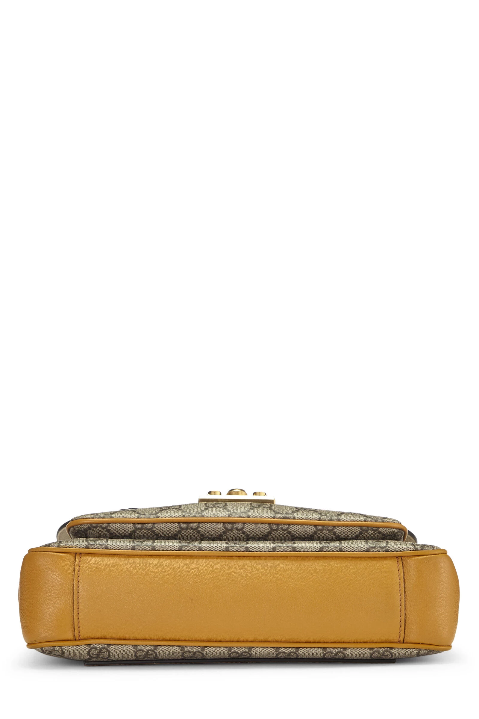 Compact and chic, the Padlock shoulder bag is rendered in Gucci’s signature GG Supreme coated canvas and accented with cream and marigold leather paneling. The versatile bag also features a convertible leather strap which can be worn as a crossbody or shoulder bag.