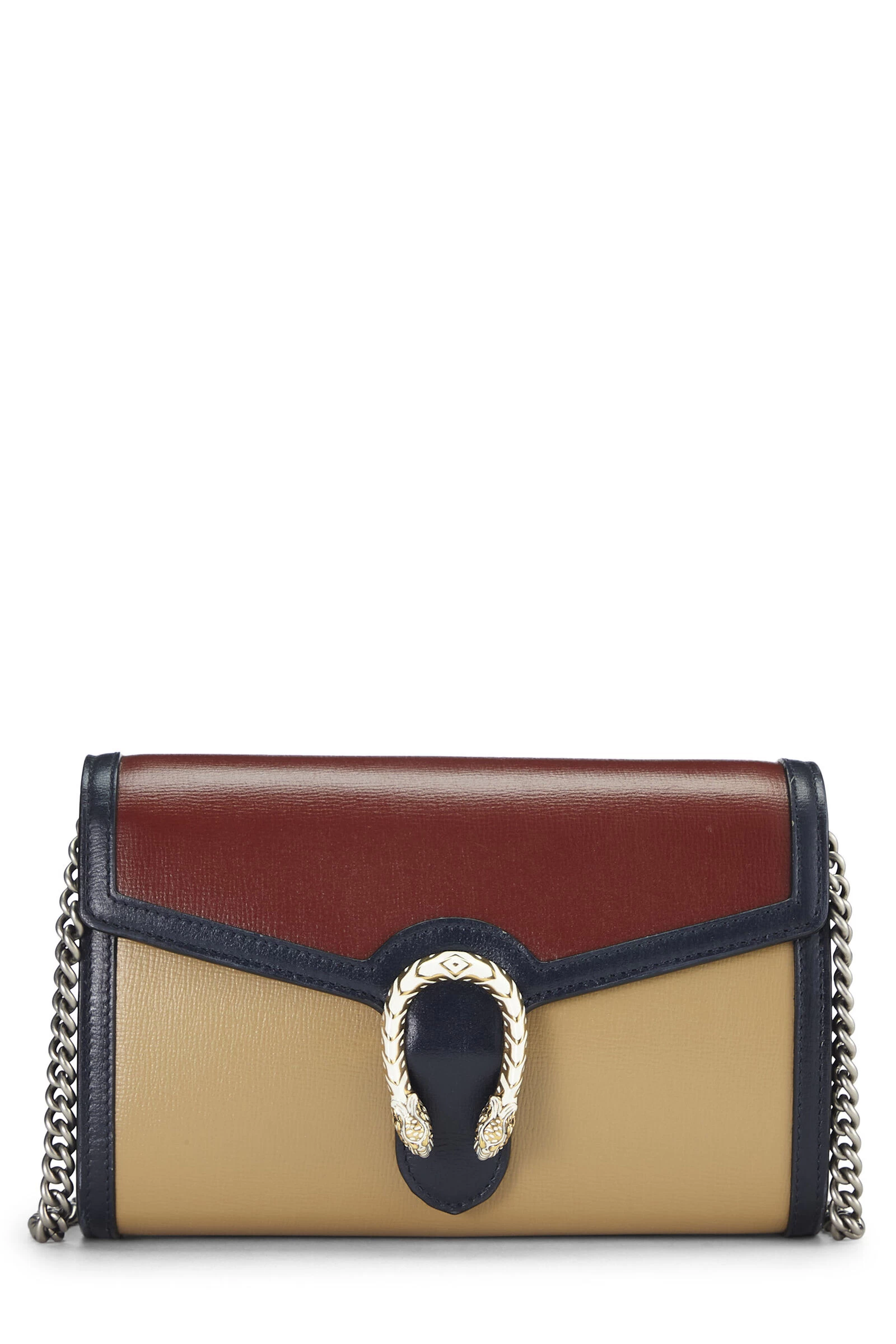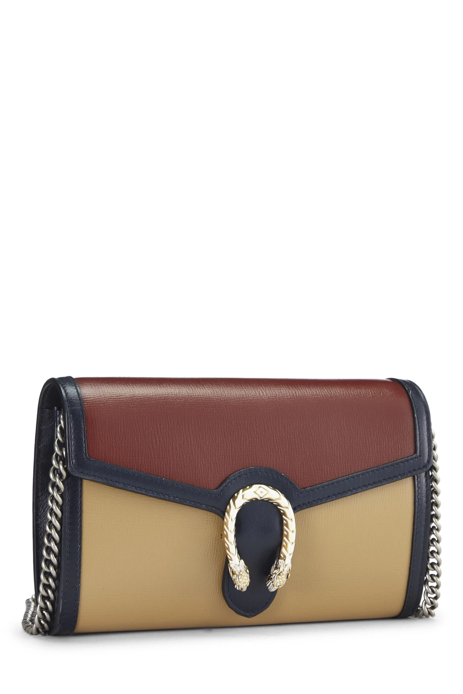 An investment in timeless Italian style, Gucci’s wallet on chain is crafted in multiple shades of brown grained leather and features an ornate Dionysus tiger head embellishment, accented with tonal crystal details.