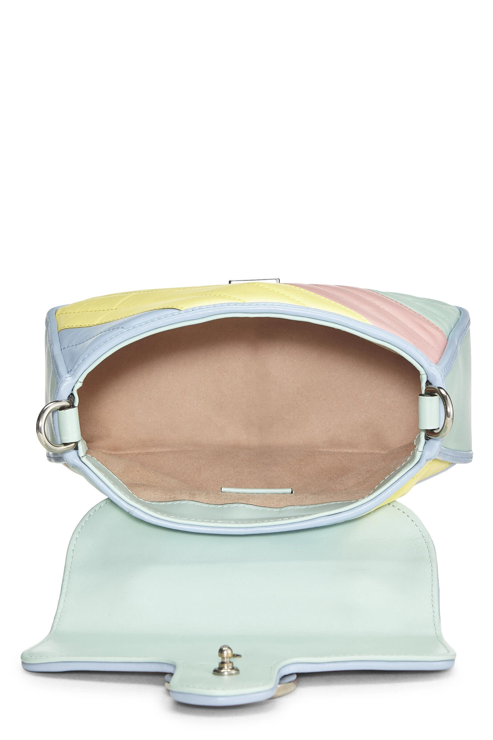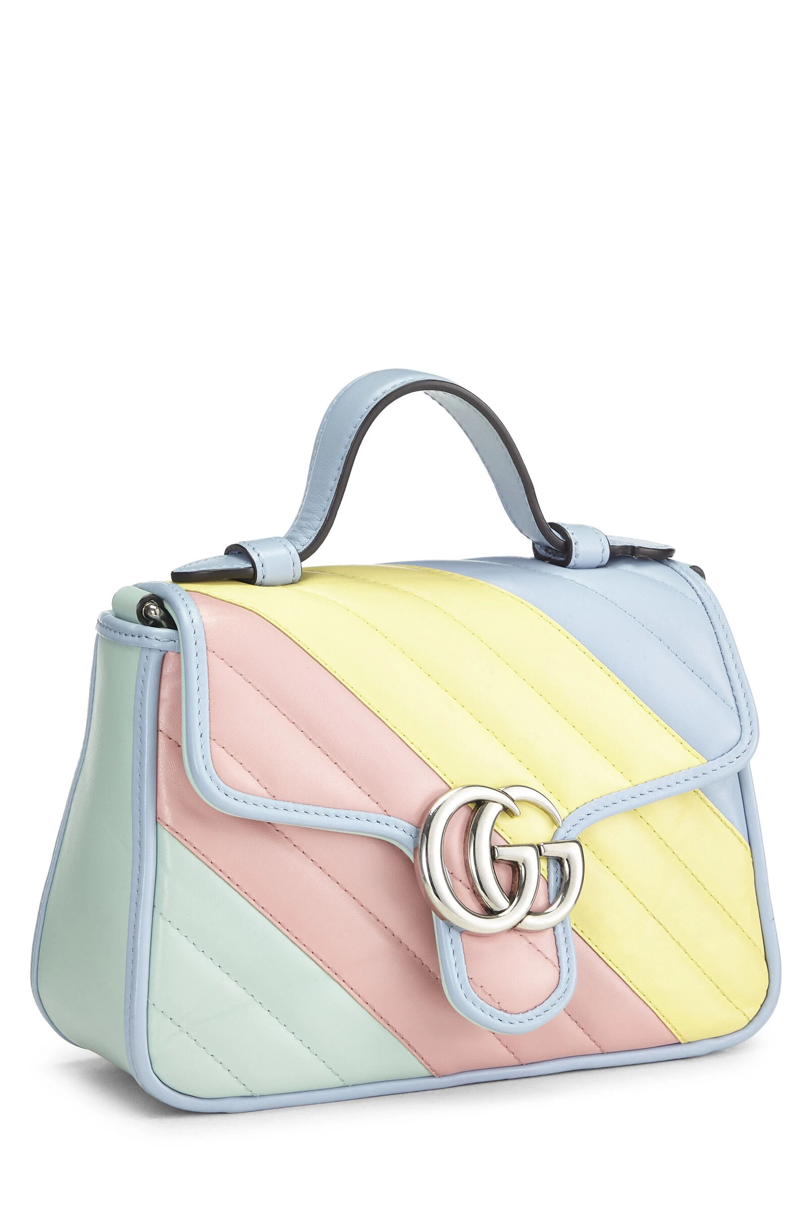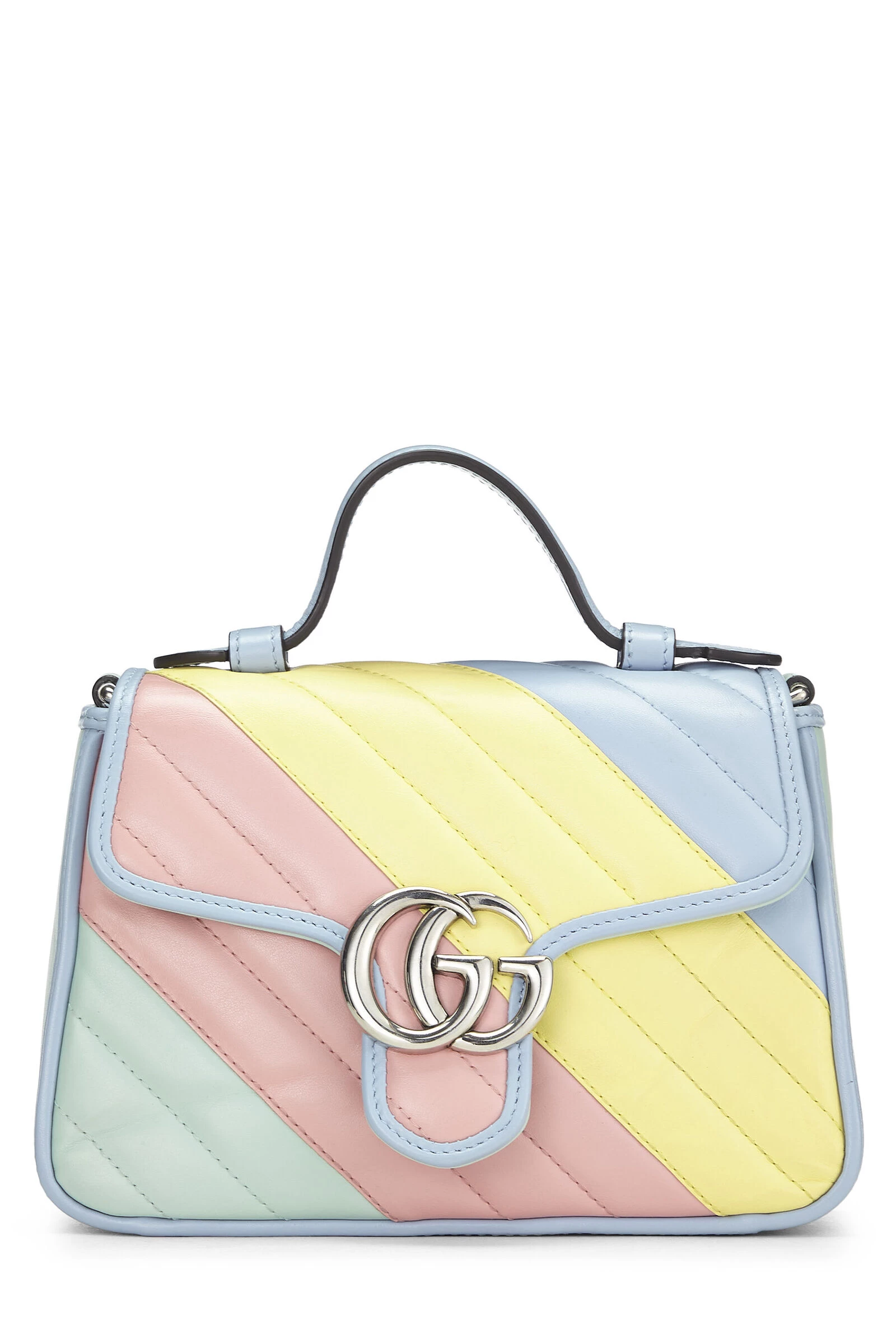 Classic top handle bag from Gucci’s Marmont collection, rendered in quilted leather and featuring running ‘GG’ logo hardware on the front flap. The bag includes an optional shoulder strap for versatile carry.
