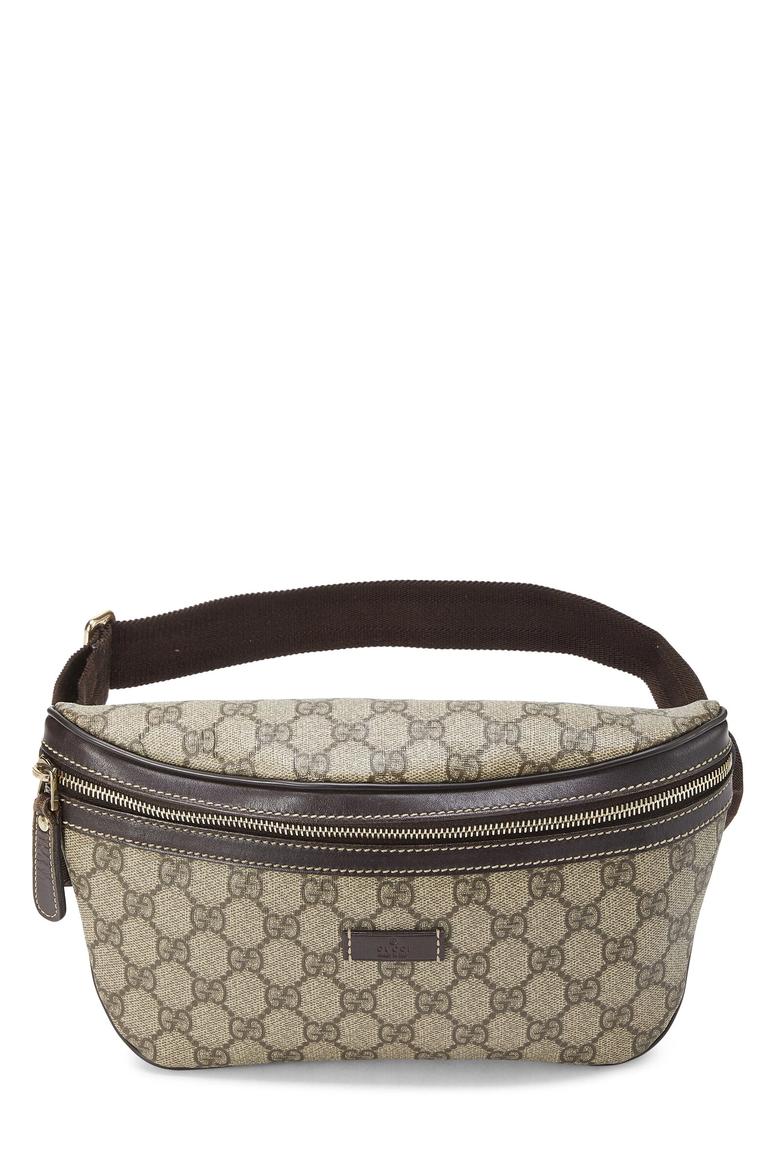 This classic belt bag is rendered in Gucci’s iconic GG Supreme coated canvas accented with brown leather and gold-tone hardware.
