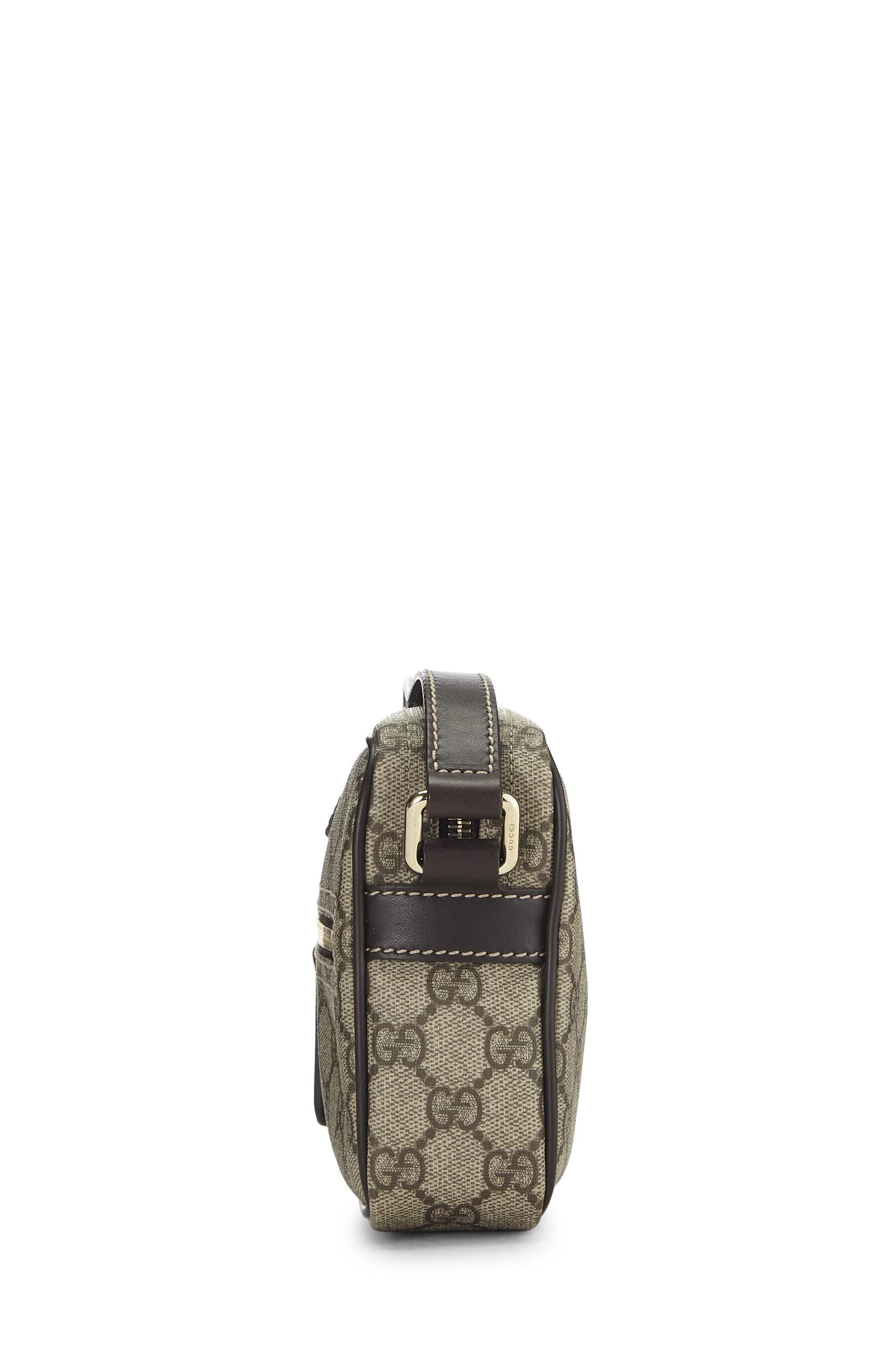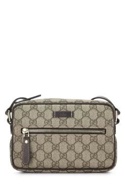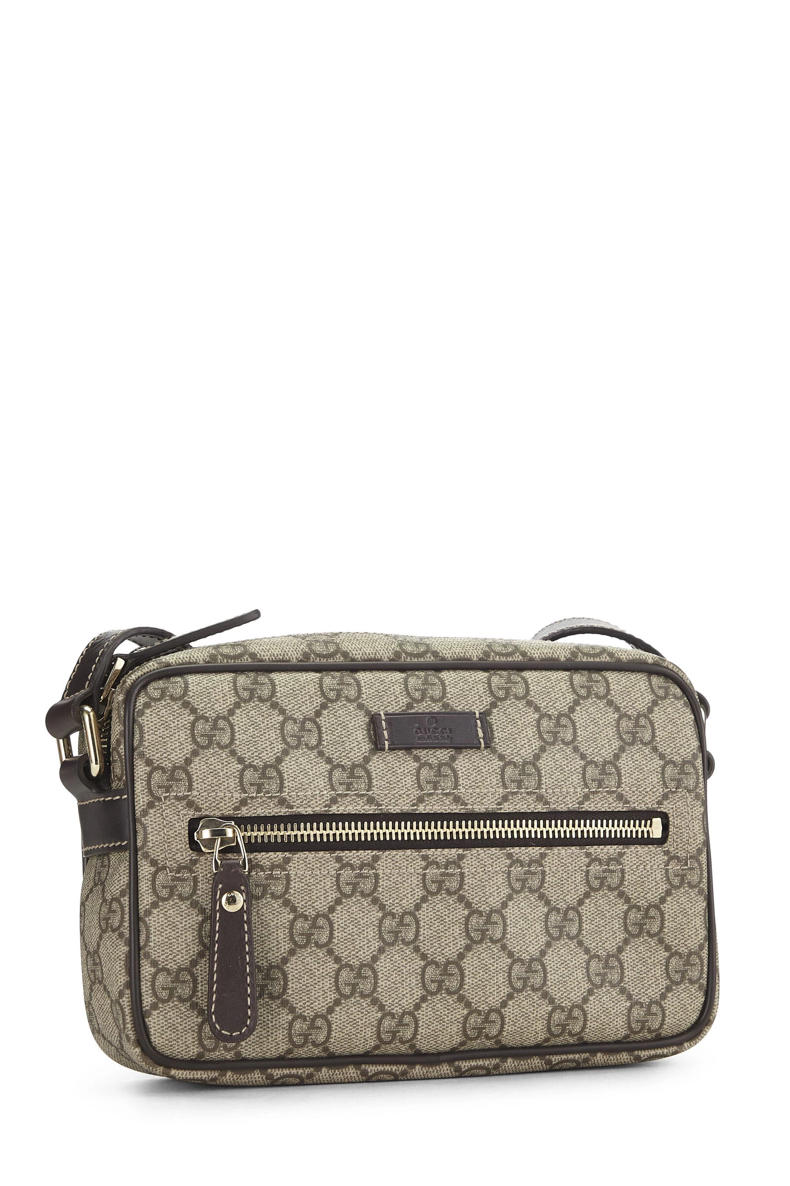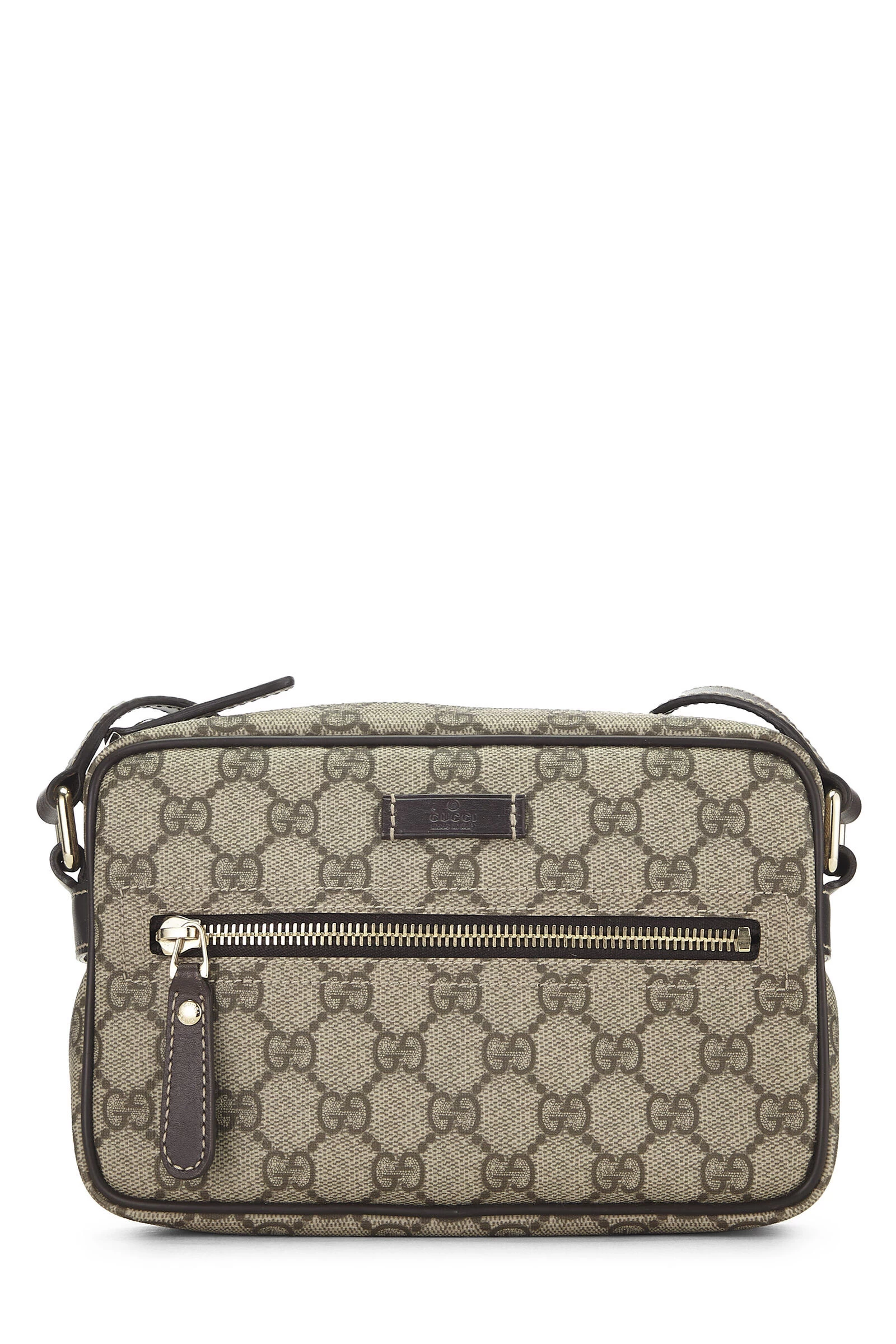 The larger silhouette of its kind, this Gucci camera bag boasts the Italian house’s stripes–or, this oh-so-classic interlocking GG motif–through and through. It was intentionally made from the label’s GG Supreme coated canvas with an adjustable canvas strap for versatile carrying options. The rectangular shape cites brown leather accents and gold-tone hardware as the main talking points. Store your belongings–be it a camera or your on-the-go must-haves–inside its spacious interior and exterior zipper pocket.